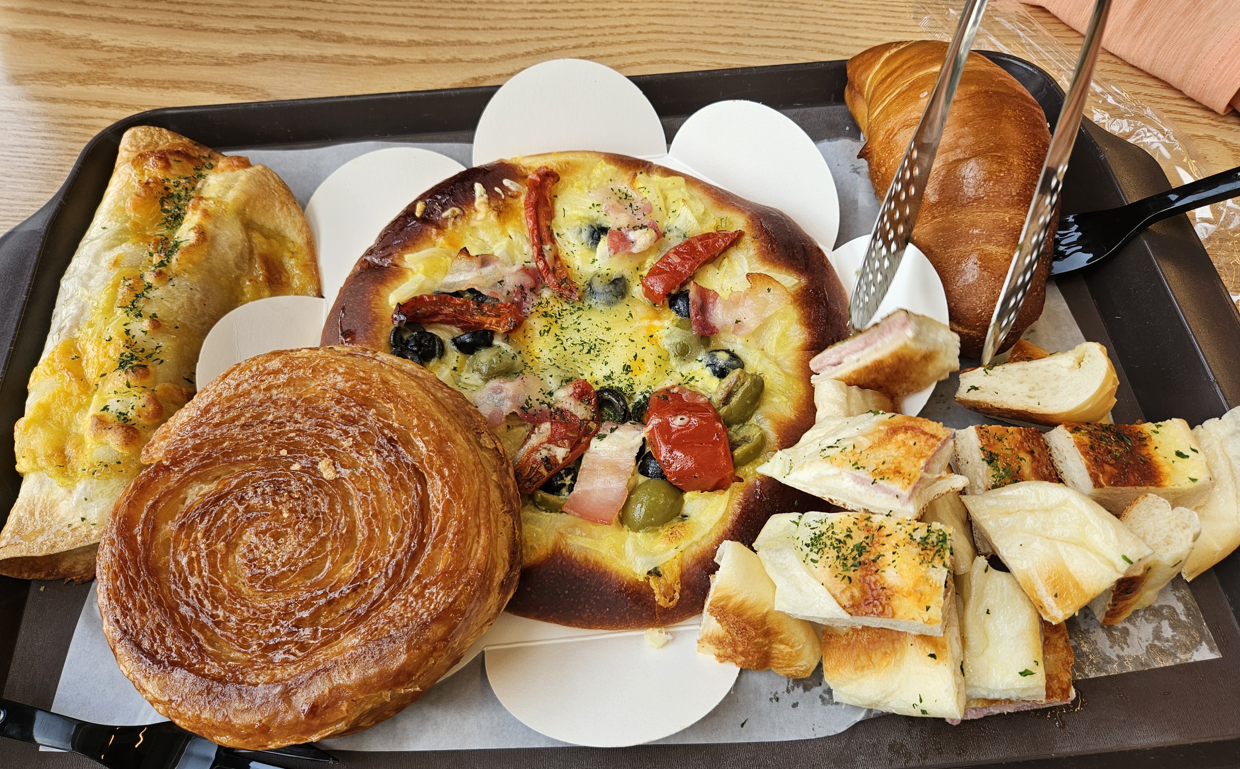 햄이랑 치즈가 들어간 빵은 푹신하면서 맛있었고 토마토 베이컨이 들어간 피자빵처럼 생긴 빵도 맛있더라고요.