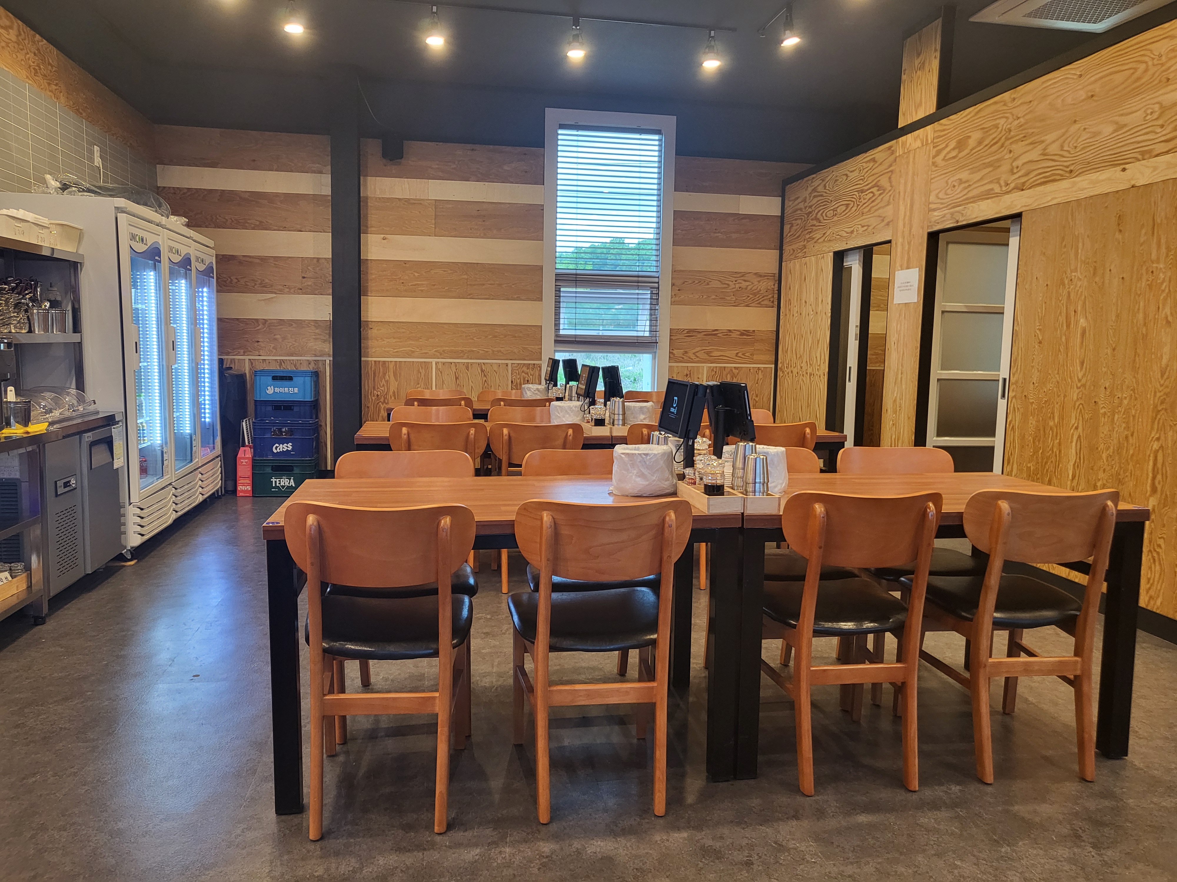 정문으로 들어가 창가 쪽에는 손님이 다 앉아있어 사진은 찍지 못했는데요. 내부는 목재스타일로 되어있어 은은하고 깔끔하더라고요.