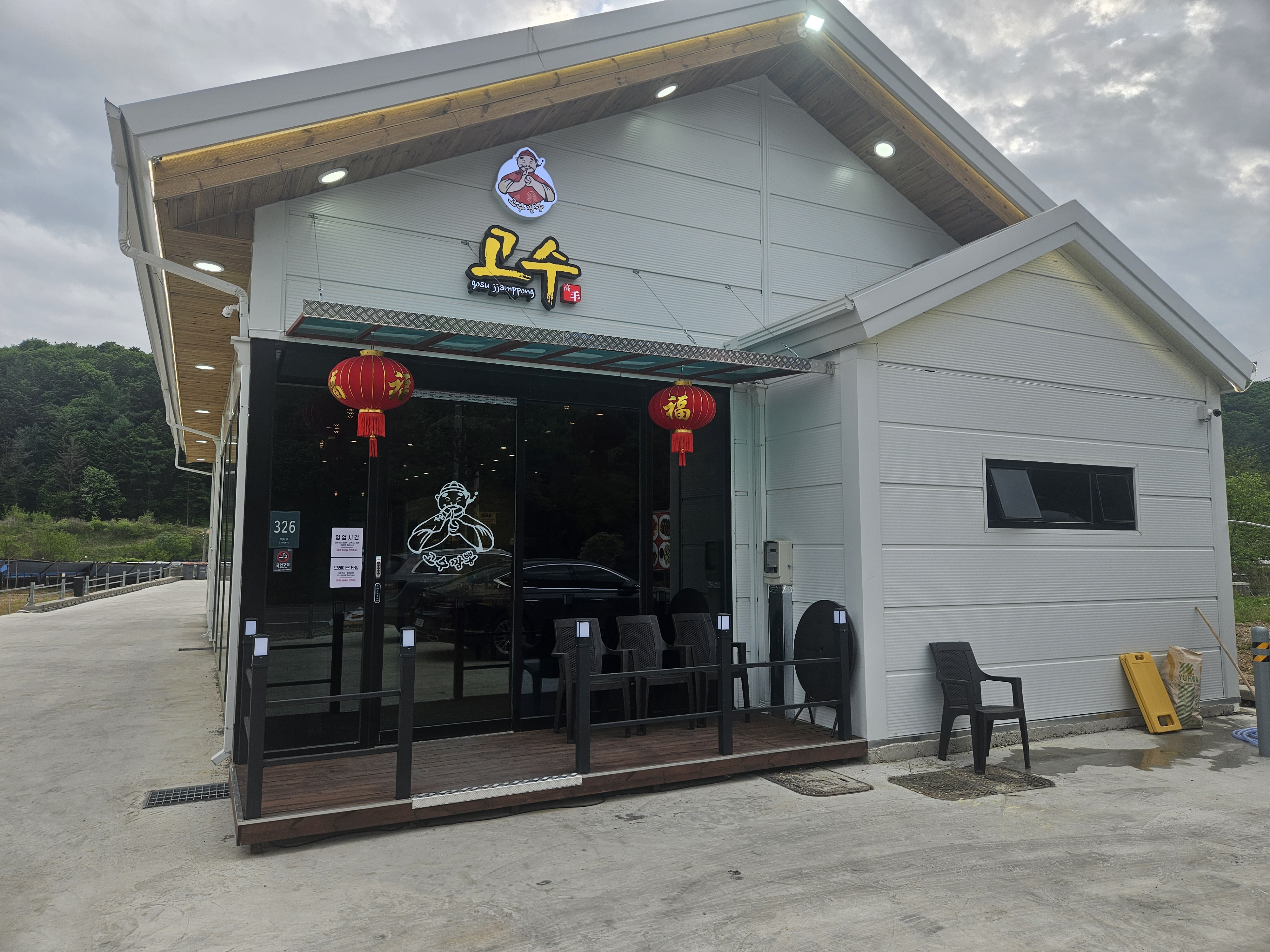 고수짬뽕집 입구는 정문, 뒷문이 있는데요. 저는 정문사진을 찍고 싶어 정문으로 방문을 했습니다. 우선 건물 외관은 지어진 지 오래 안 돼서 그런지 엄청 깔끔했는데요.