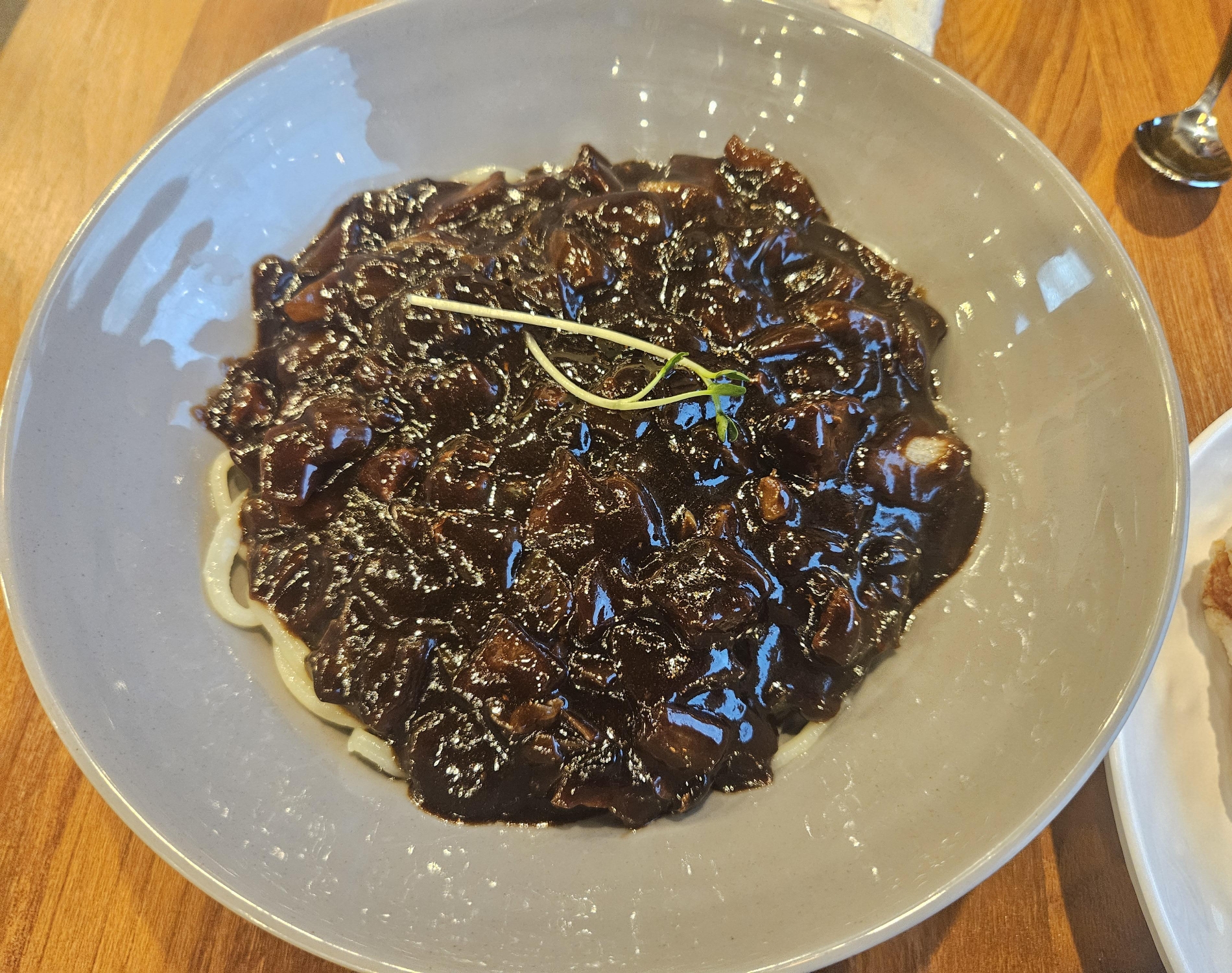 제가 하는 일이 밥을 제대로 챙겨 먹지 못하는 직업이다 보니 하루 한 끼를 먹는 날이 많은데요. 당시에도 배가 고픈 나머지 아들이 남긴 짜장소스에 밥 한 공기를 뚝딱했답니다. 진짜 맛있었어요.