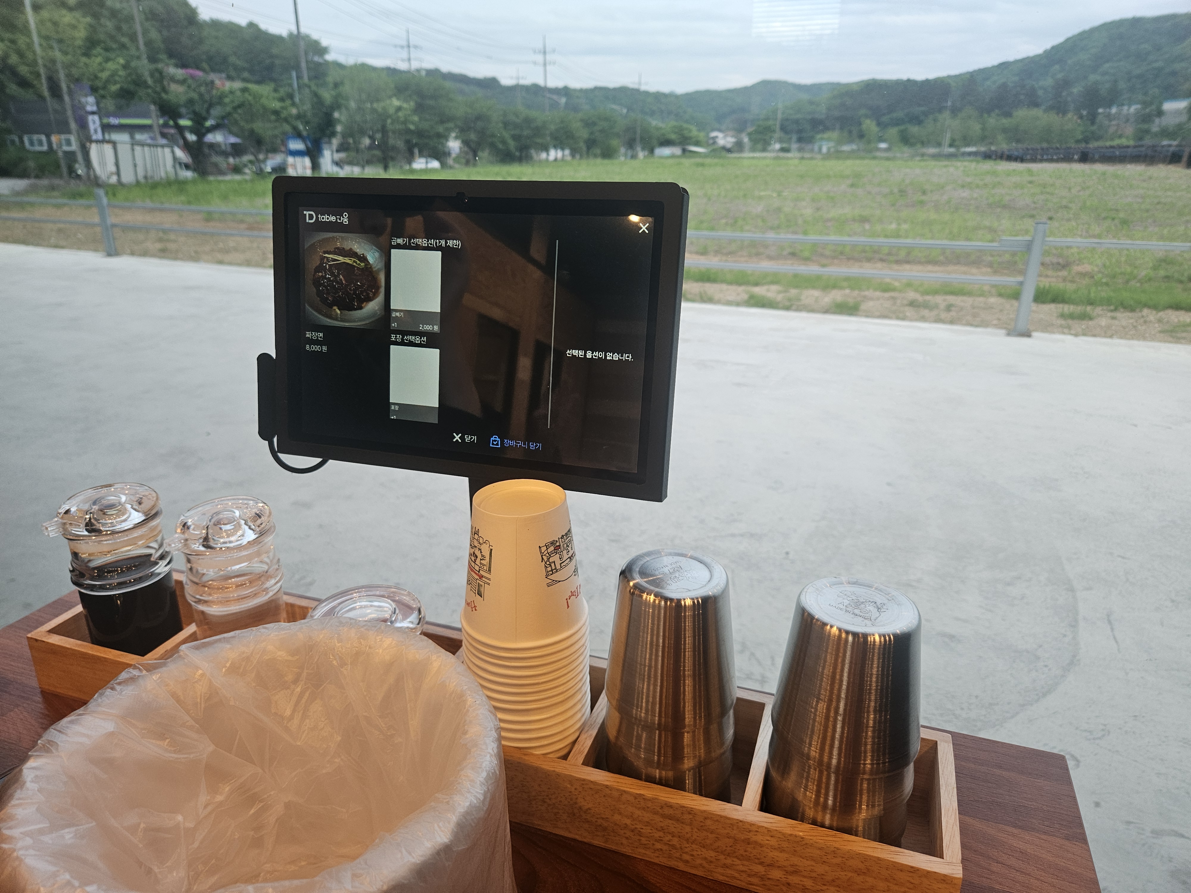 테이블에는 각종 소스와 물컵 그리고 키오스크를 이용해 주문하는 방식이었고 결제는 식사 후 카운터에서 하는 방식이었습니다. 그리고 테이블은 4인 기준으로 약 10~ 12개가 있었습니다.