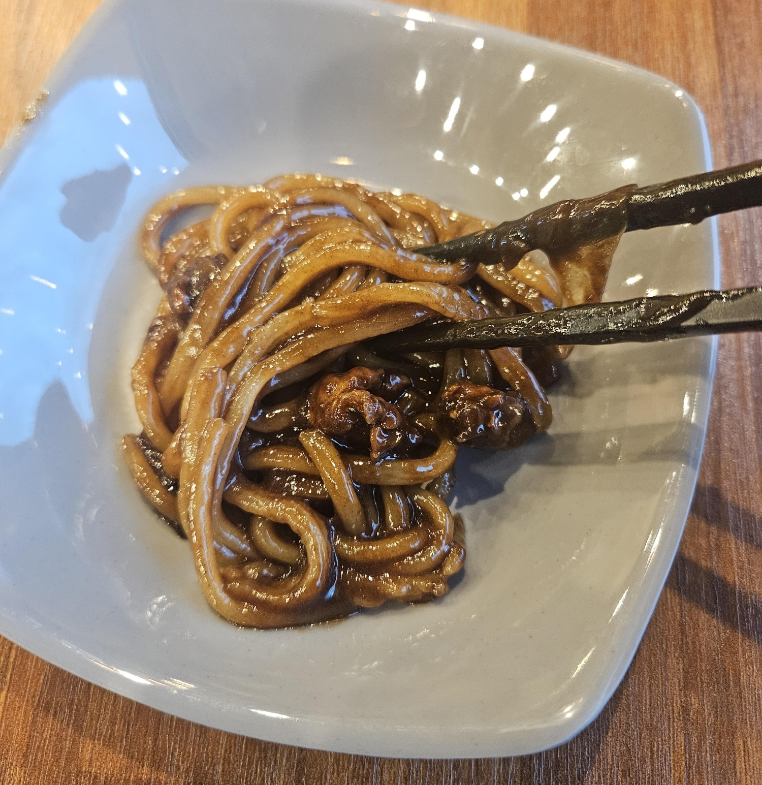 우선 아들 먼저 먹이기 위해 짜장면을 비벼주었는데 건더기도 많이 들어있고 윤기가 좔좔. 너무 맛있어 보이더라고요.