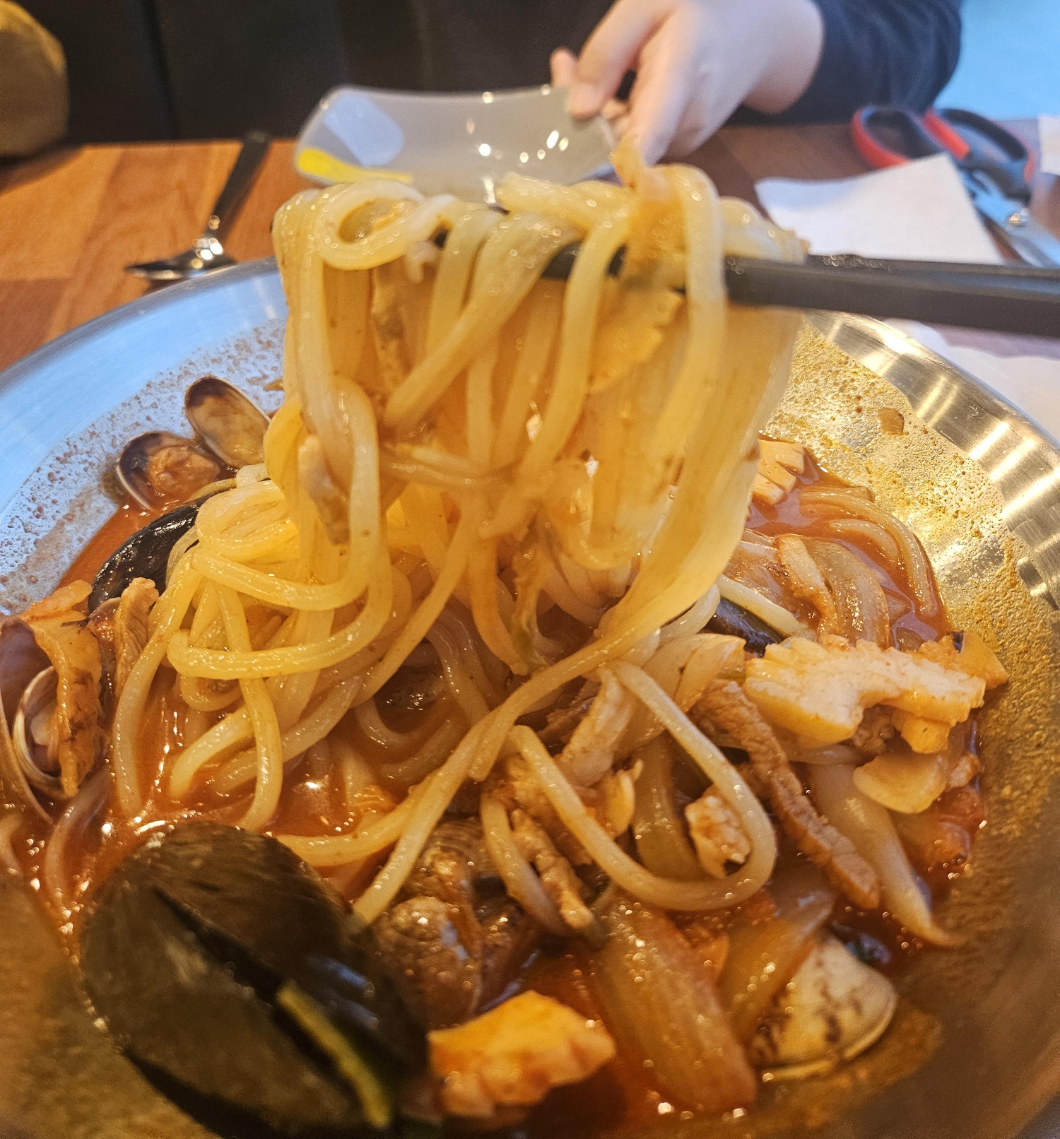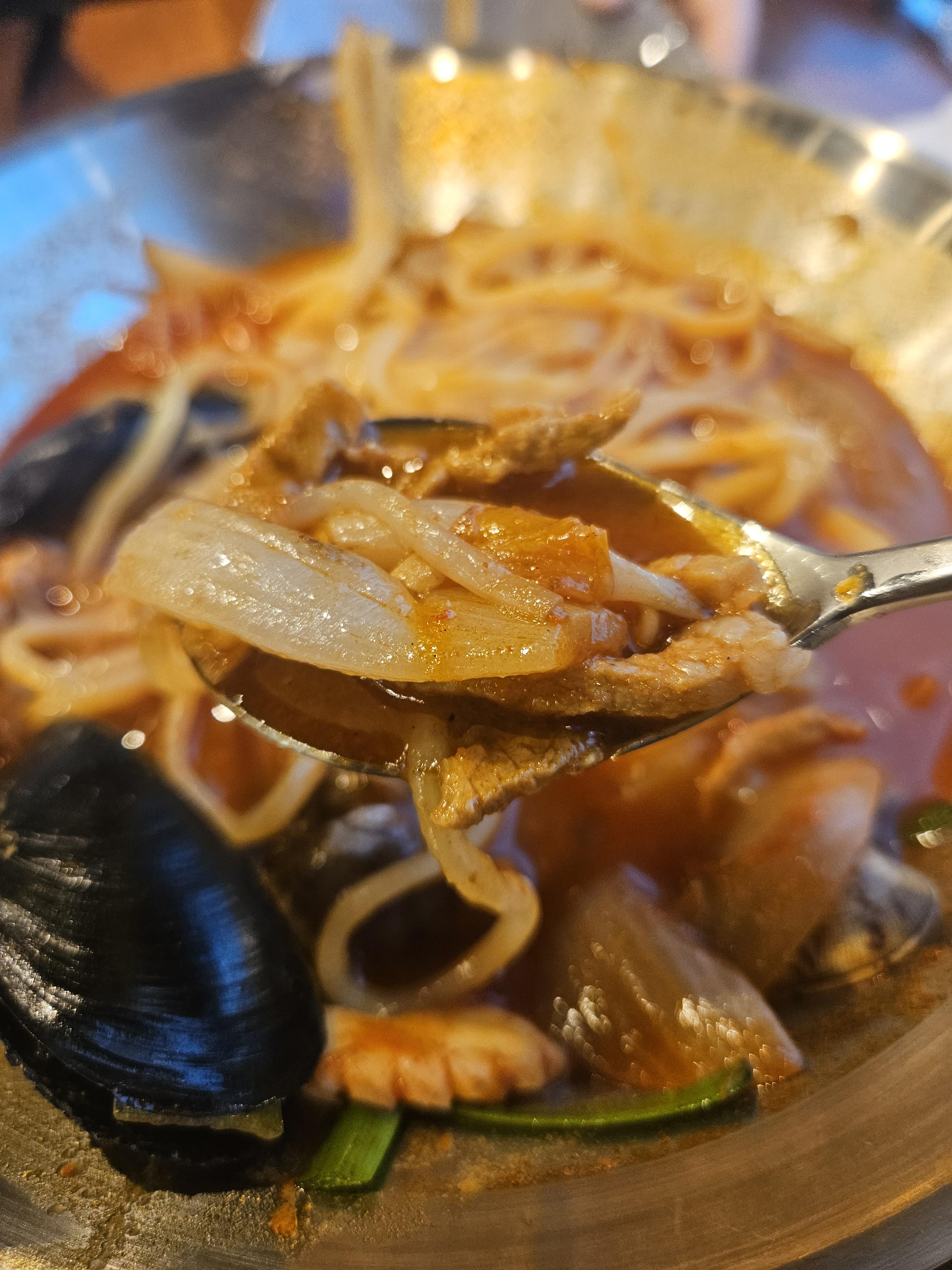 거기에 해물 및 건더기도 많이 들어있어서 그런지 국물이 어찌나 시원하던지. 와이프가 맵찔이인데 맛있다고 좋아하더라고요.