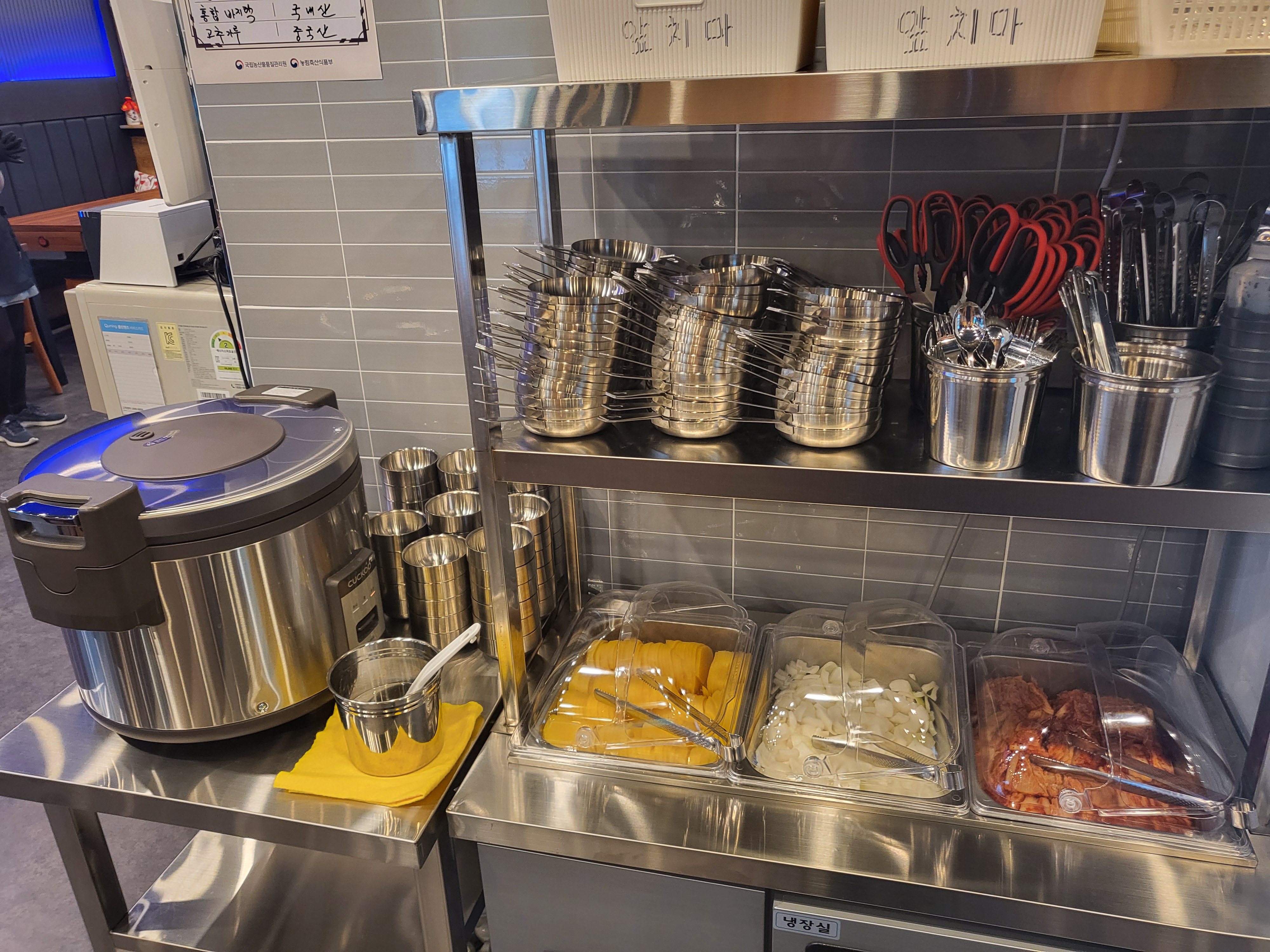 밥 또한 무한리필가능하고 반찬 및 수저들은 셀프로 가져오게 되어있었습니다.