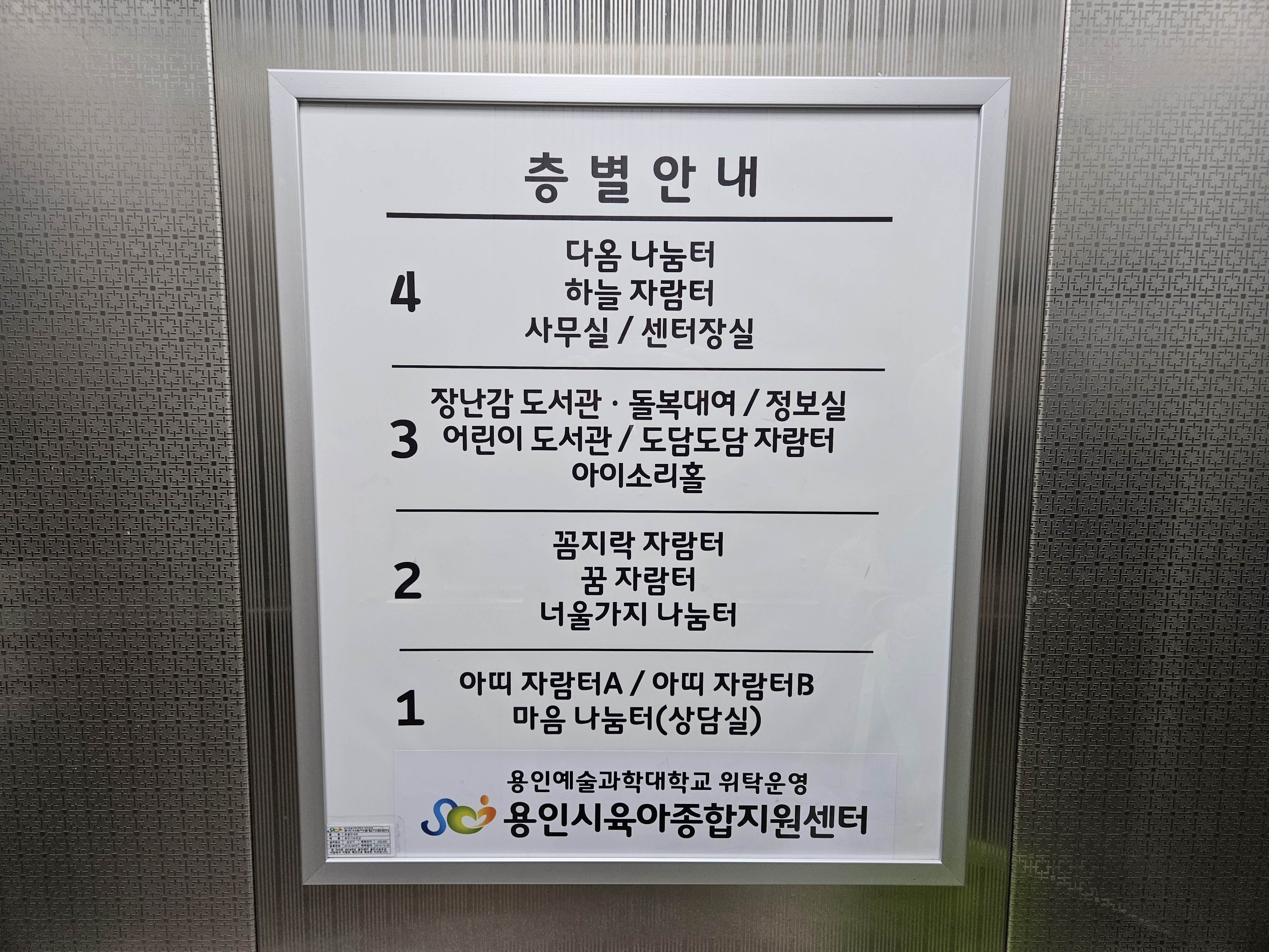장난감 도서관 삼가점은 용인육아종합지원센터 3층에 위치해 있었습니다. 매번 와이프 혼자 올라가서 장난감을 빌려왔는데 최근 빌려온 장난감을 아들이 힘조절을 못해 고장 낸 적이 있어 해당 장난감 서비스센터에 수리를 맡겨서 돈 주고 고친 적이 있었거든요. 그래서 이번에는 저도 올라가서 조금 튼튼하고 재미있는 장난감이 있는지 찾아보기 위해 같이 올라갔습니다.