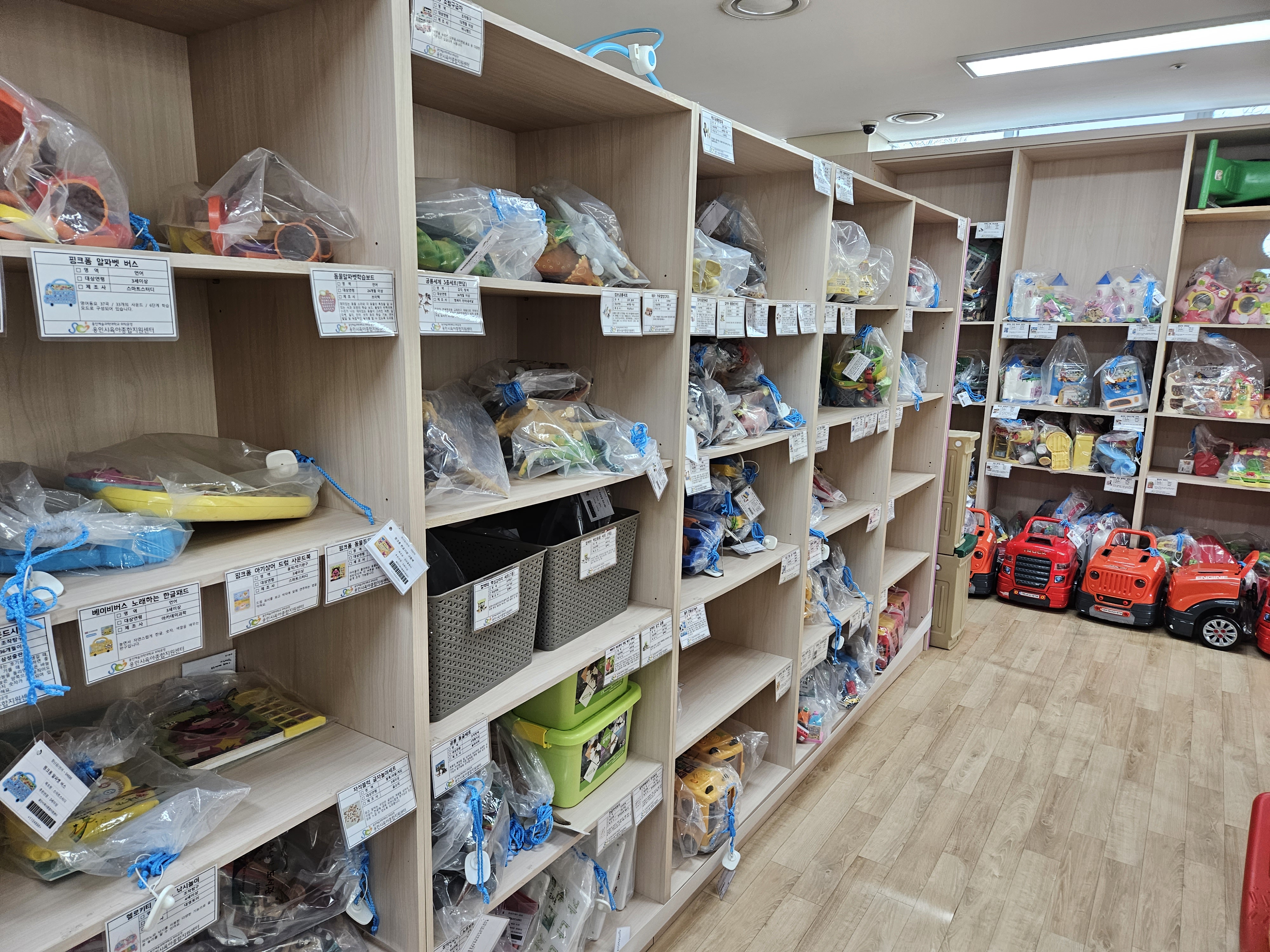 만 4~5살 정도 되면 가지고 놀기 좋을 것 같은 장난감들은 눈에 보였는데 현재 만 3살도 안된 아들이 가지고 놀기에는 뭔가 많은 사람들이 이용해서 잘못하면 고장날것 같아서 딱히 빌리고 싶은 장난감이 눈에 보이지 않았습니다.