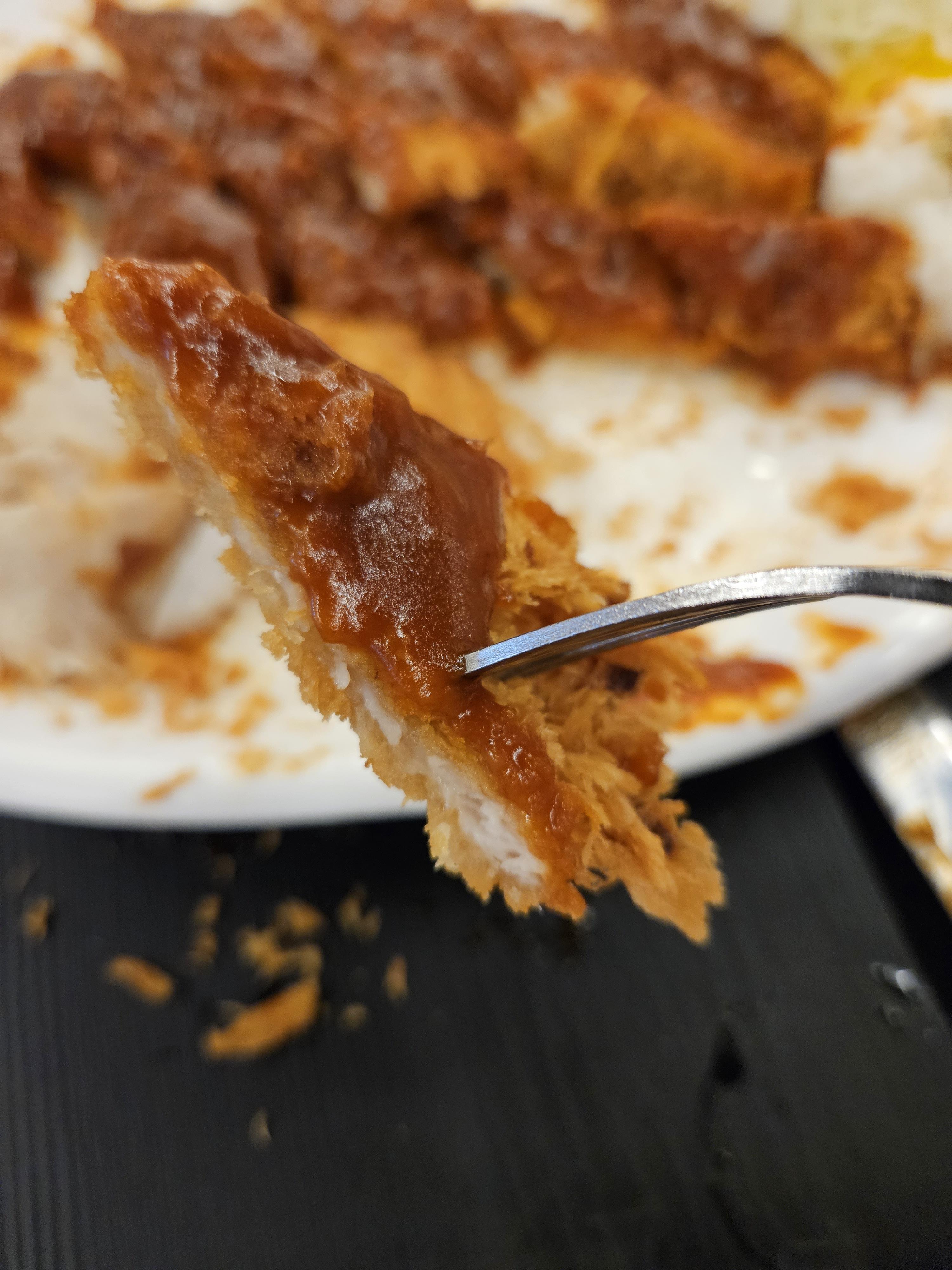 깨끗한 기름으로 튀겨서 그런지 전체적으로 돈가스가 담백하고 맛있었습니다. 많이 먹다 보니 조금 느끼하긴 했지만요. 그리고 제 식탐 때문에 추가로 고구마치즈롤까스를 시켰는데 안 시켜도 될뻔했습니다. 만약 다음에 방문하게 된다면 인기메뉴 중 못 먹어본 것들로 골고루 시켜 먹어봐야겠습니다.