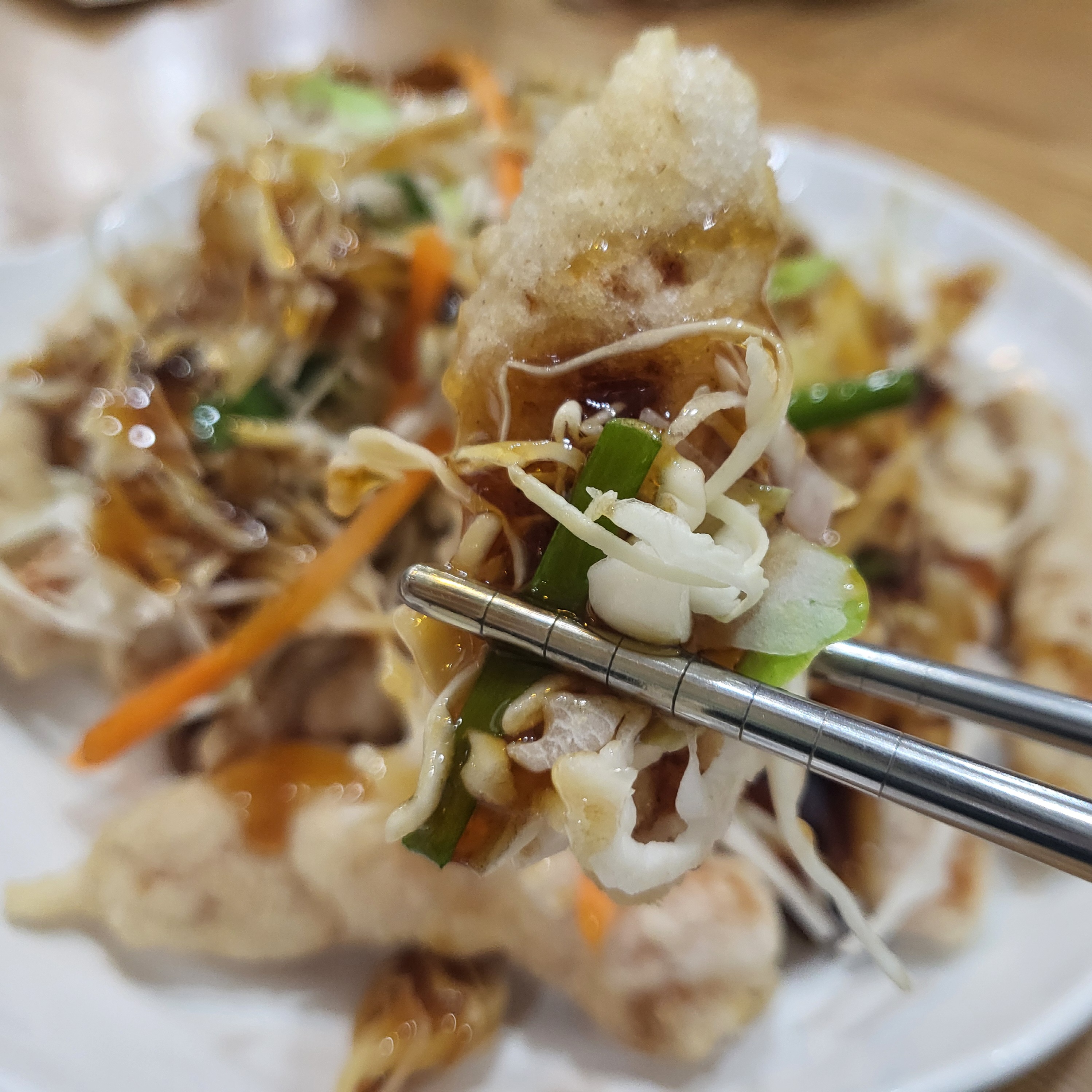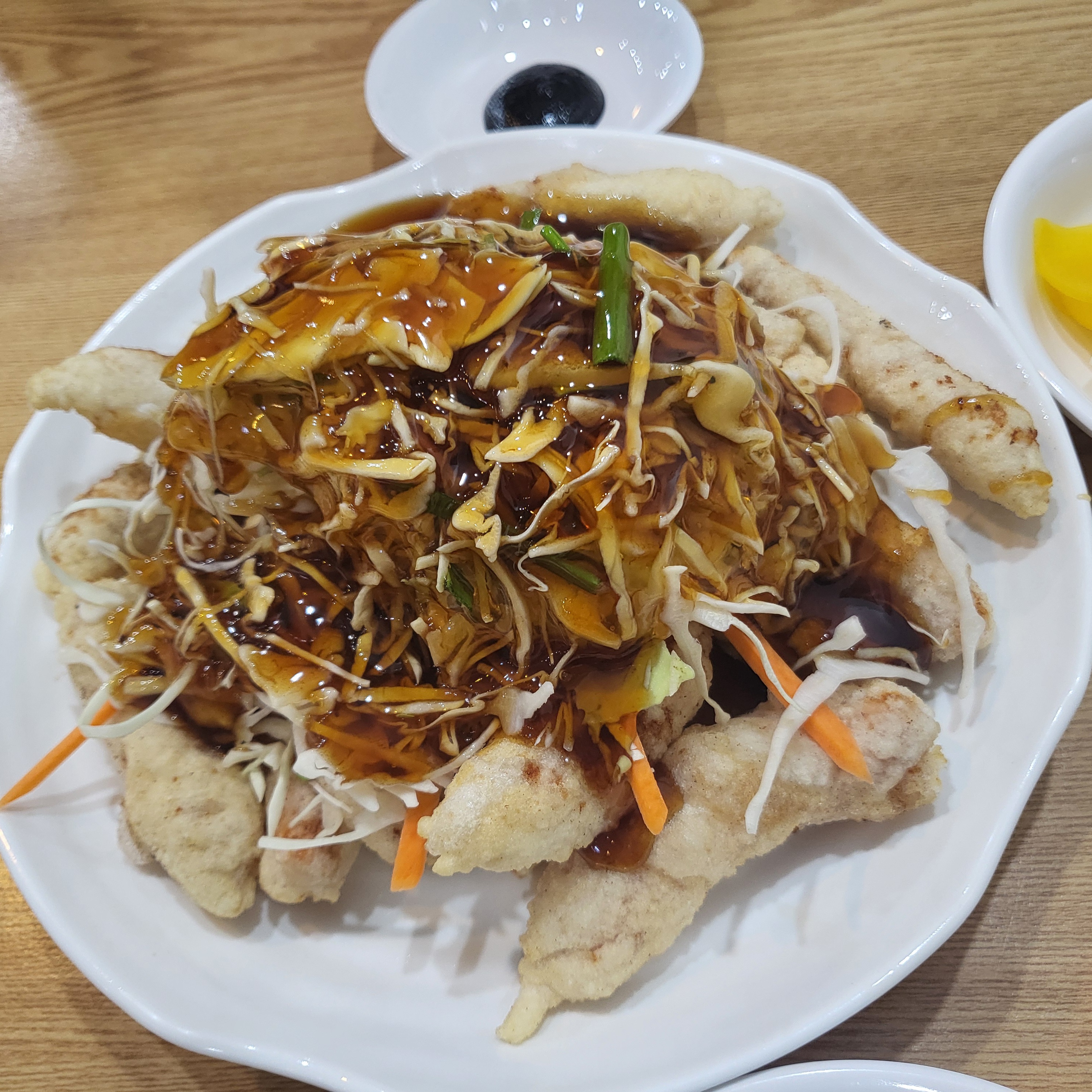 우선 찹쌀탕수육부터 먹어보았는데요. 소스랑 야채가 버무려져 나오는데 엄청 맛있더라고요. 찹쌀의 쫀득함과 야채의 아삭함이 더해지는데 어찌나 맛있던지.