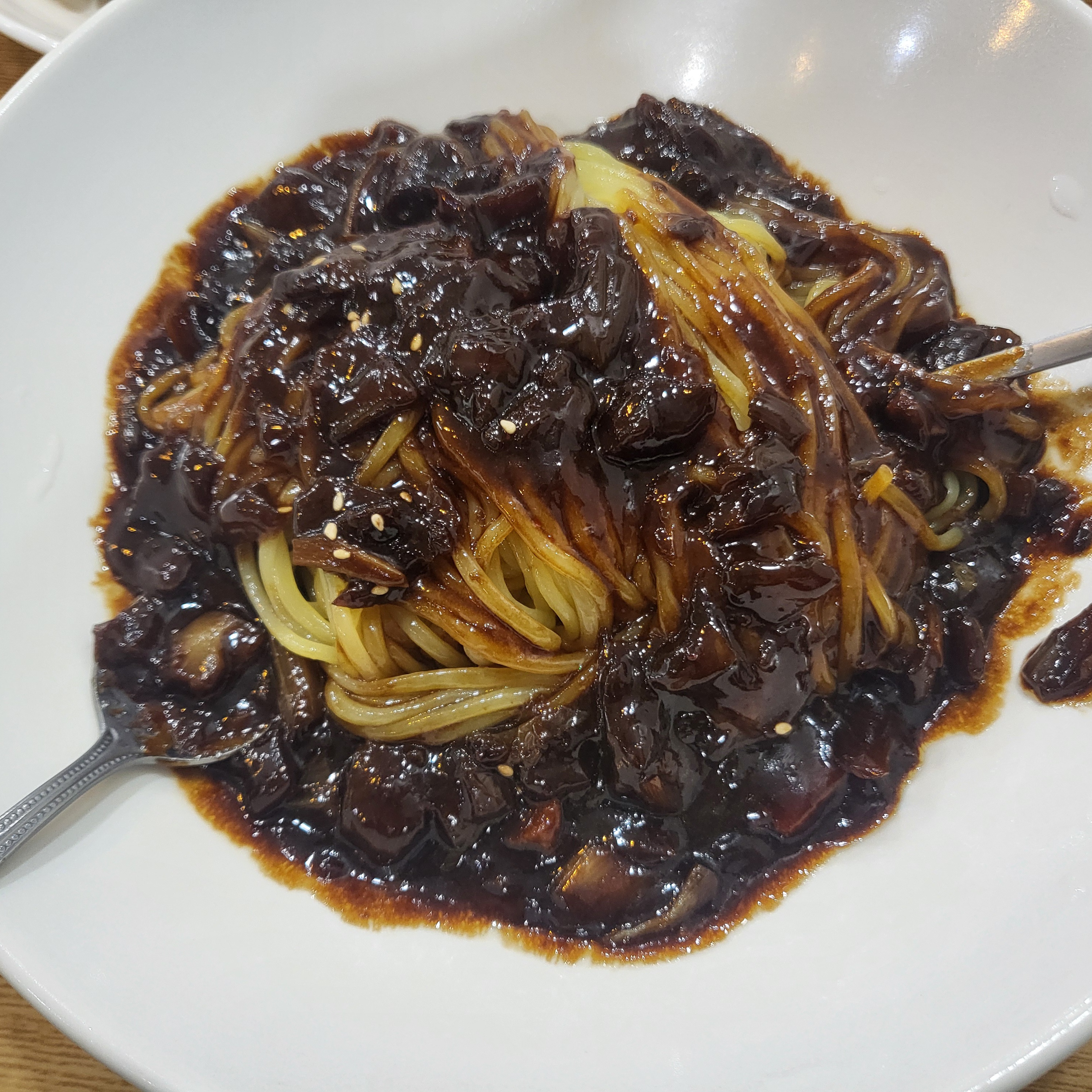 아들이랑 와이프가 나눠 먹을 짜장면도 맛을 한번 보았는데요. 면이 쫀득거리고 짜장맛이 달짝지근한 게 맛있더라고요. 아들 입맛에도 맛있었는지 아예 코를 박고 먹는데 어찌나 귀엽던지.