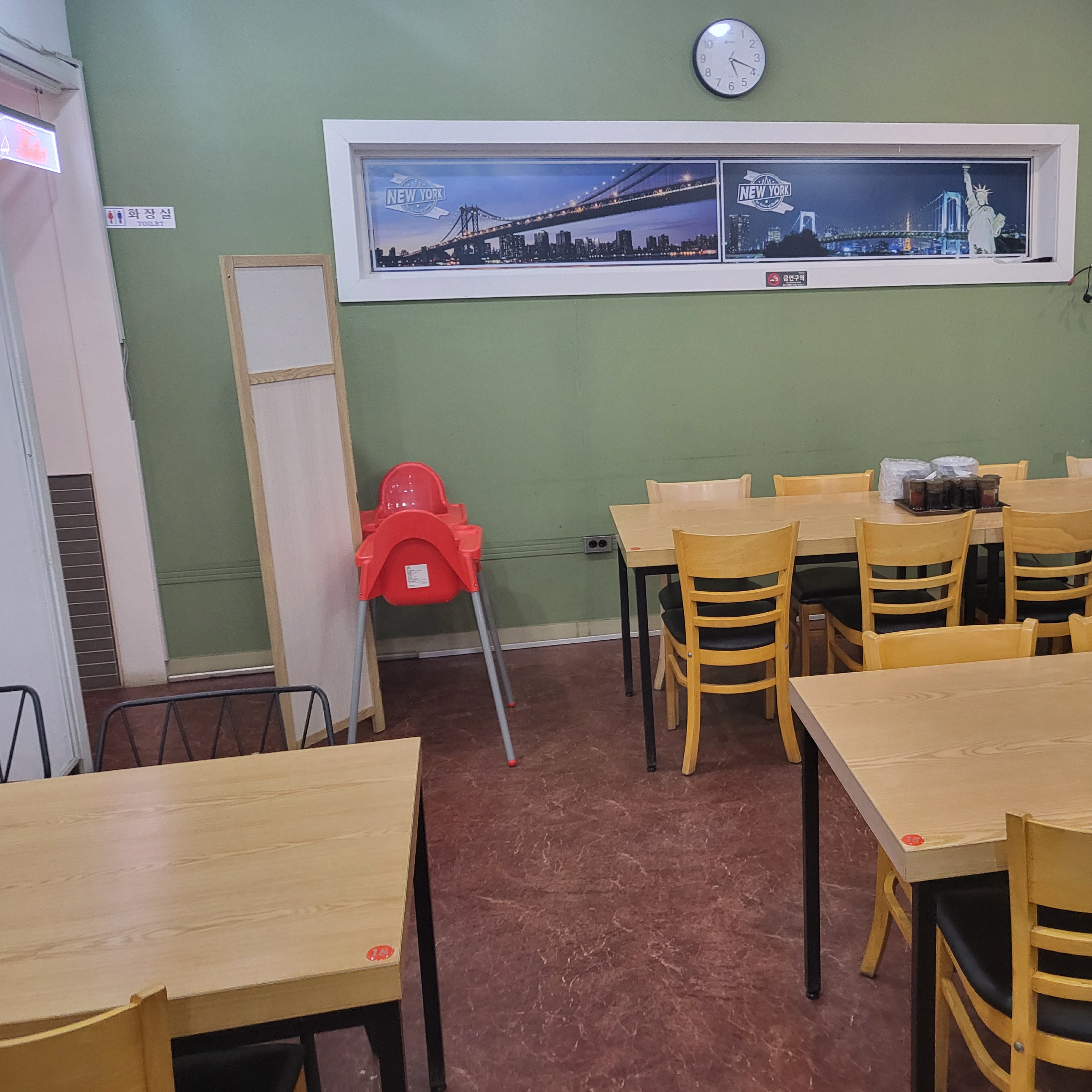내부 또한 깔끔하고 테이블이 많이 세팅되어 있더라고요. 아기 의자와 함께 화장실도 내부에 있어 마음에 들었답니다.