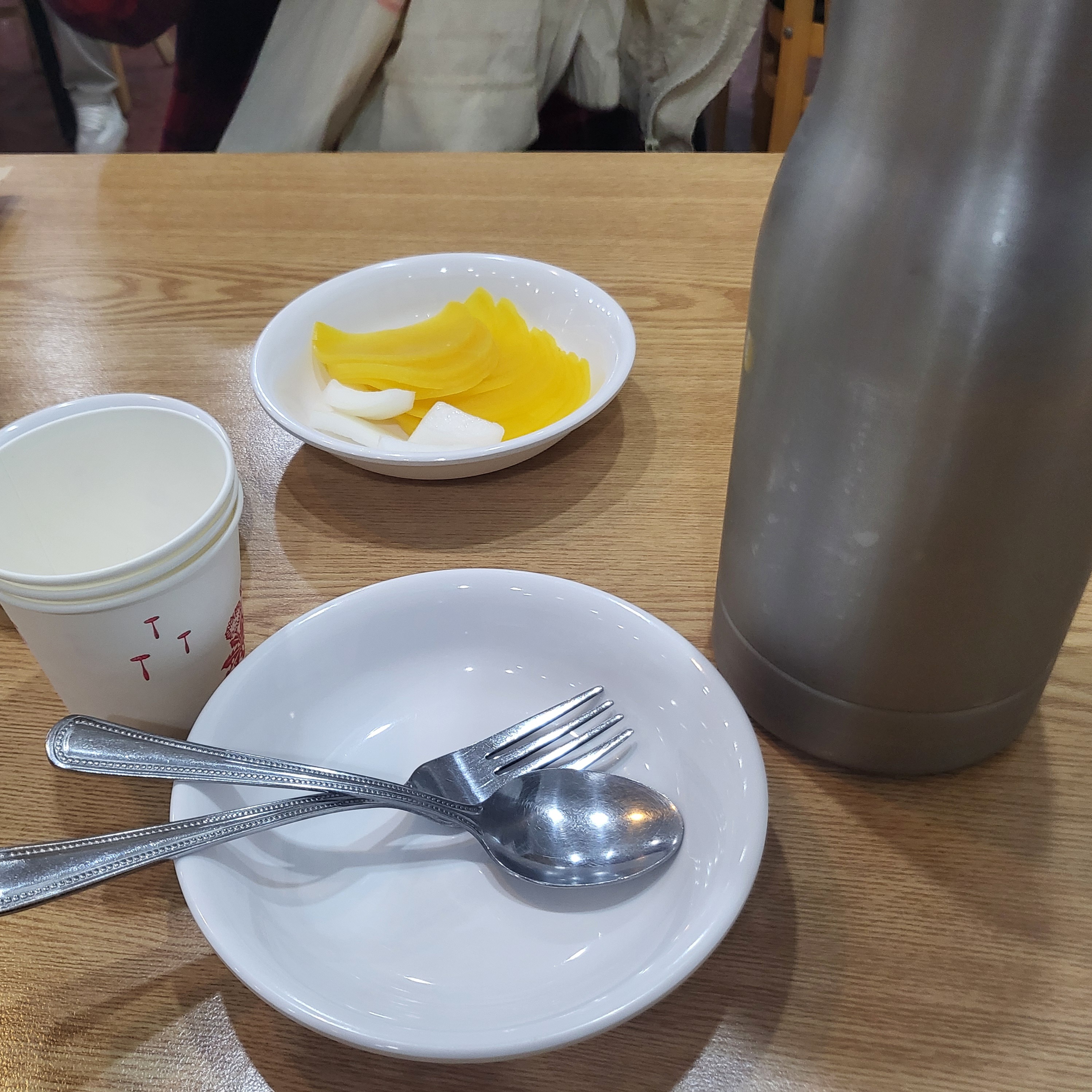 그렇게 저희 가족은 짜장면, 짬뽕, 탕수육을 시켰는데요. 아들이 있으니 센스 있게 어린이 수저를 주셨고 우선 탕수육부터 나왔답니다.