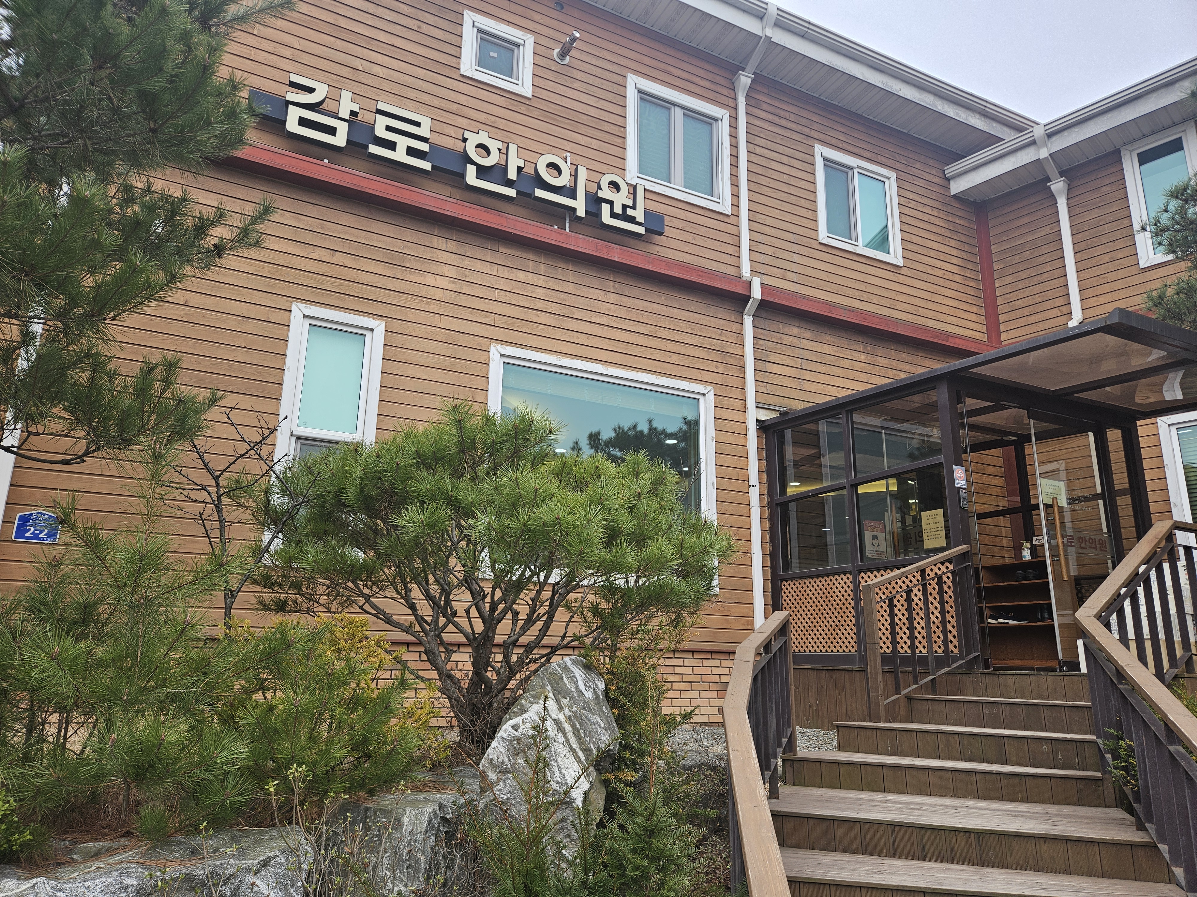 새롭게 지어진 건지 감로한의원 건물 외부는 깔끔했습니다. 나무도 많이 심어져 있고 계단도 나무로 만들어져 있어서 뭔가 정화되는 기분이었습니다.