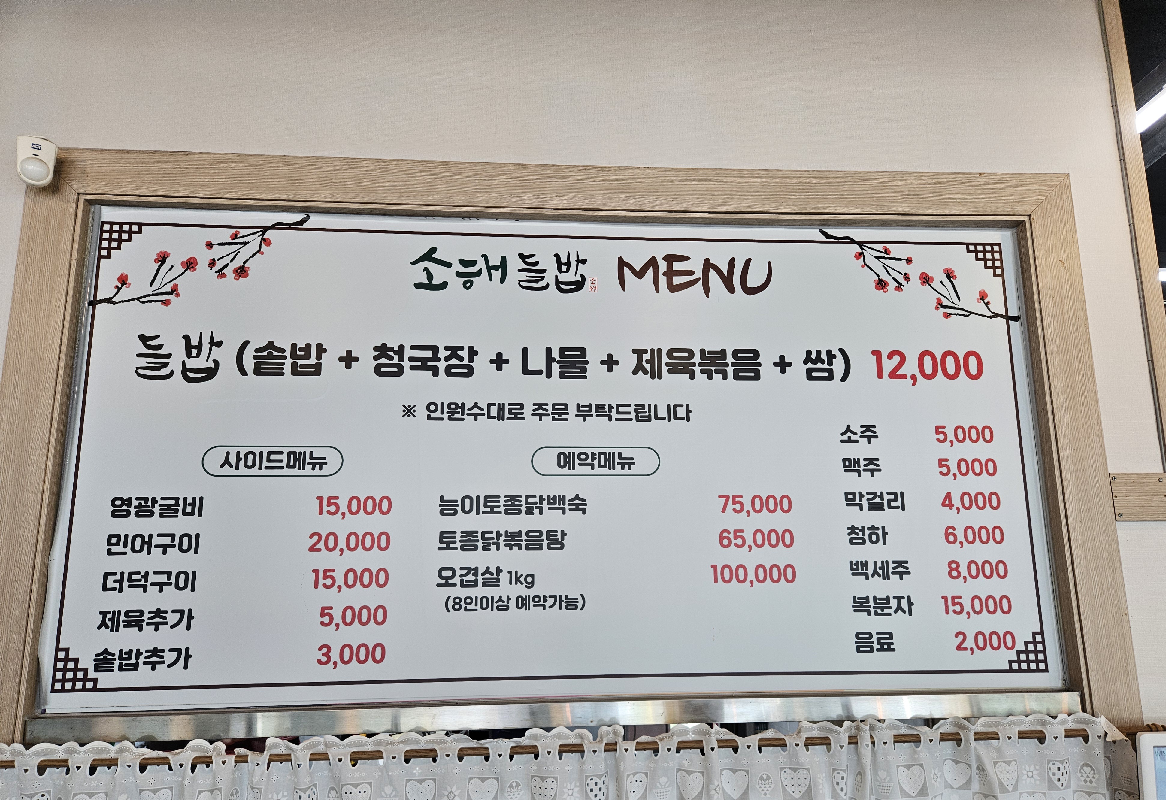 예전엔 1인 식사도 가능했었던 것 같지만 요즘 물가가 많이 올라서 1인 식사는 안 되는 듯했습니다.