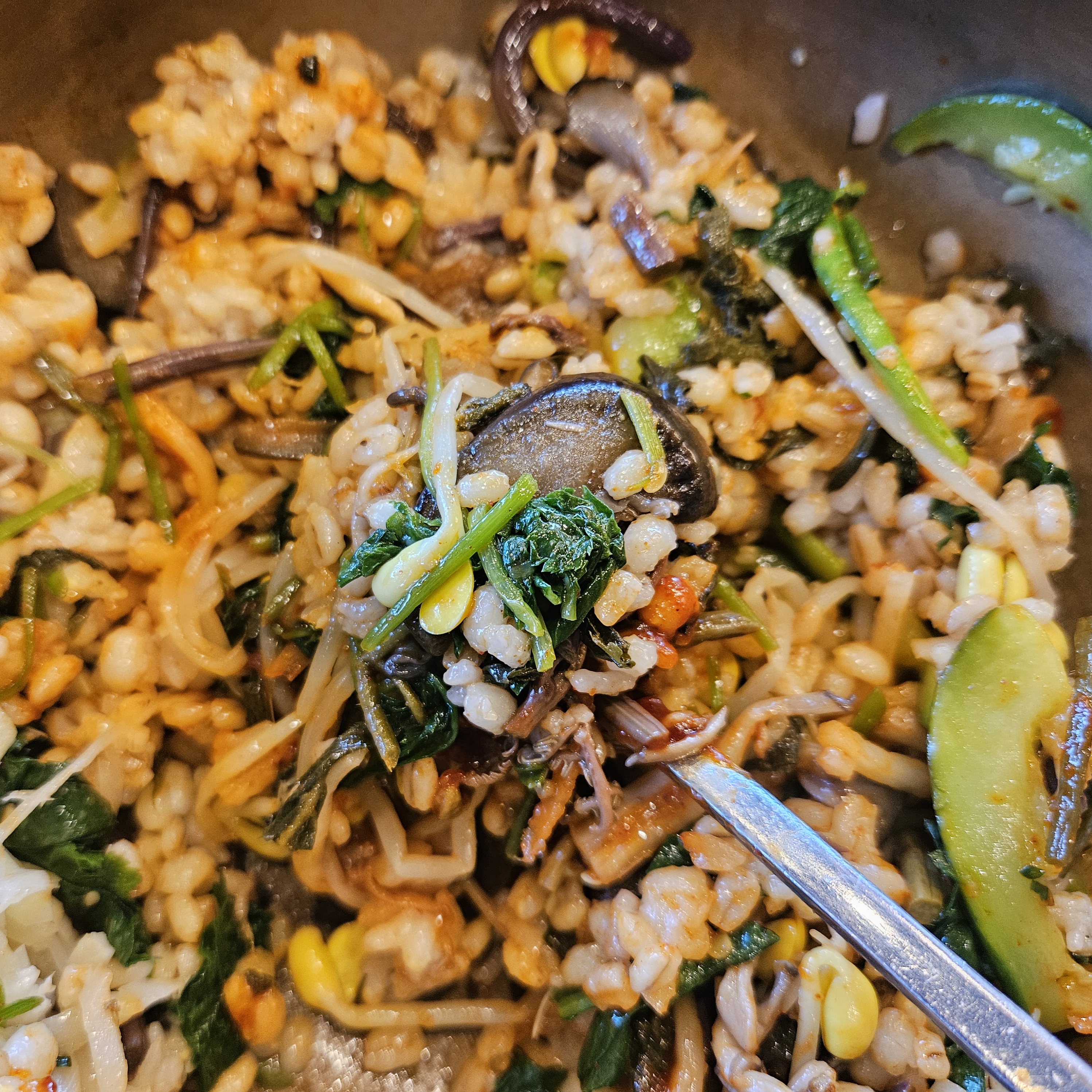 보리밥에 각종 야채를 넣고 비벼먹었는데 먹을만하더라고요. 맨날 돈가스 아니면 중국집만 가다 이렇게 건강식을 먹으니 건강해지는 느낌이 들었습니다.