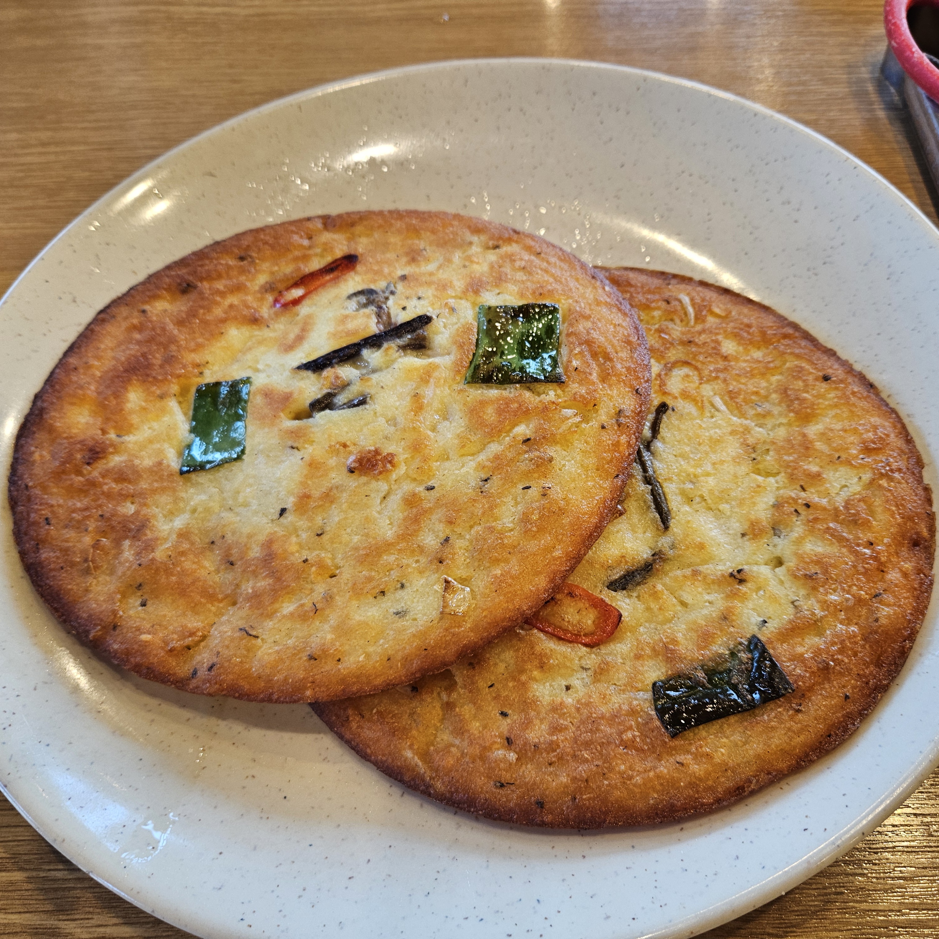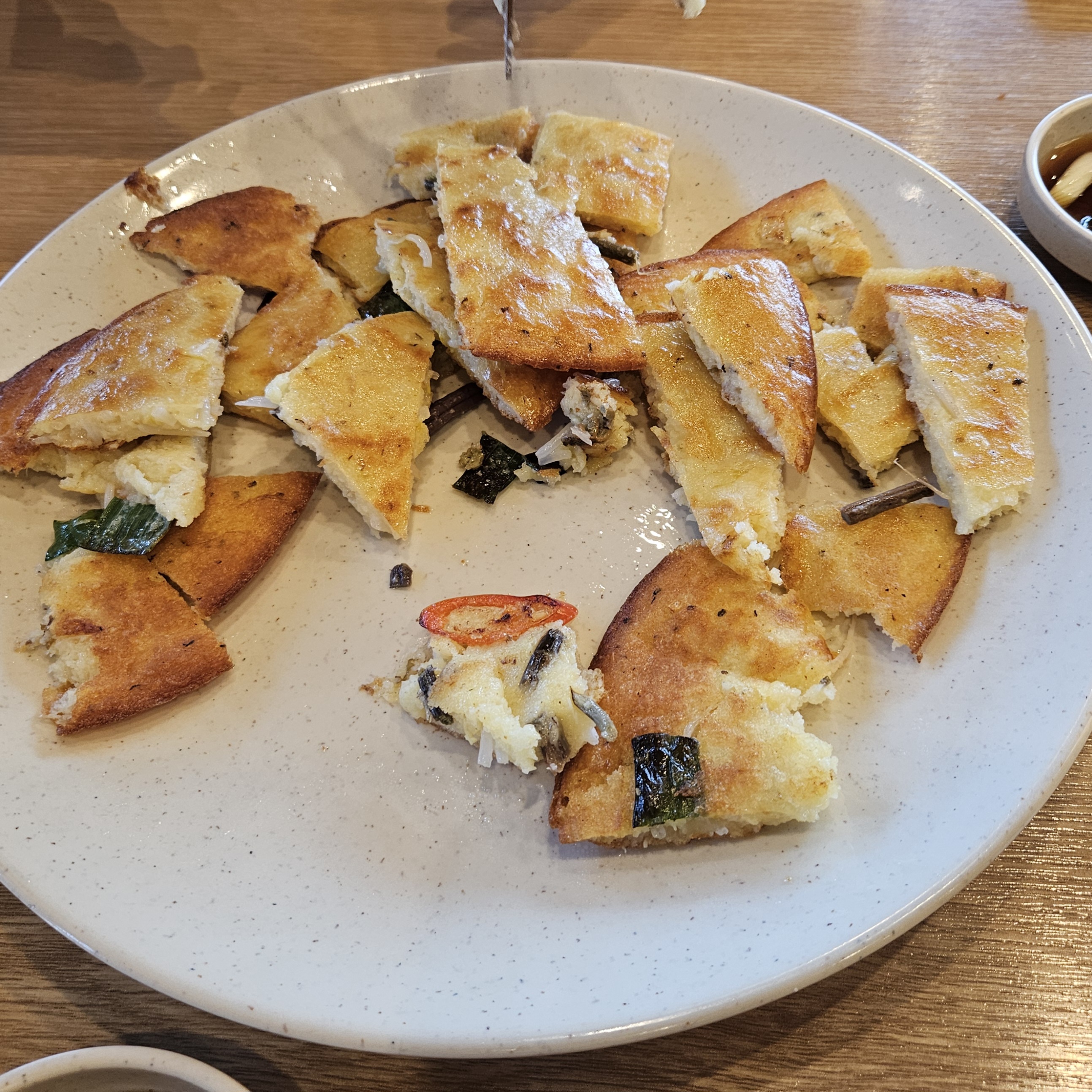 무엇보다 녹두전을 안 시켰으면 섭섭했을뻔했습니다. 보리밥도 보리밥이지만 녹두전이 맛있더라고요. 녹두전이랑 같이 나왔던 간장이랑 먹으니 어찌나 맛있던지.