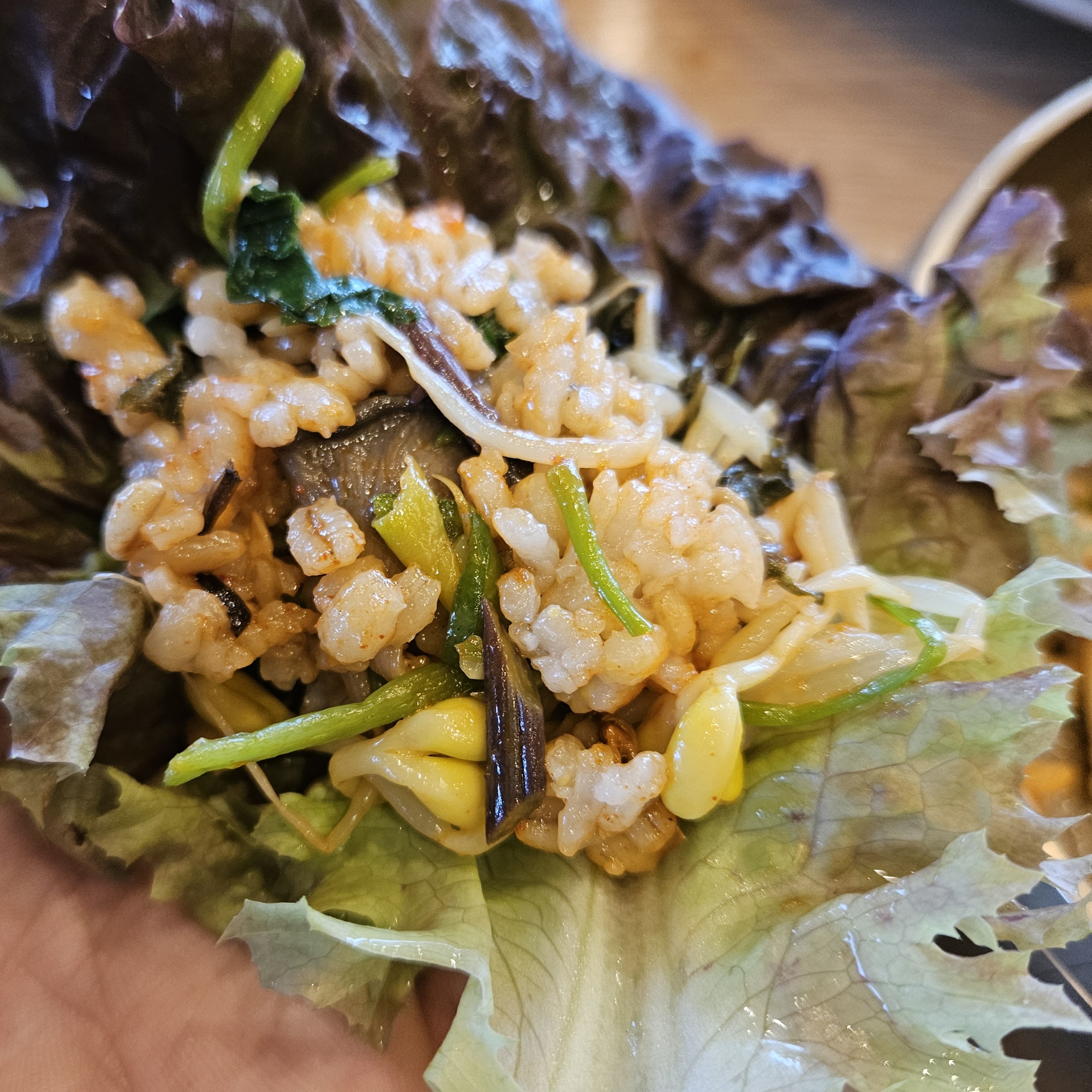 된장찌개는 엄청 특별나게 맛있거나 하진 않았지만 역시 남이 해줘서 맛있는 건지 술술 넘어가더라고요. 상추는 왜 나왔는지 모르겠지만 나온 상추는 밥이랑 같이 싸 먹어버렸답니다.
