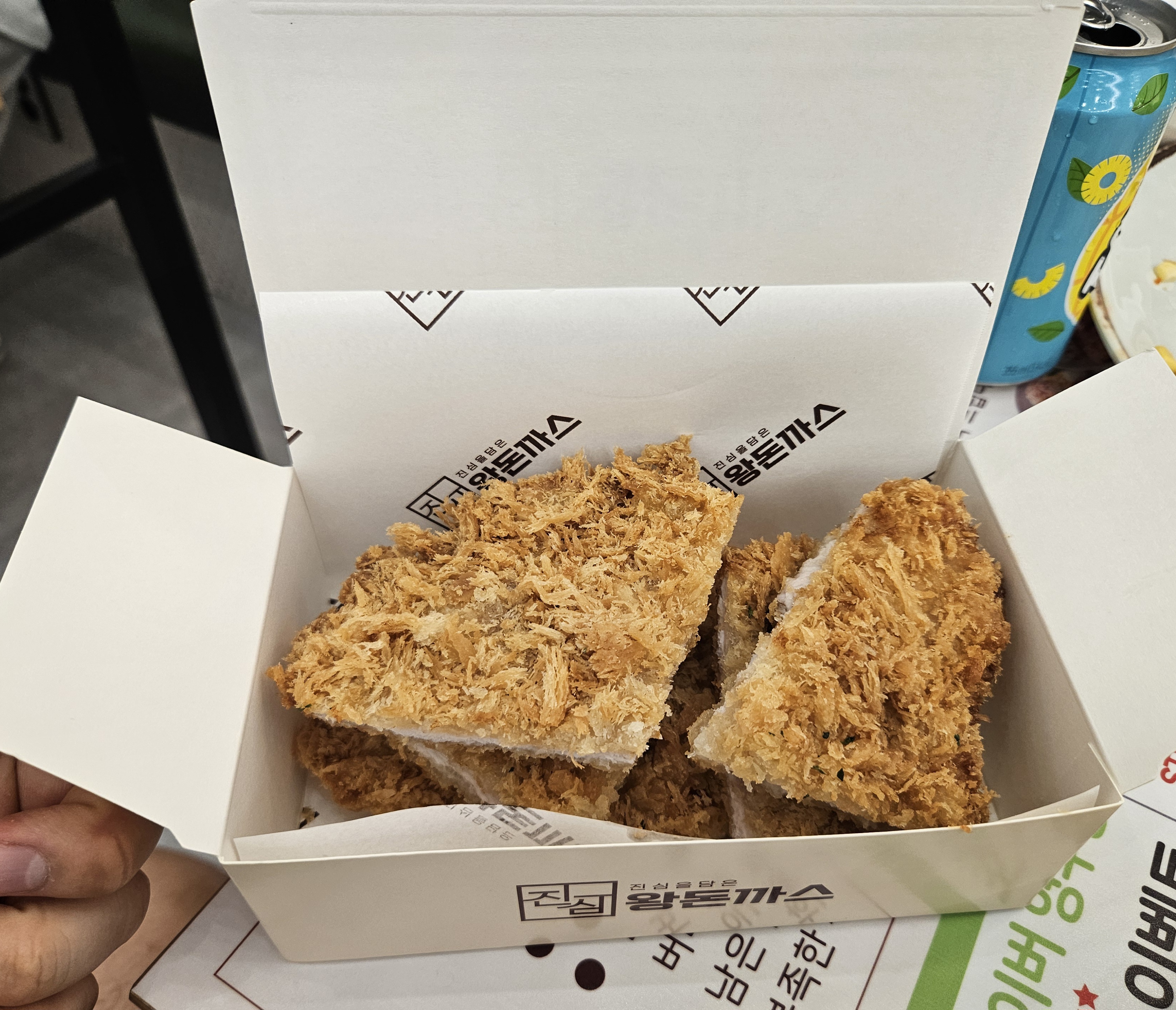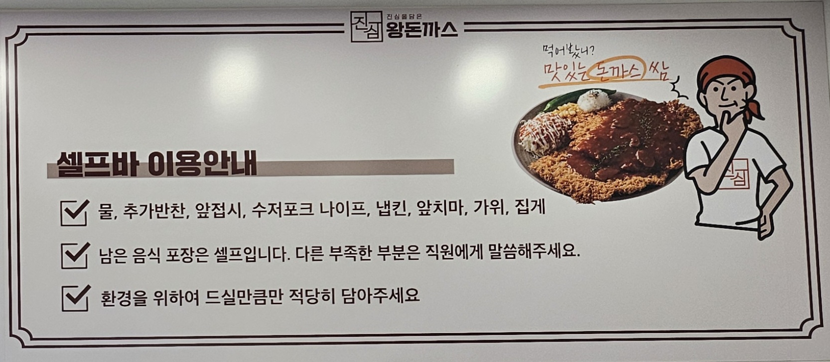 역시 욕심이었을까요? 왕돈까스는 한 덩이 하고도 반덩이가 남아 거의 다 남겼는데요. 그래도 걱정할 필요 없이 셀프포장대에서 용기를 챙겨 와 포장을 했답니다.