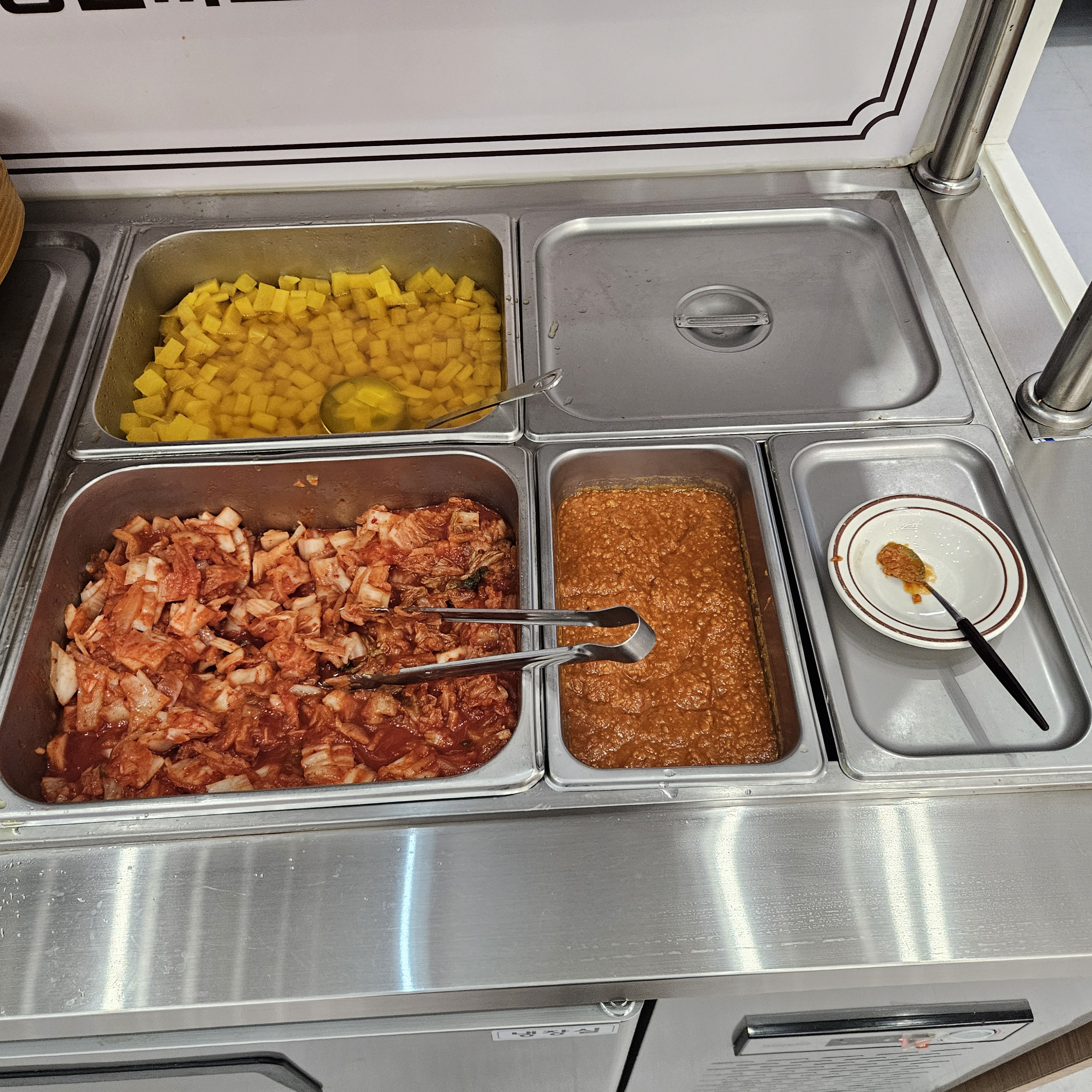 그리고 셀프바가 따로 있었는데요 남은 음식 포장도 셀프로 할 수 있고 물, 앞접시, 수저 등등은 전부 셀프였습니다.