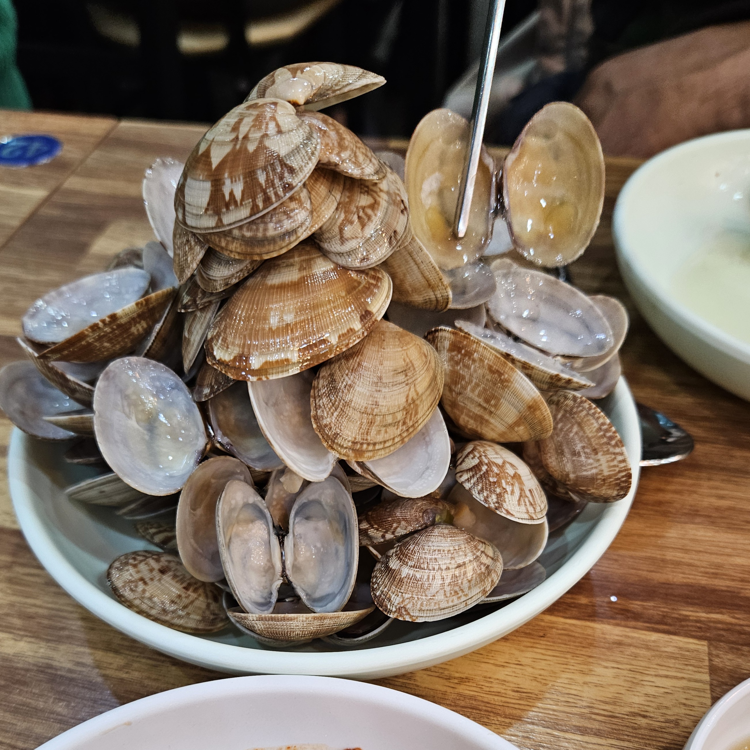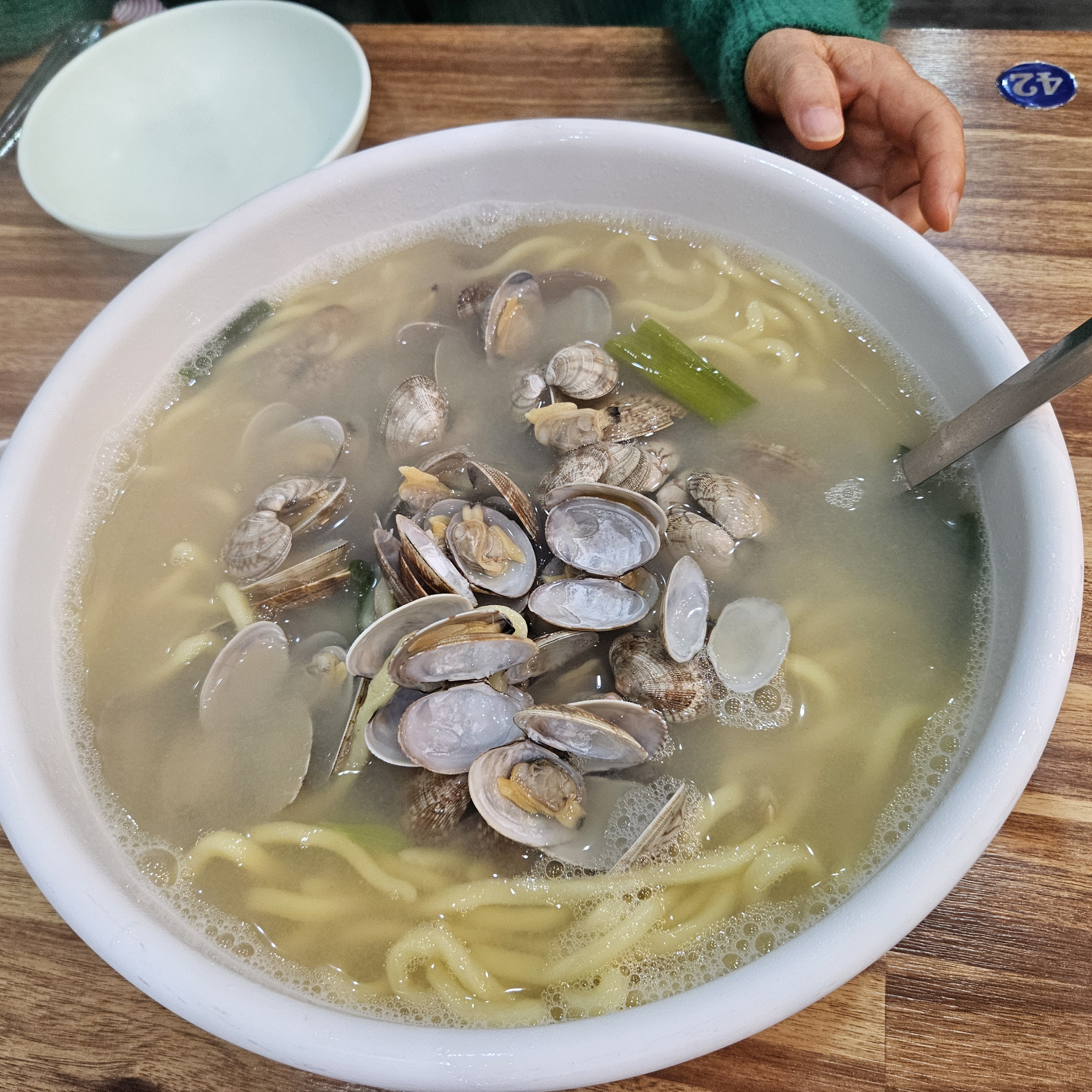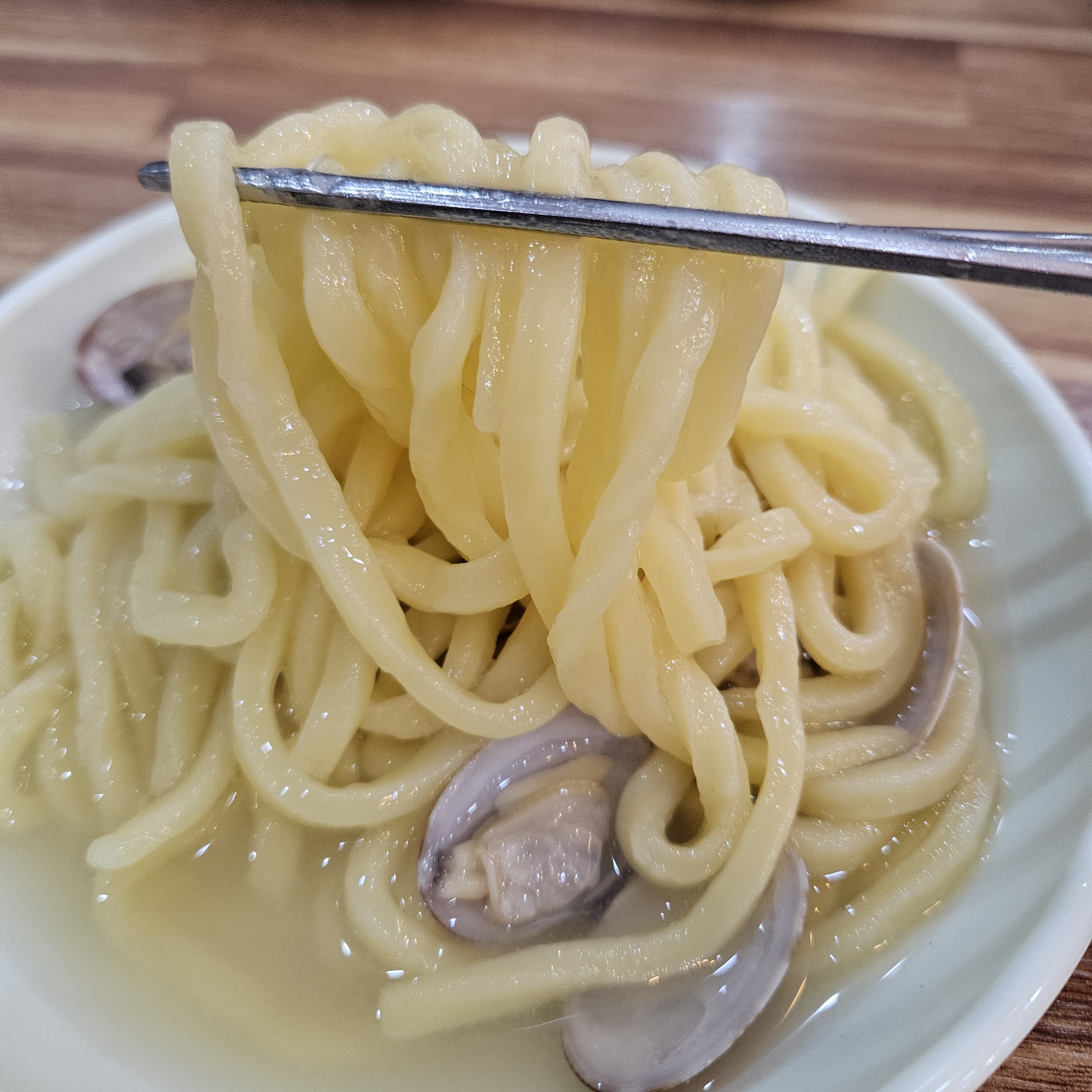 이런 식으로 각자 덜어서 먹는 곳이고 사진으로도 면발이 탱글탱글해 보이지 않나요? 무엇보다 바지락이 엄청 많이 들어있어 국물도 깔끔하고 시원하답니다.