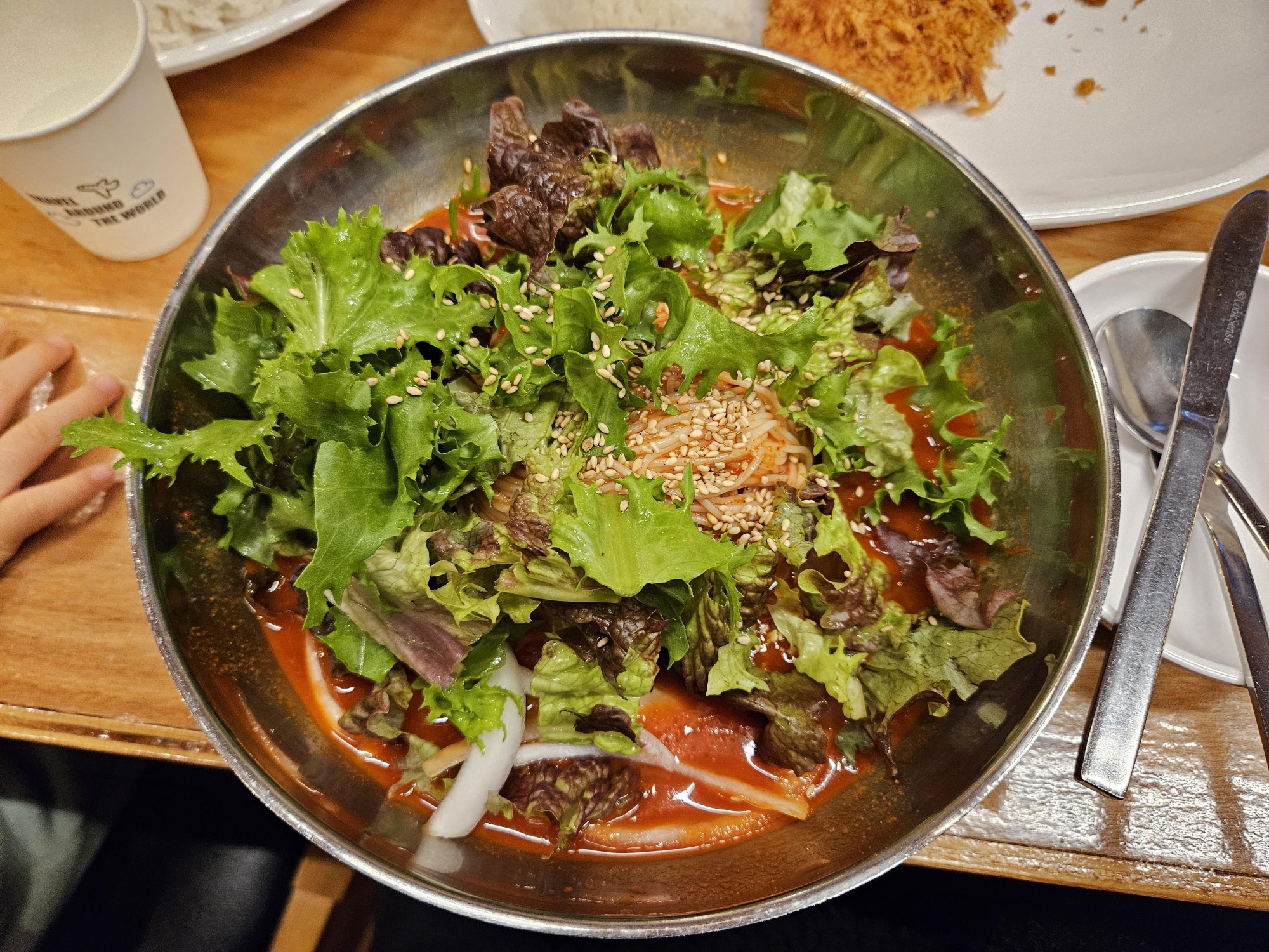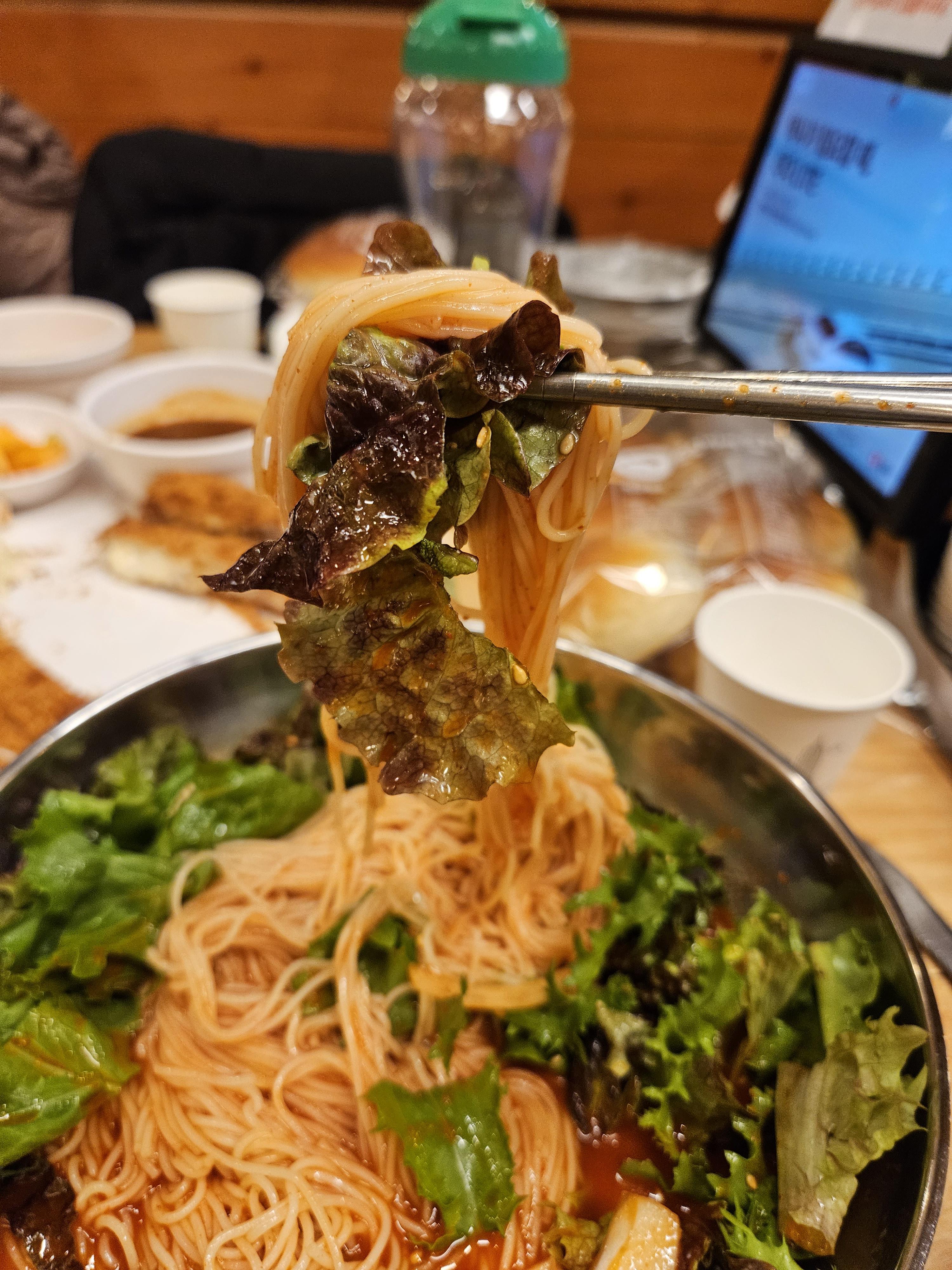 하지만 저는 개인적으로 잔치국수보단 국물비빔국수가 더 맛있었습니다. 새콤달콤한 게 정말 맛있고 야채가 많이 들어가 식감 또한 아삭아삭거리면서 맛있더라고요. 그리고 왕돈까스랑 같이 먹어도 맛있습니다. 정말 꿀맛이에요.