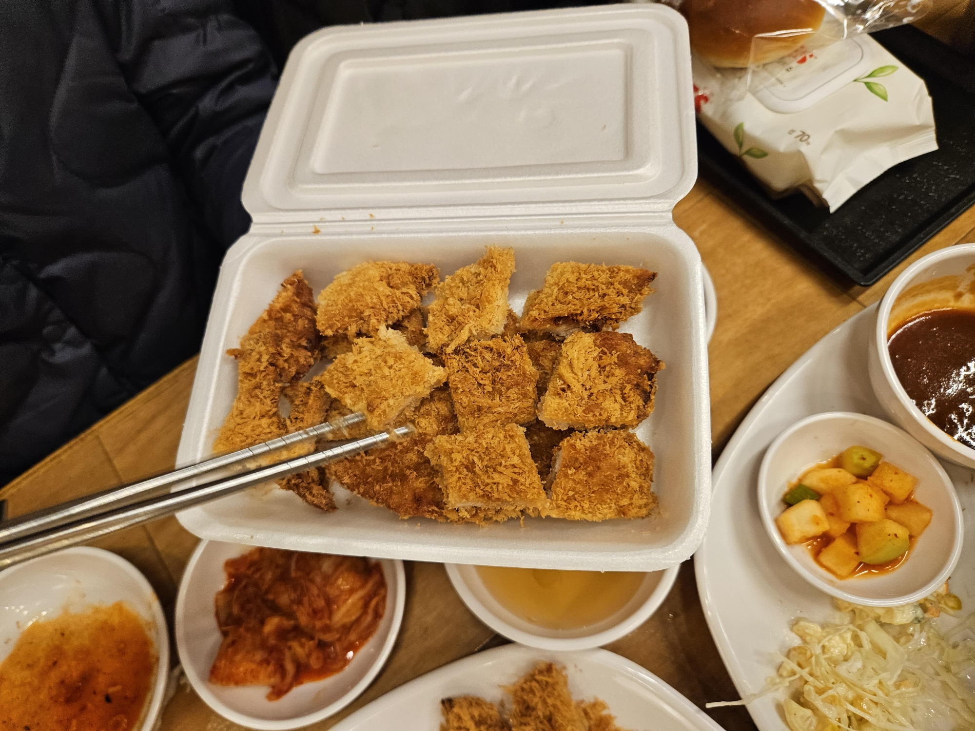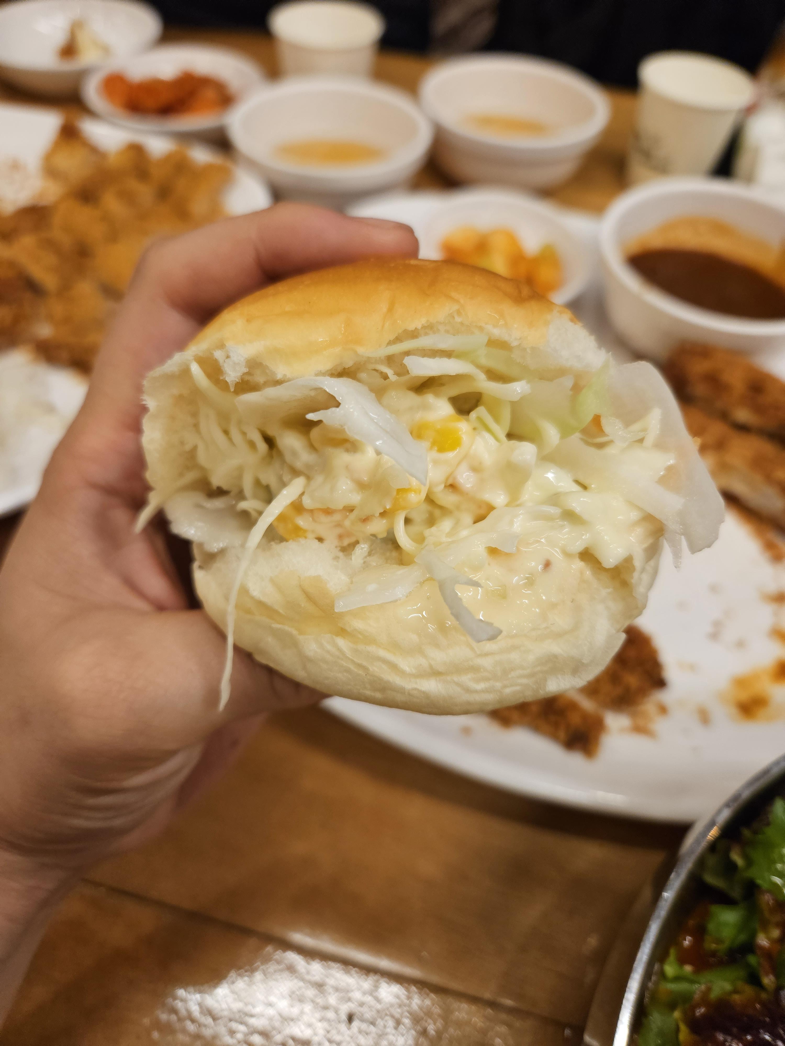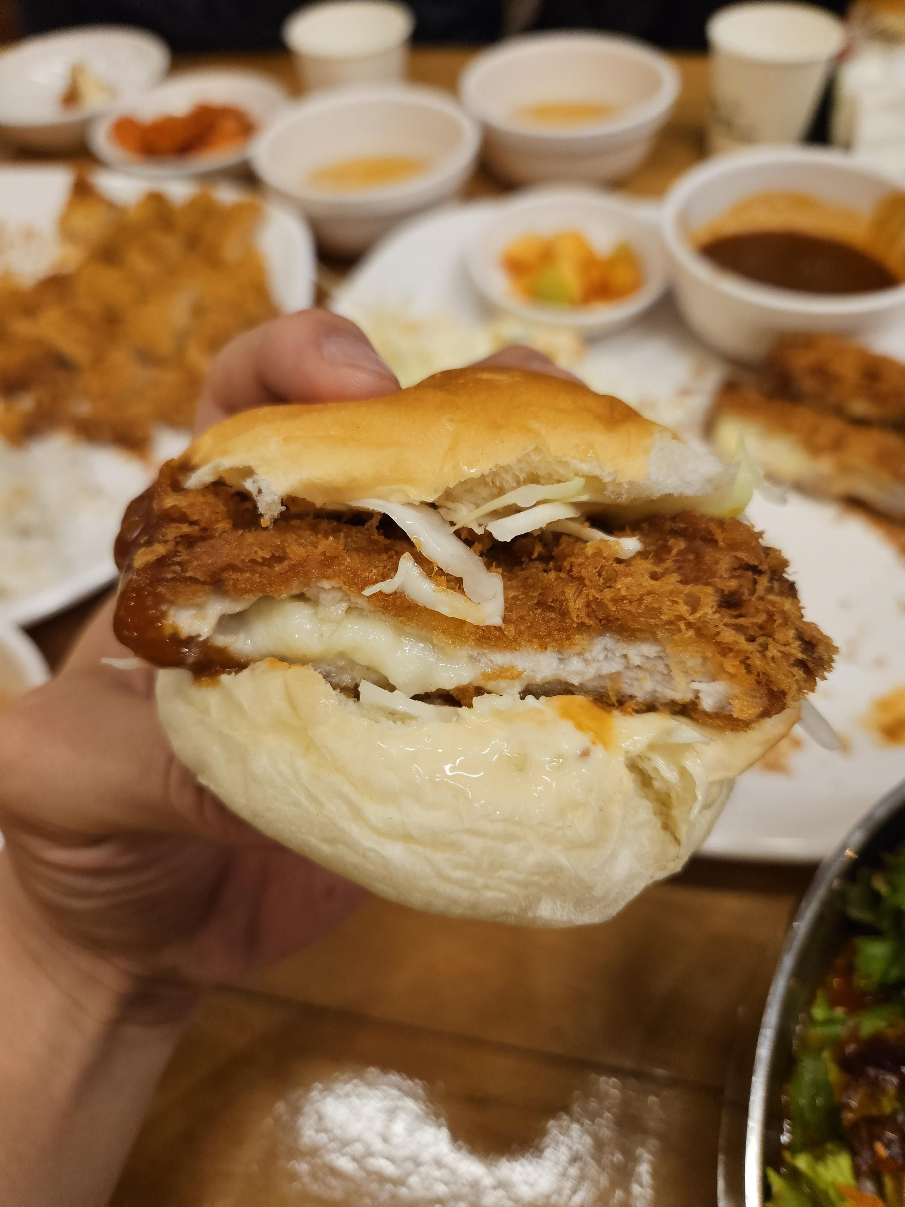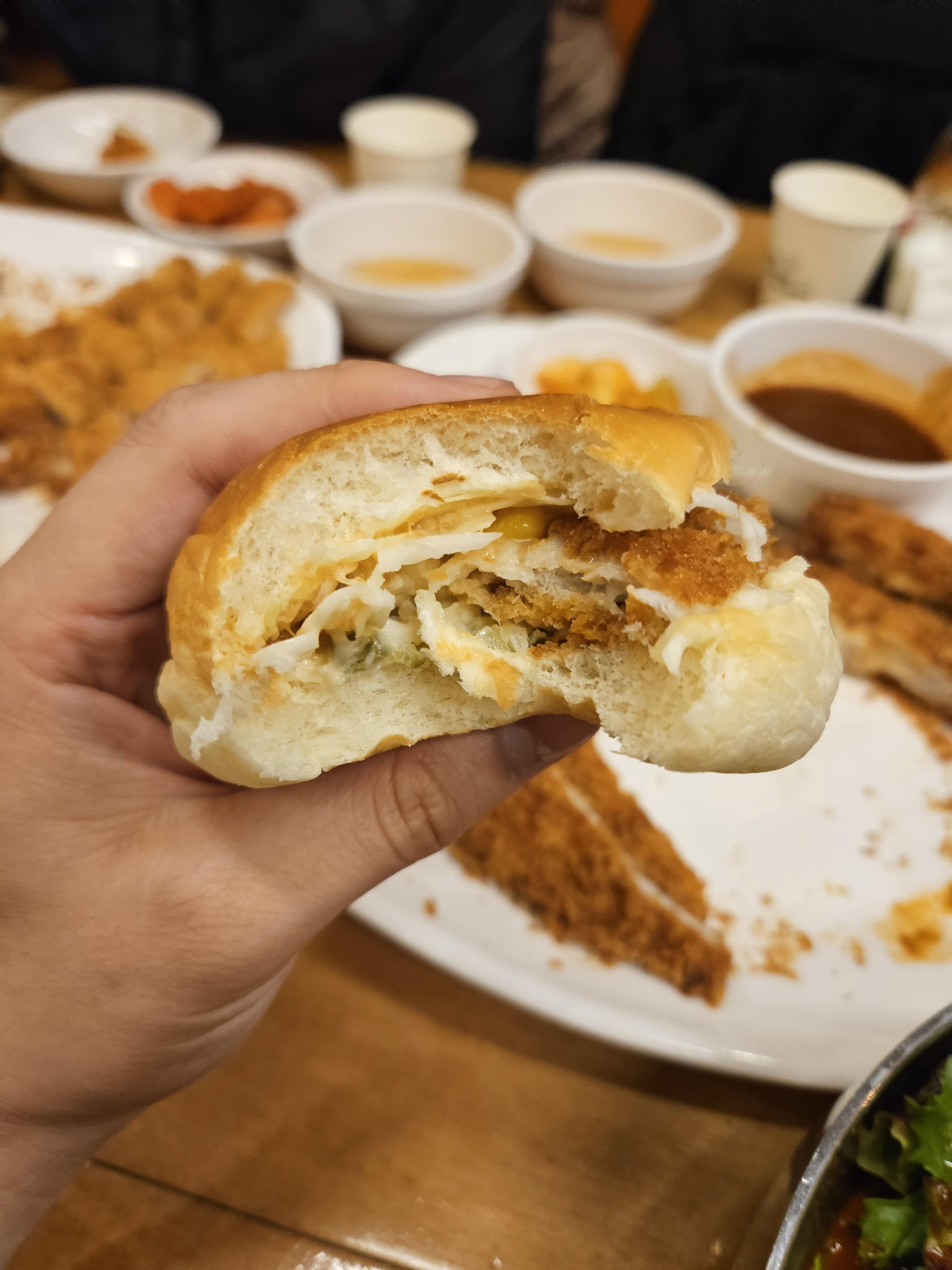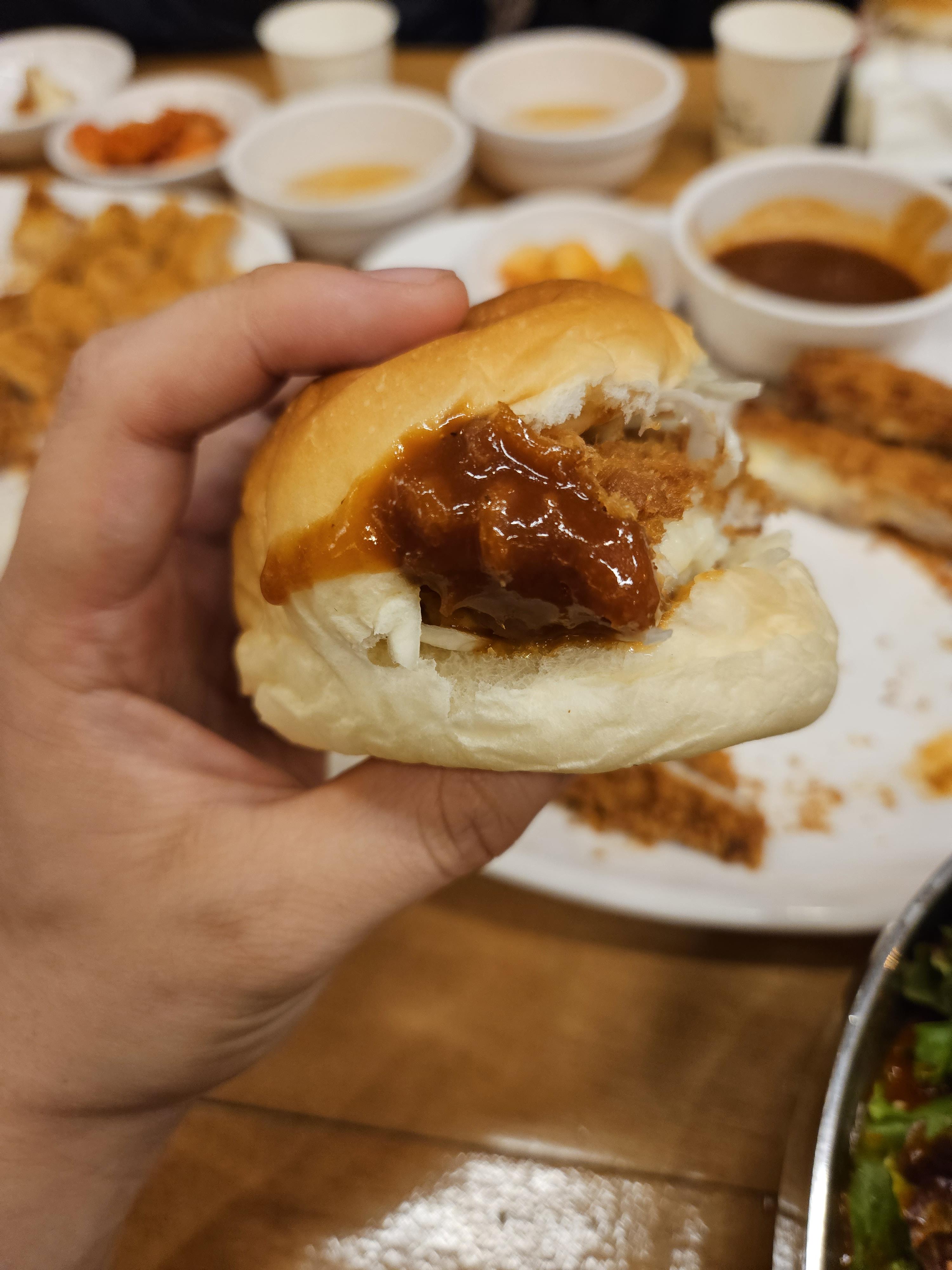 그리고 별미로 모닝빵을 별도로 시켜서 빵 한가운데를 갈라 반찬으로 나온 샐러드를 넣고 돈까스도 소스에 찍어 빵에 넣어 먹으면 정말 맛있답니다. 만약 방문하게 된다면 한번 별미로 먹어보세요.