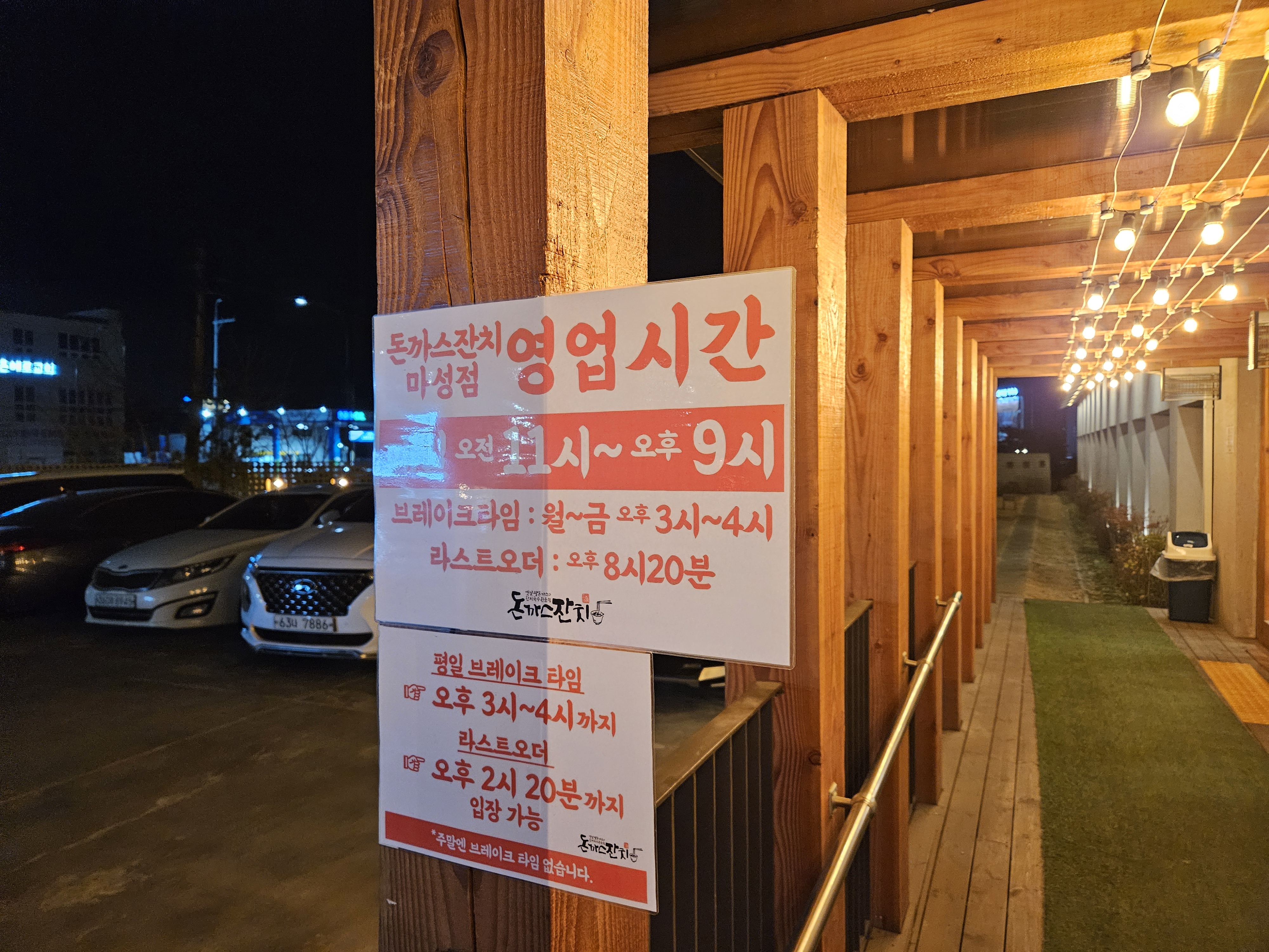 돈까스잔치 마성점 영업시간은 오전 11시에 오픈해서 9시에 마감을 하는데요. 평일에는 오후 3-4시에 브레이크 타임이 있더라고요. 그리고 라스트오더는 점심시간 오후 2시 20분까지 입장가능하고, 저녁마감시간에는 오후 8시 20분까지 가능했습니다.