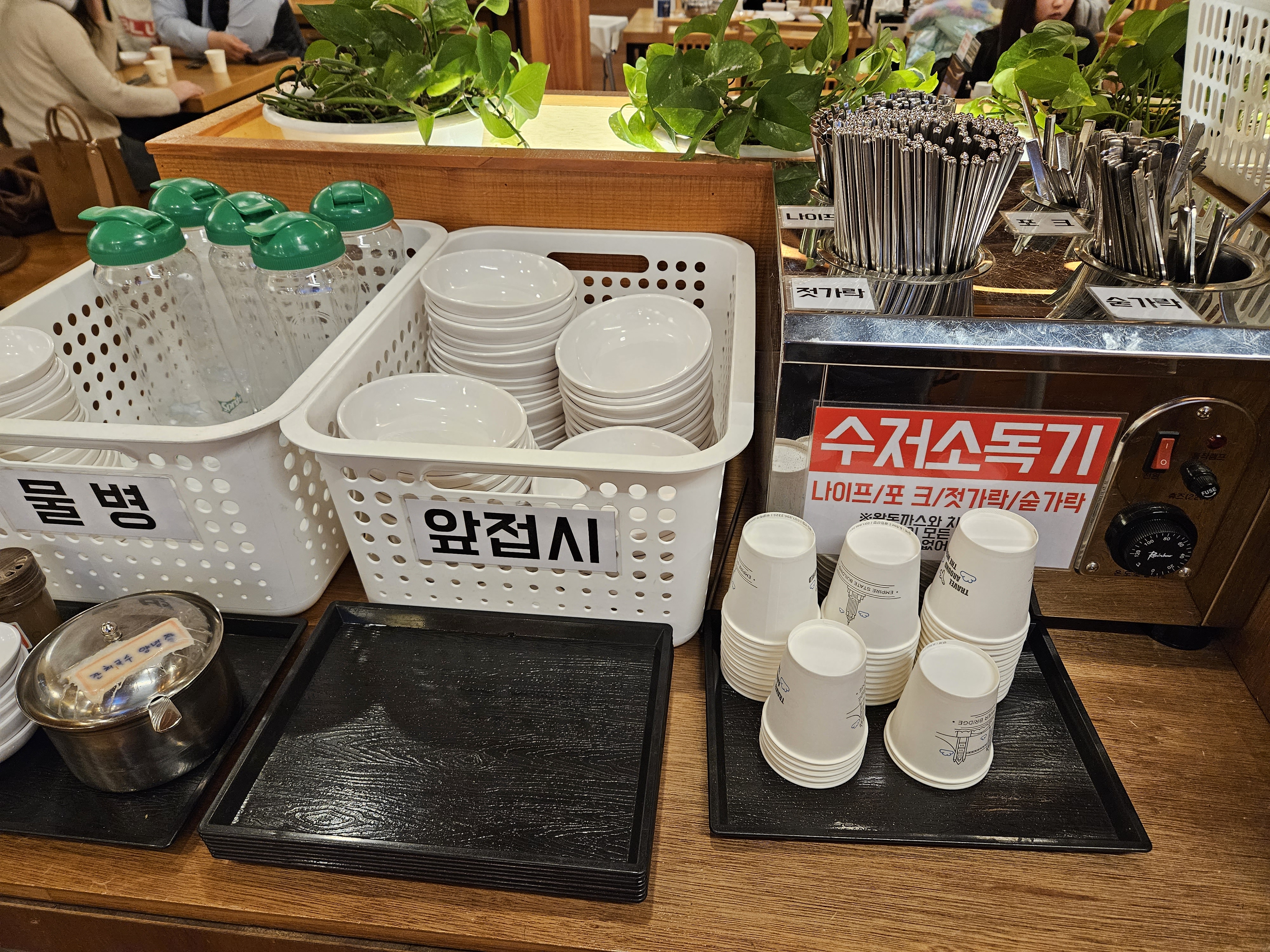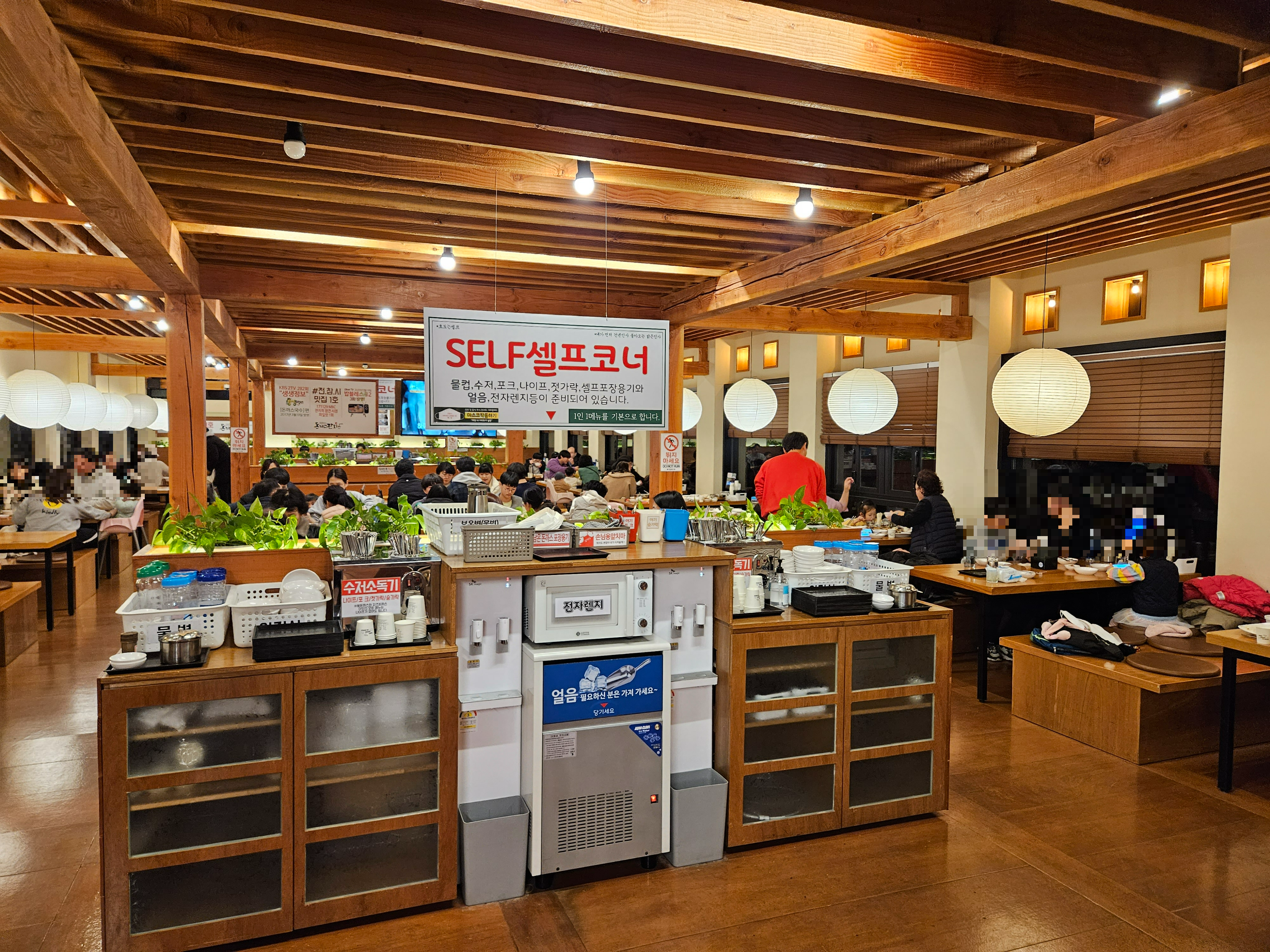 손님 엄청 많죠? 셀프코너는 뒤쪽 편에도 있으니 굳이 앞쪽에 안 앉으셔도 됩니다.