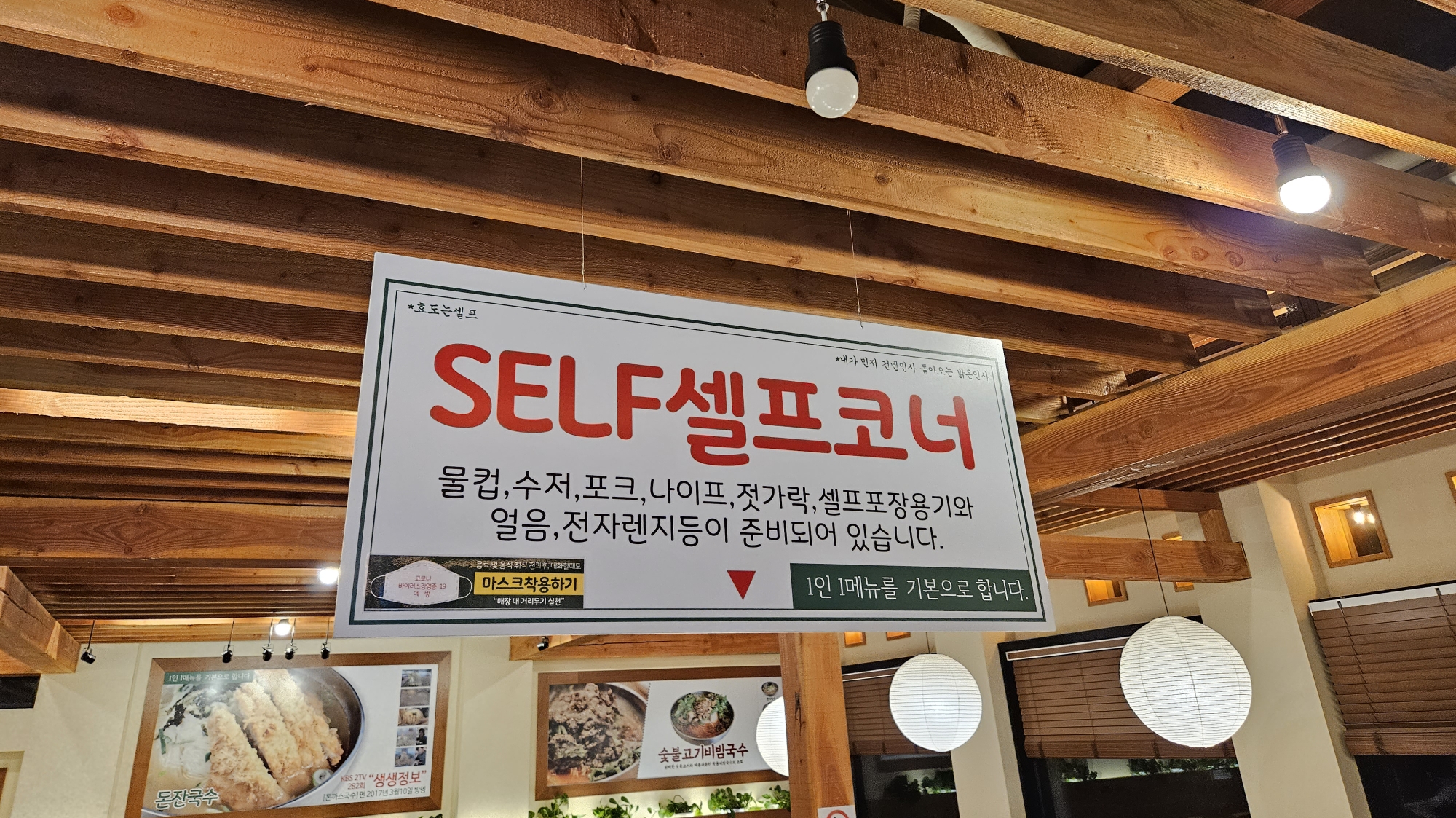 셀프코너는 이런 식으로 플랜카드가 걸려있습니다