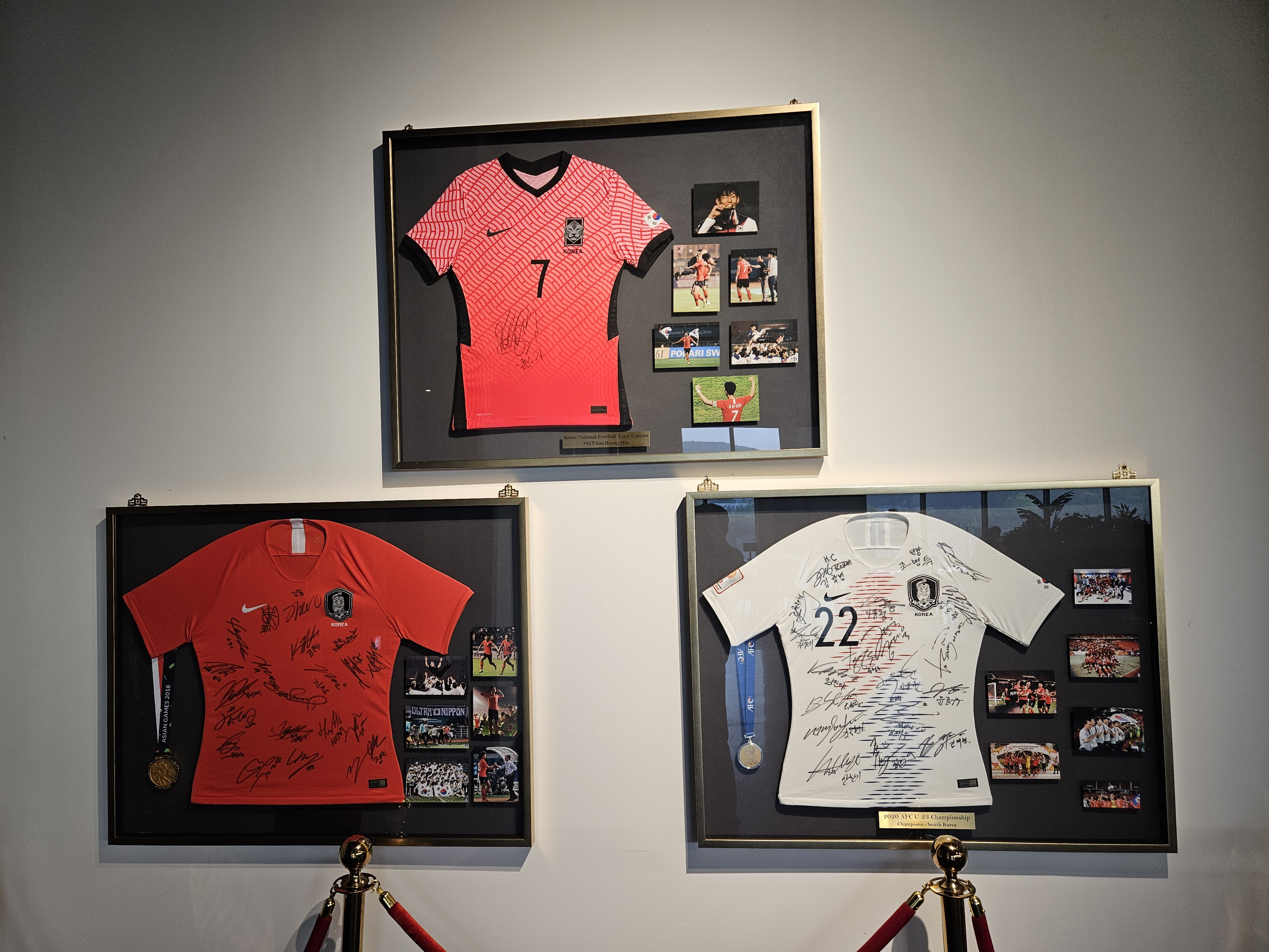 우선 입구에 들어가면 코끼리 동상이 마중 나와있더라고요. 그리고 안쪽으로 들어가면 사장님이 축구를 좋아하시는지 축구 유니폼까지 액자에 걸려있었는데요.