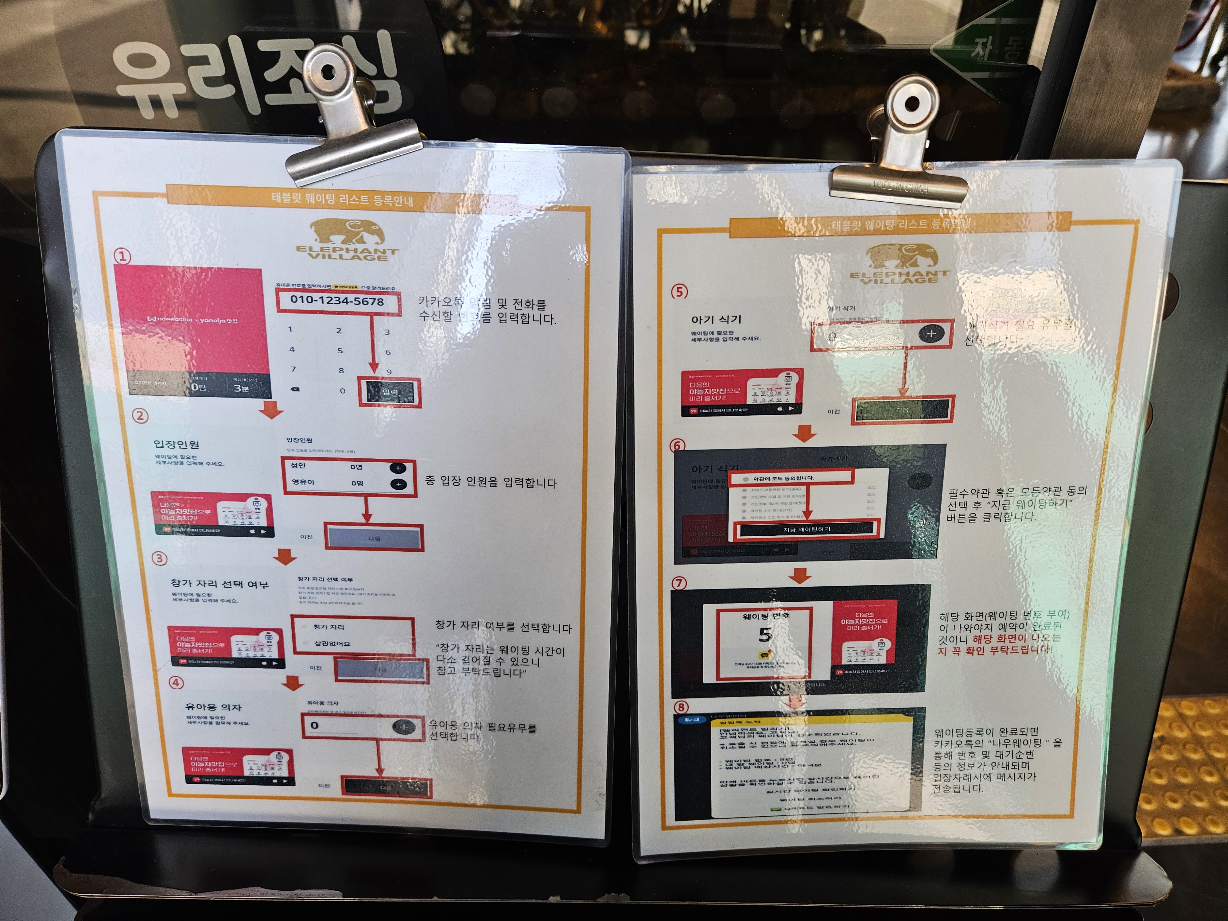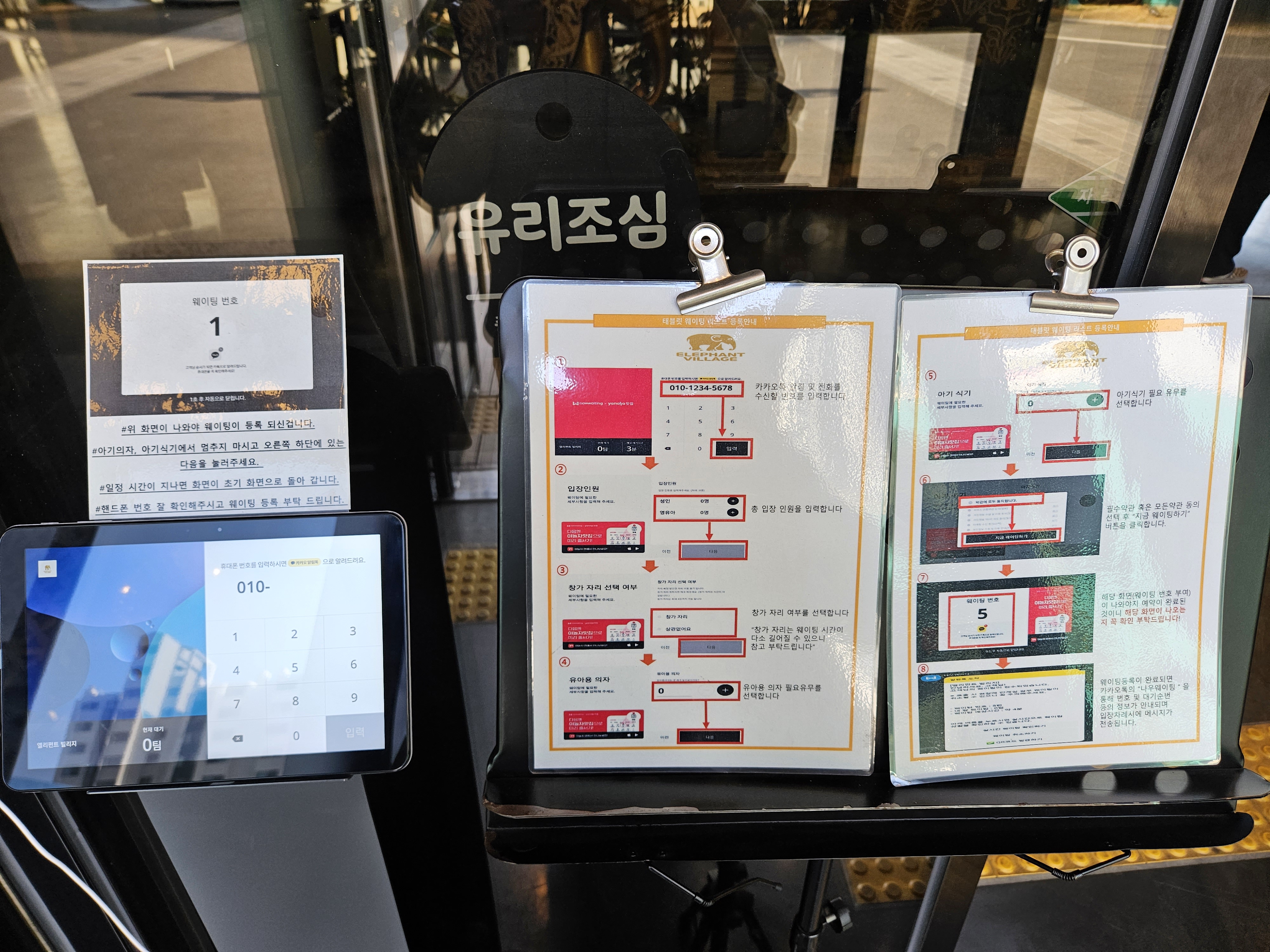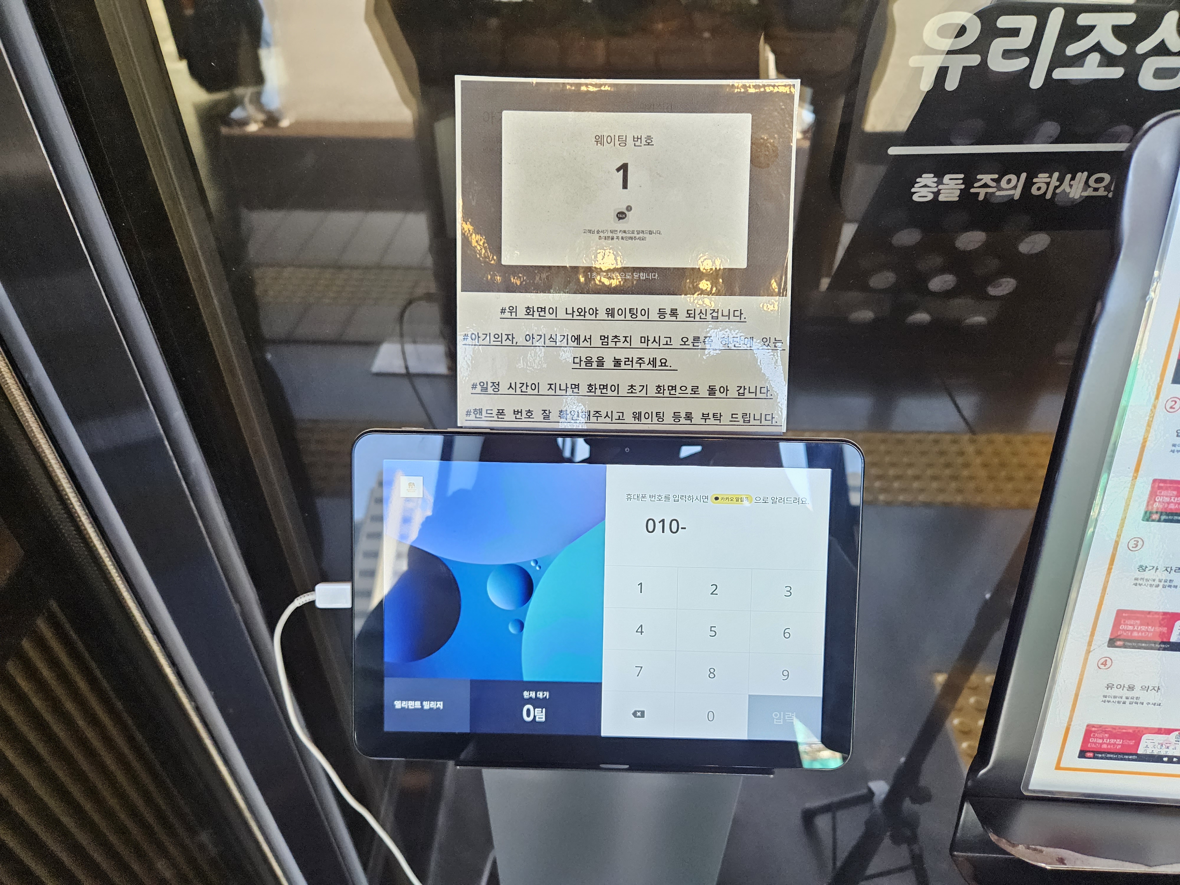 입구 앞에는 손님이 가득 찼을 때 순번을 기다리는 웨이팅 기계도 있더라고요.