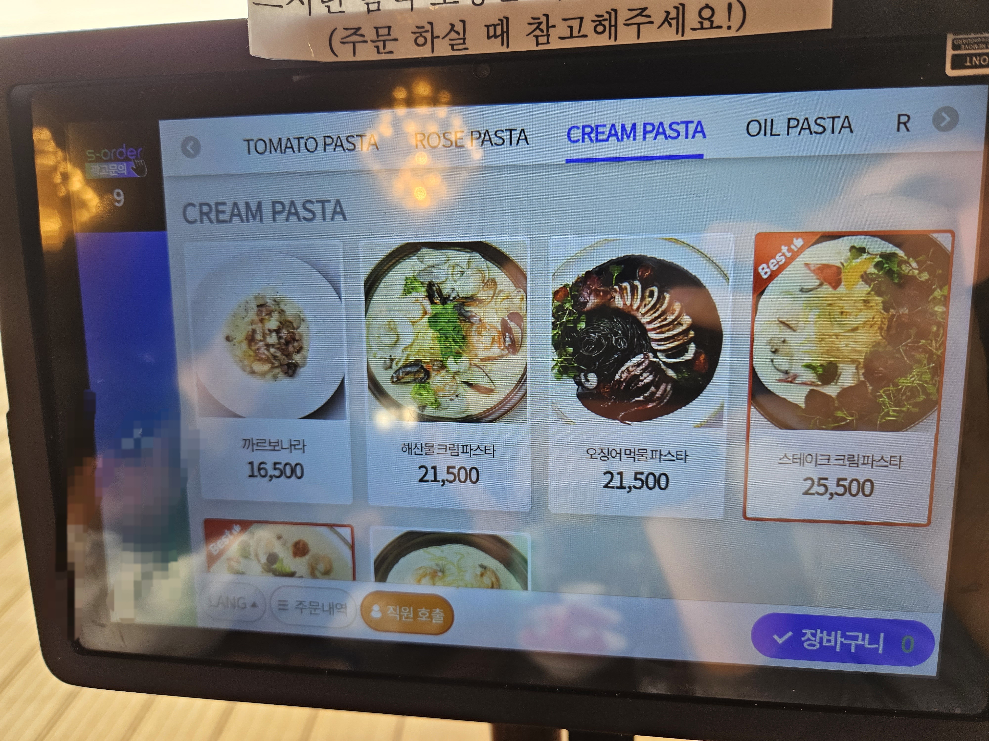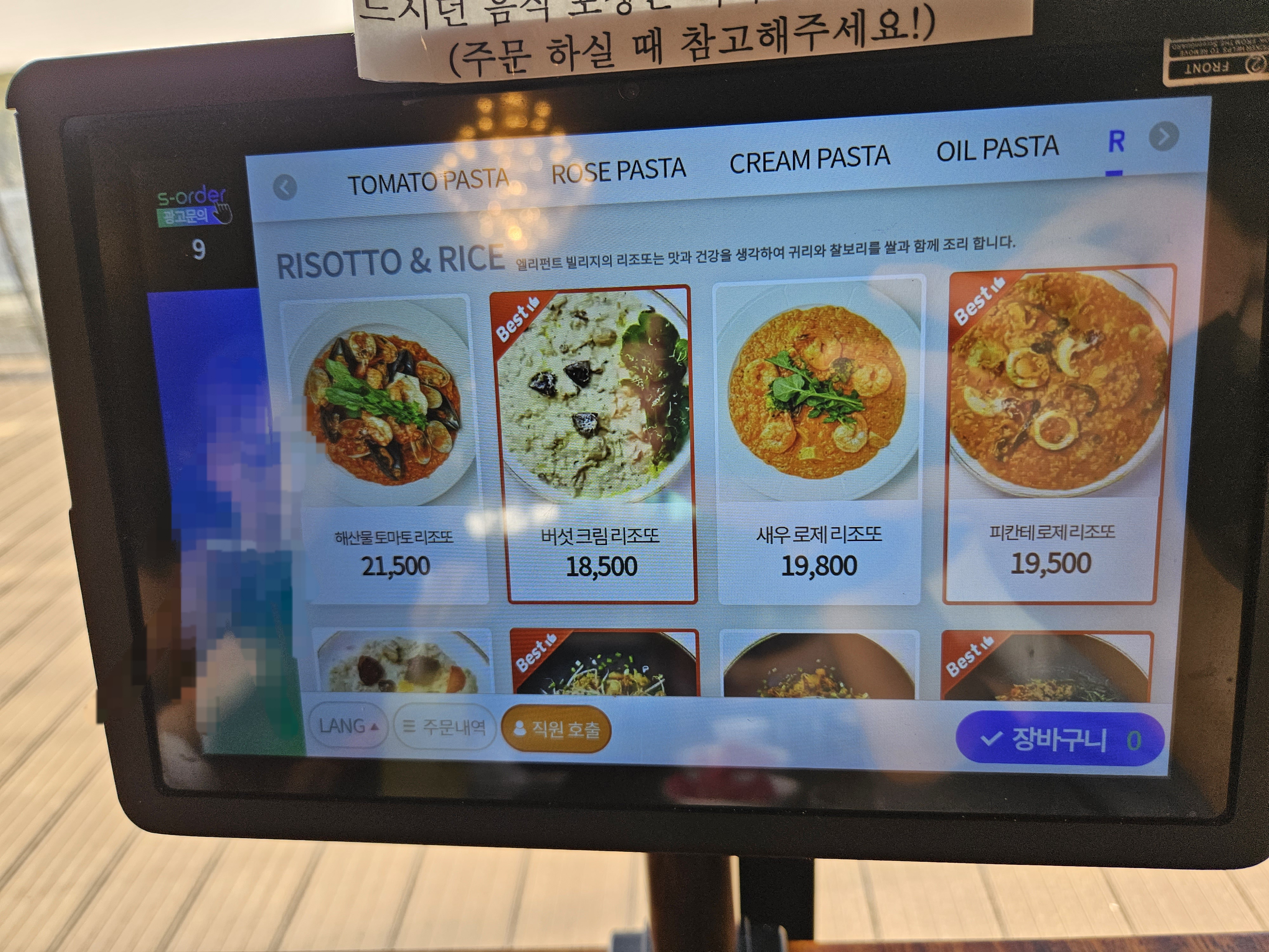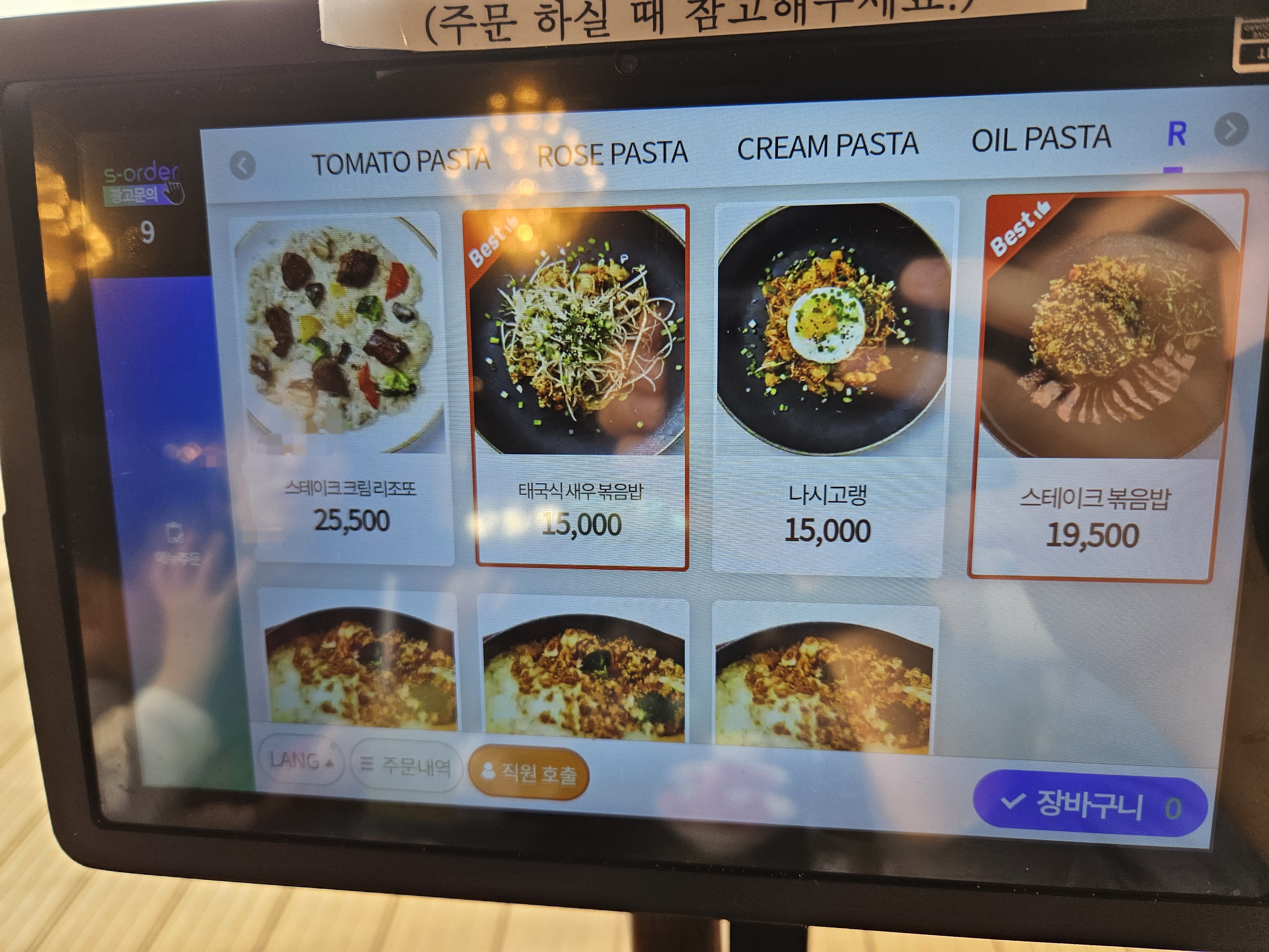 각 테이블에는 주문하는 키오스크가 준비되어 있었는데요. 메뉴판이 있음 어떤 메뉴를 판매하는지 소개해드리기 편했을 텐데 조금 아쉬웠습니다. 그래서 제가 방문했을 당시에 메뉴를 다 사진 찍어보았는데요. 메뉴 이미지 사진은 잘 안 보이니 참고하시고 메뉴 이름이랑 가격만 적어놓겠습니다