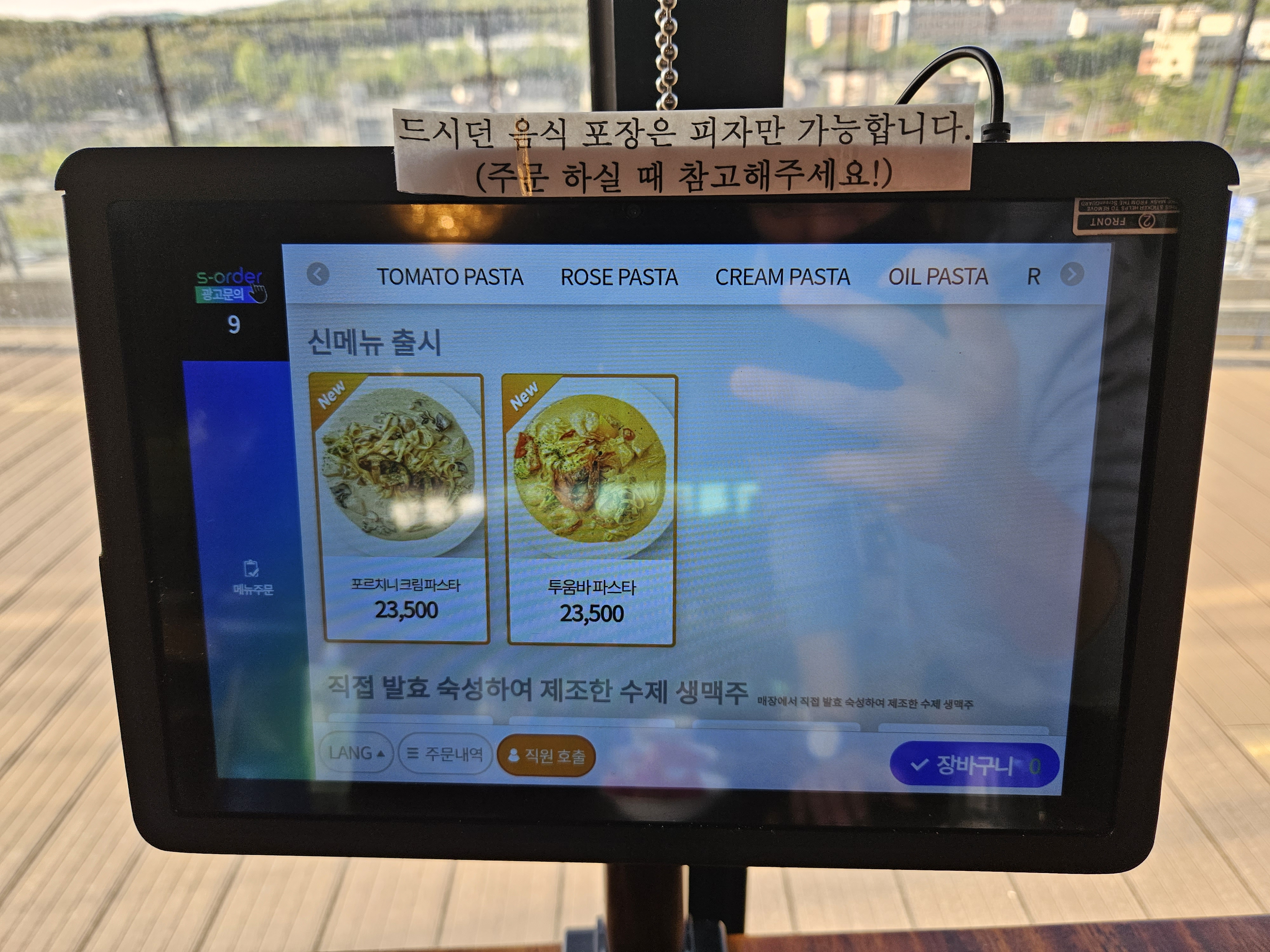 개인적으로 자리는 창가 쪽이 조금 더 좋은 것 같더라고요. 창가 풍경자체는 그렇게 이쁘다는 느낌은 아니었지만 그래도 다른 자리보다는 확 트인 느낌을 주는 게 좋아 보여 창가자리에 앉았습니다.