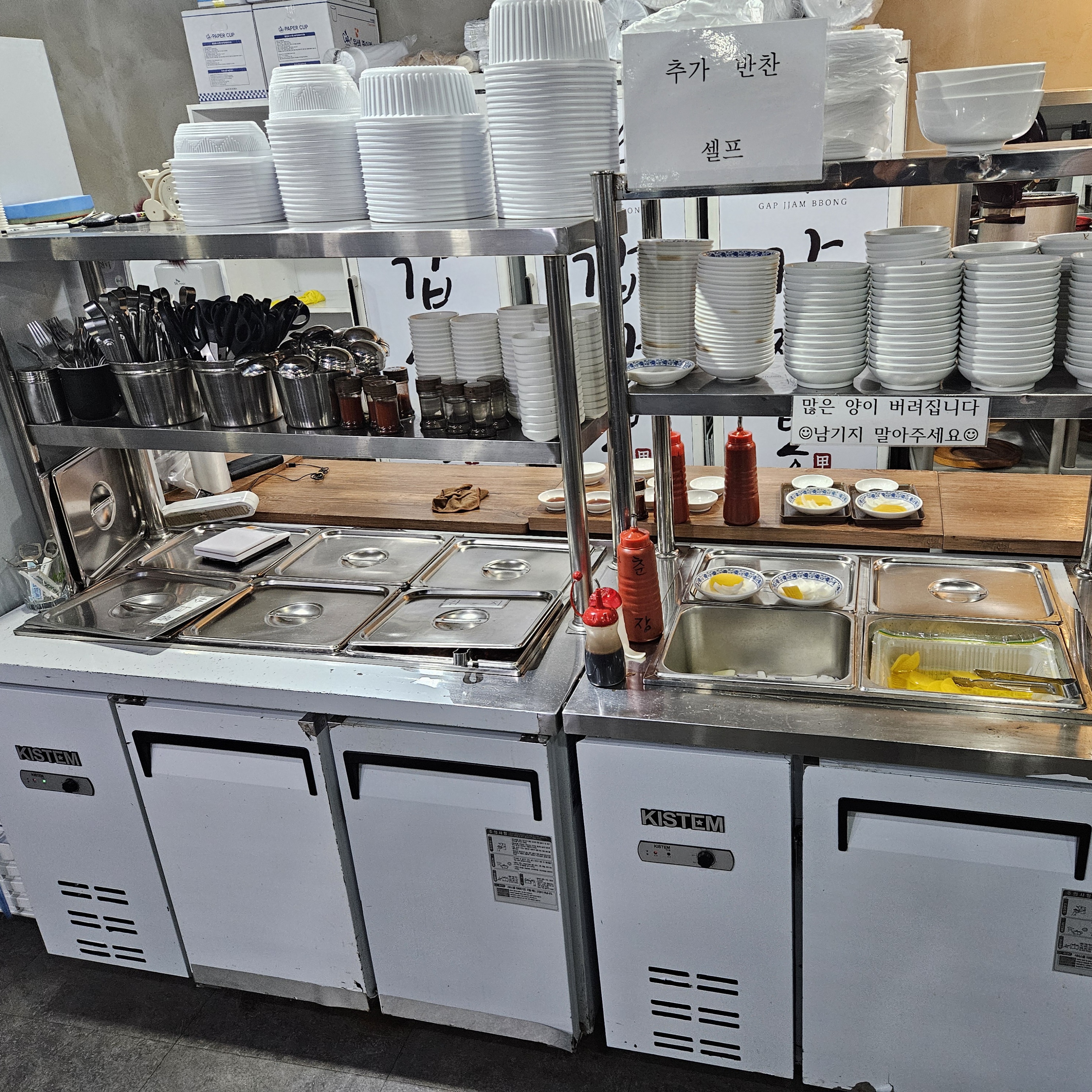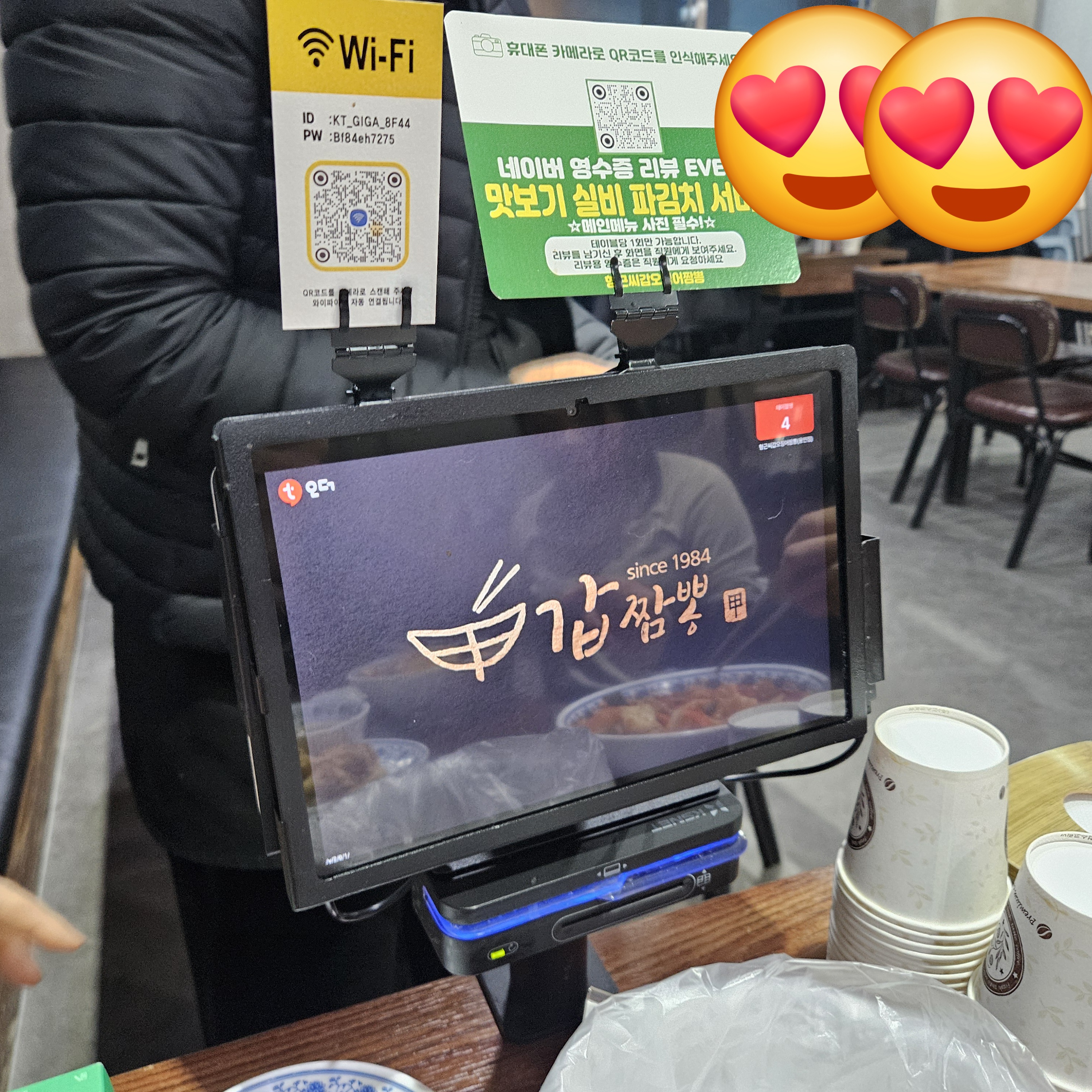 추가 반찬 셀프 시스템 및 테이블 위치 또한 크게 달라진 건 없었습니다. 굳이 달라진 점을 찾자면 테이블에 키오스크가 생겨서 메뉴 선택 및 결제까지 같이 진행이 되었습니다. 그렇게 처음 시켜 먹어보는 갑오징어탕수육과 갑오징어짬뽕을 시켰답니다.
