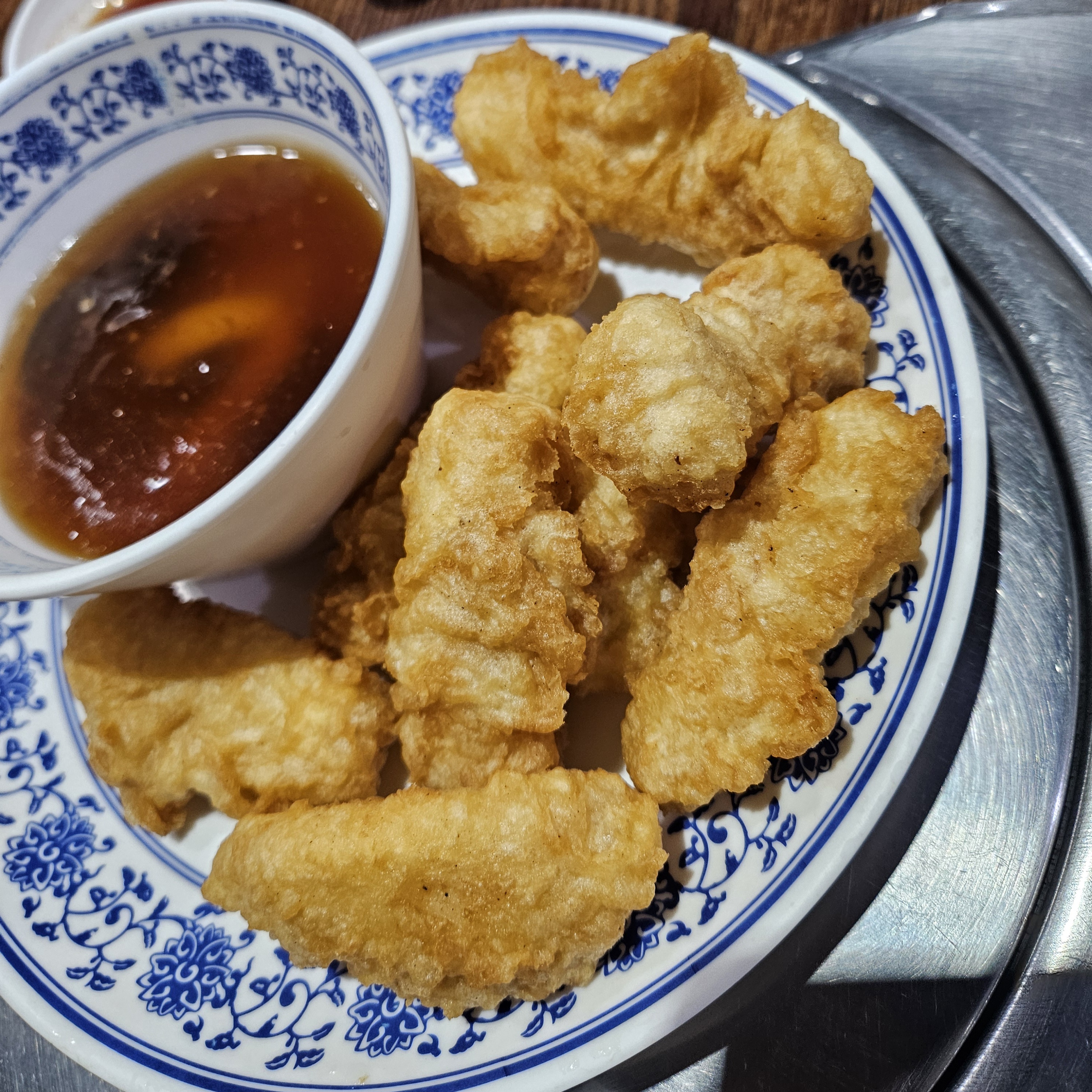 갑오징어탕수육 맛은 튀김은 바삭하지만 갑오징어의 부드러운 식감과 새콤달콤한 탕수육 소스가 생각보다 잘 어울리더라고요. 고기 대신 해산물 맛을 느낄 수 있어 색다르게 느껴졌답니다.