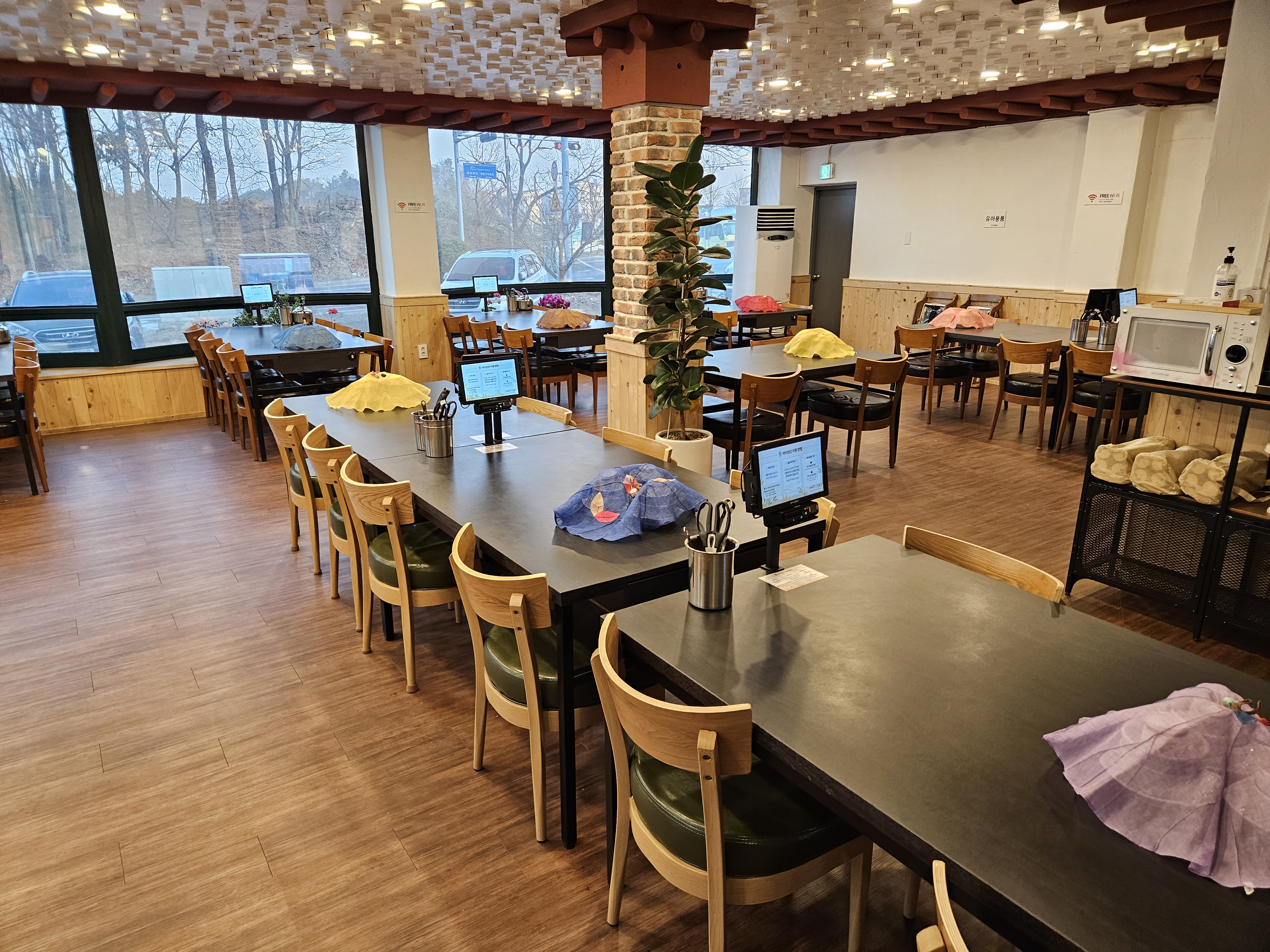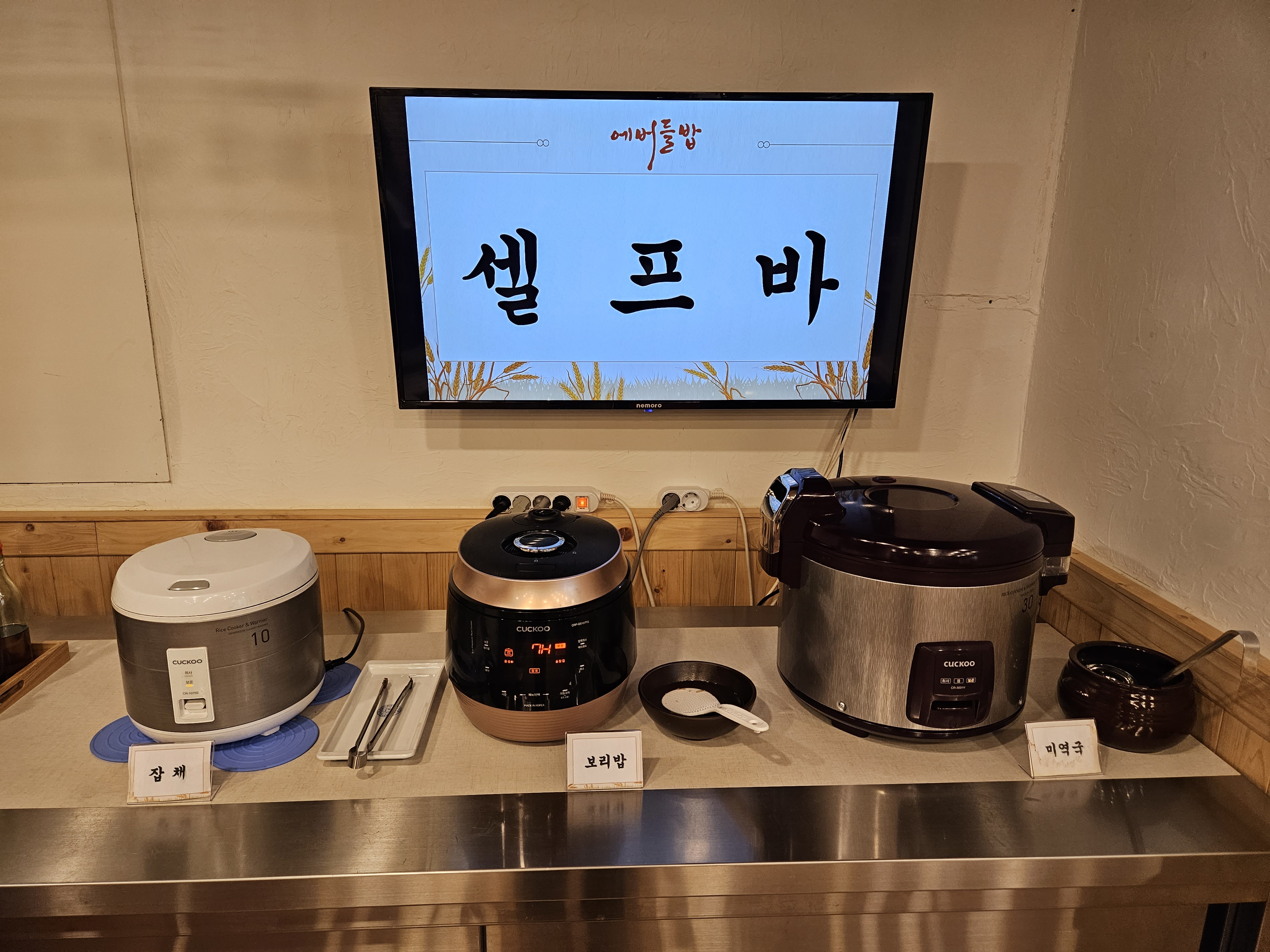 식당에 들어가면 티비가 먼저 환영한다고 반겨주었는데요. 그리고 셀프바 위치가 어디 있는지 까지 알려주더라고요.