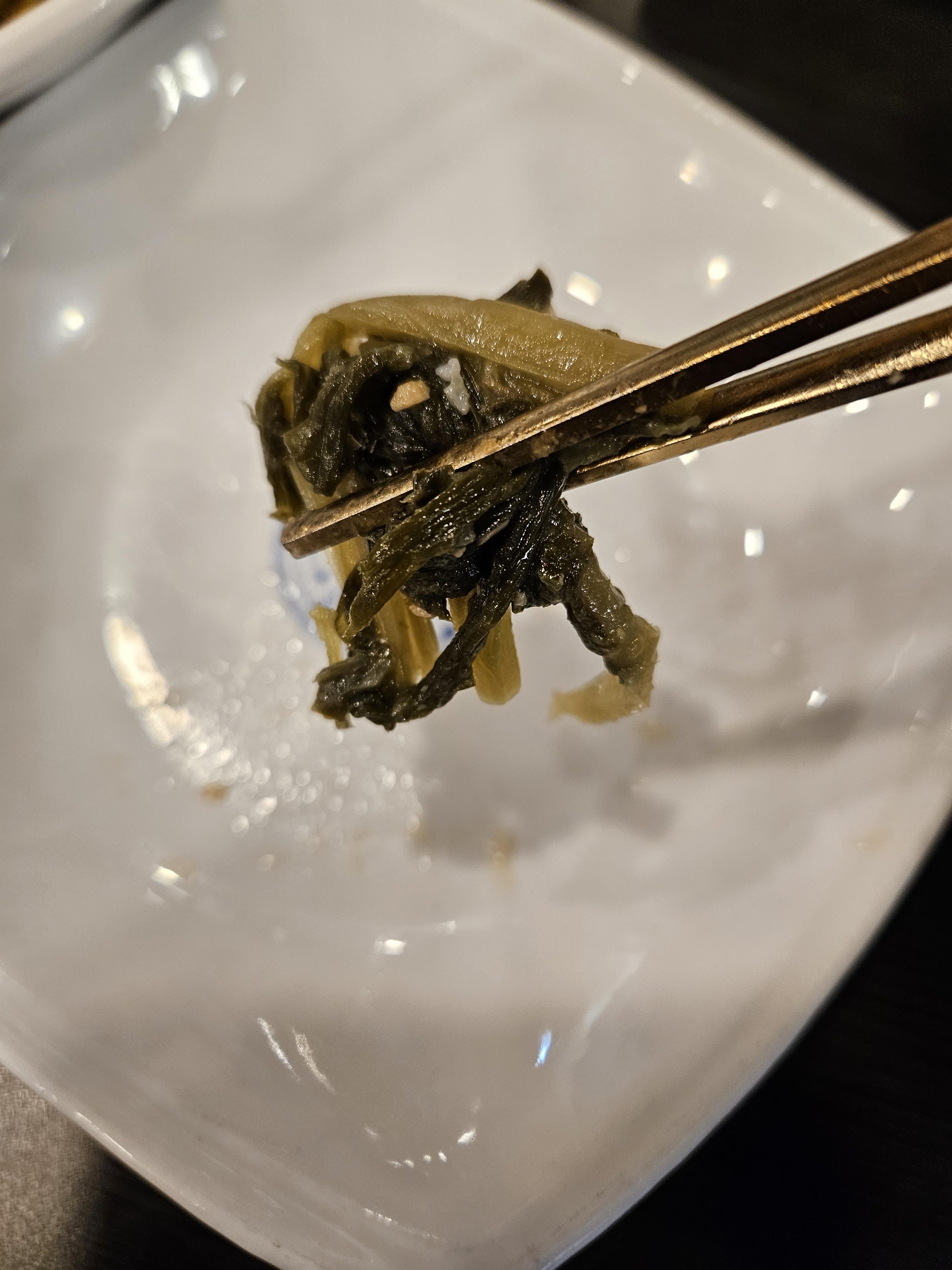 그리고 나물 반찬이 많으니깐 밥 비벼먹고 싶다면 별도로 셀프바 가서 비벼먹을 수도 있게 되어있더라고요. 한 식당답게 잡채도 있고 보리밥, 미역국도 별도로 있었습니다.