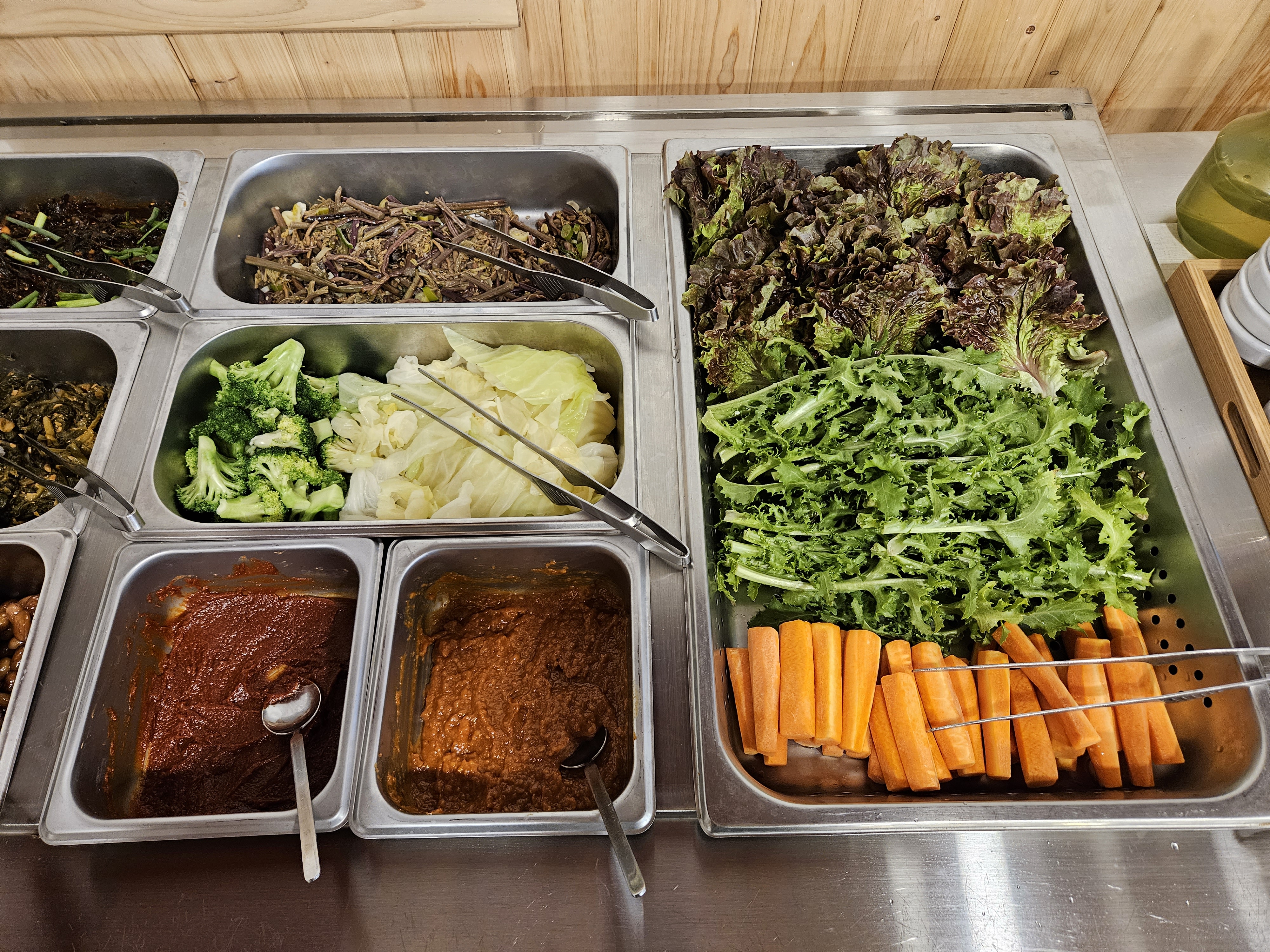 반찬이 모자라면 셀프바에 가서 먹고 싶은 만큼 퍼올 수도 있는데요 처음에 나온 밑반찬 외에도 정말 다양한 반찬이 있었습니다.