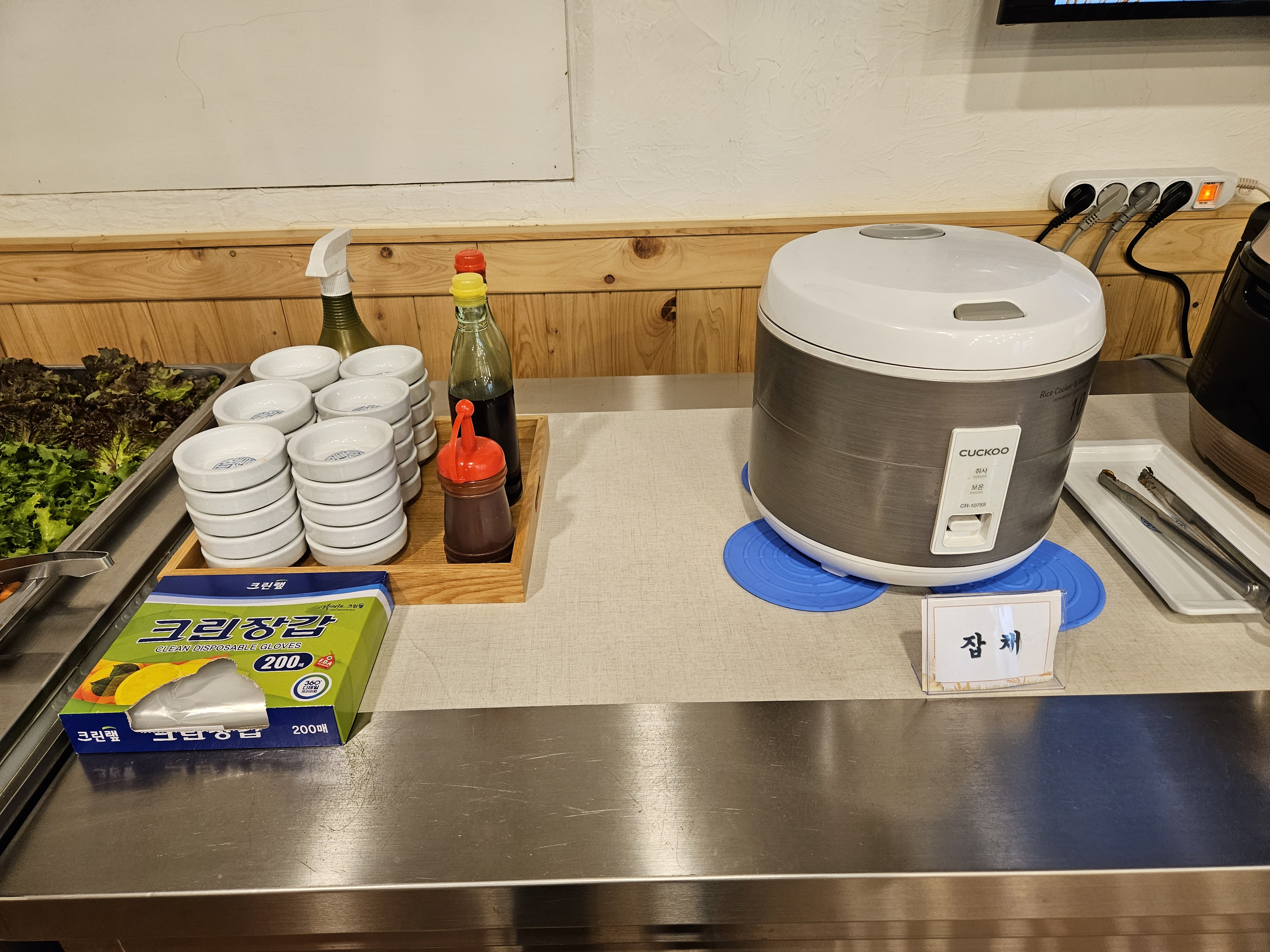 추가로 담아갈 수 있는 반찬 등등 그릇도 준비되어 있으니 참고하시면 좋을 것 같네요. 셀프바에서 못 먹어본 반찬도 먹어 보고 싶었지만 처음에 주신 반찬이랑 메인요리만 먹어도 배가 불러서 먹어보진 못했지만 다른 음식들이 맛있으니 맛있지 않을까 싶은데요.