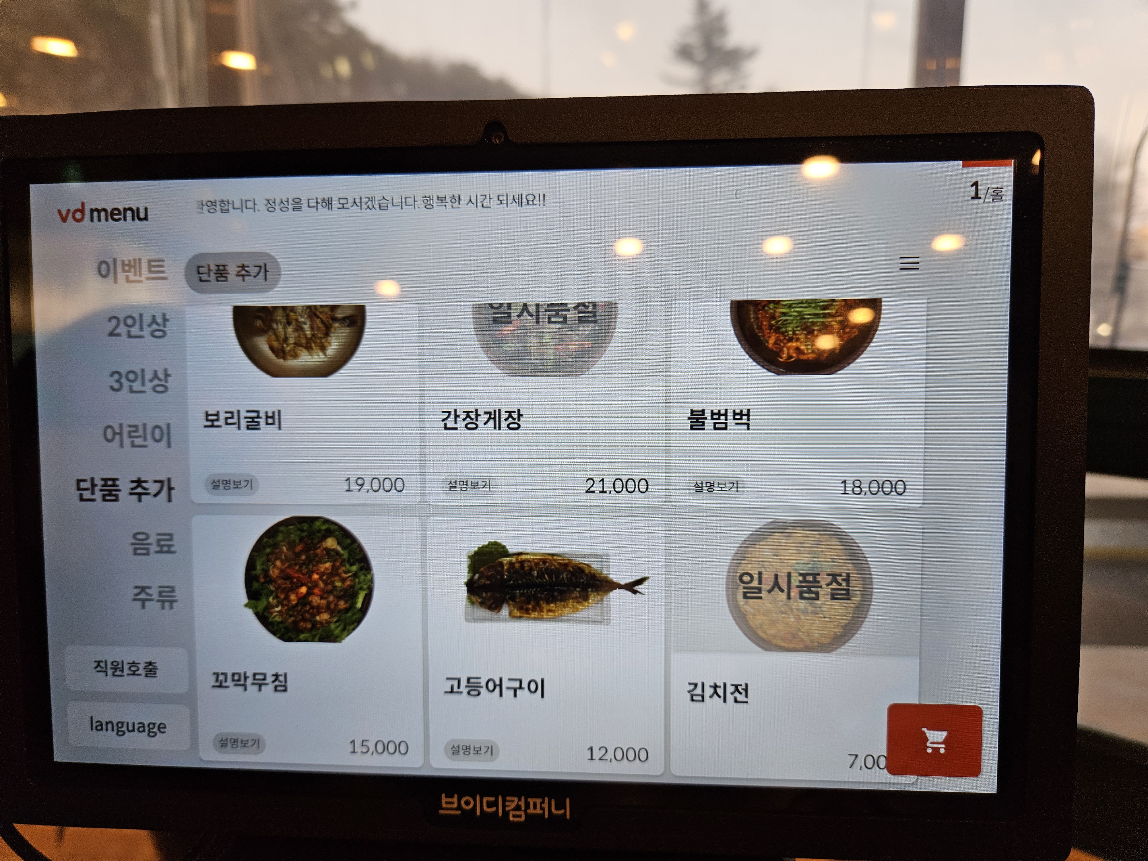 테이블에 있는 키오스크로 주문을 해야 하는 방식이어서 메뉴판은 따로 없는 것 같더라고요. 기본적인 한식메뉴는 보리굴비, 간장게장, 불범벅, 꼬막무침, 고등어구이가 있고 어린이 메뉴로는 돈까스, 생선까스가 있습니다. 제가 사진을 음료, 주류 빼고 일일이 찍긴 했지만 잘 안 보인다면 검색을 이용해 확인하는 걸 추천드립니다.