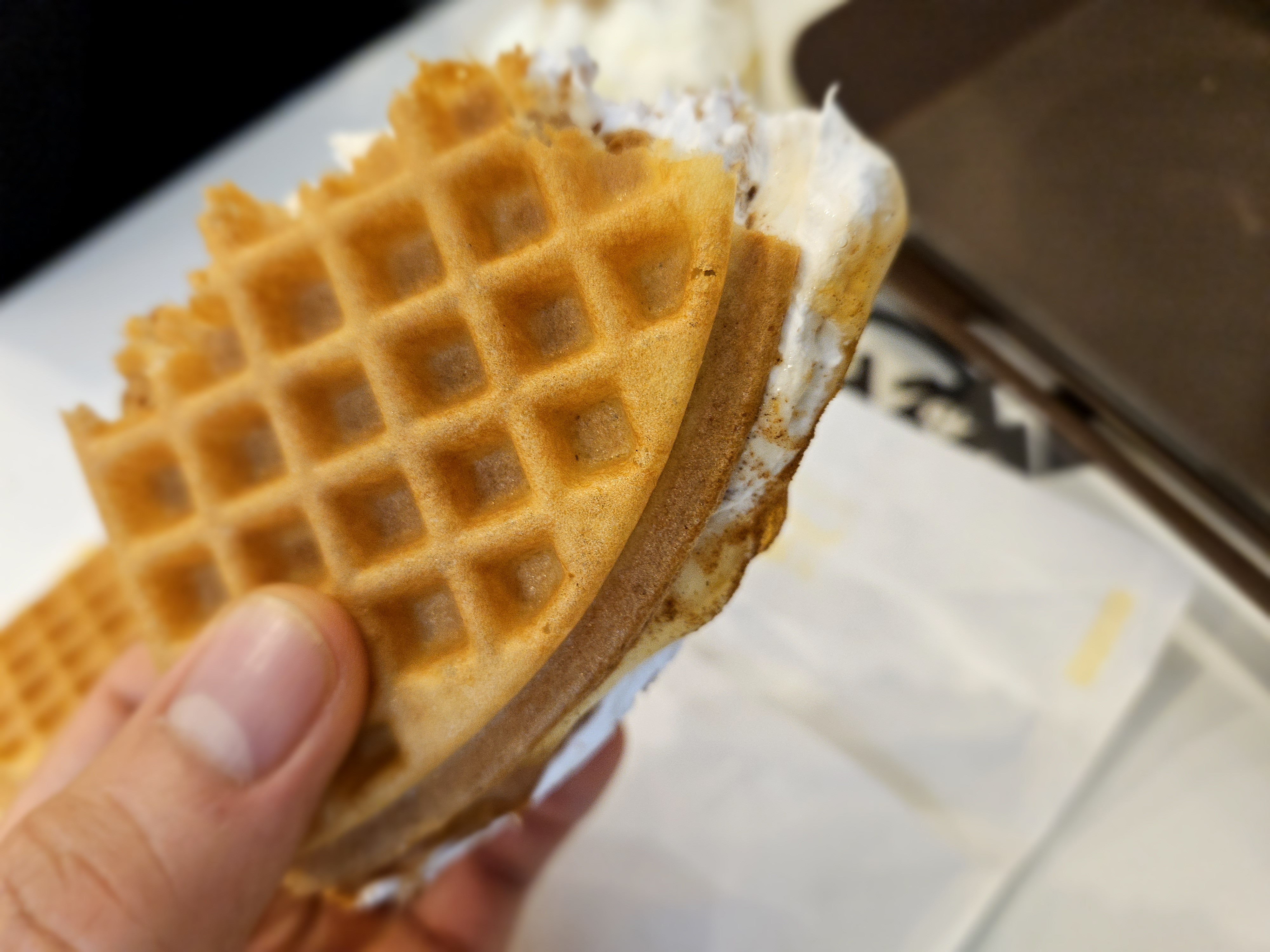 ▲저희가족이 간식 혹은 후식으로 정말 자주 이용하는 와플대학. 반죽을 잘하시는 건지 바삭바삭하고 너무 저희 가족 입맛에 딱 잘 맞더라고요. 특히 와서 먹으니깐 더 바삭바삭하고 맛있었습니다.