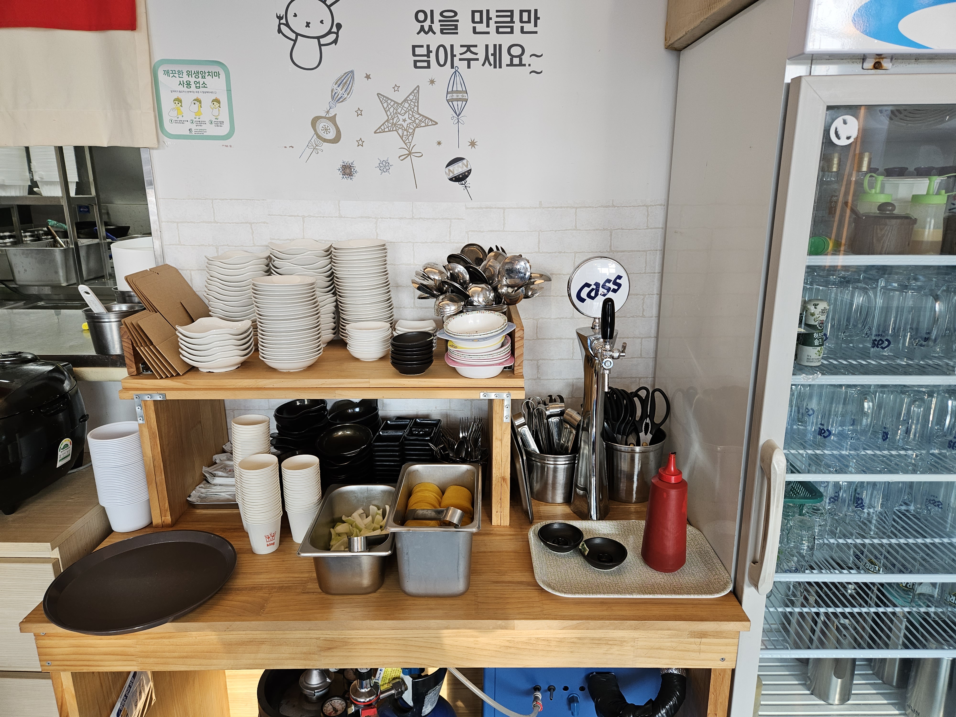 셀프바에서 모자란 반찬을 퍼올 수 있고 밥은 셀프가 아닌 천 원에 구매해야 하니 참고하시길 바랍니다.