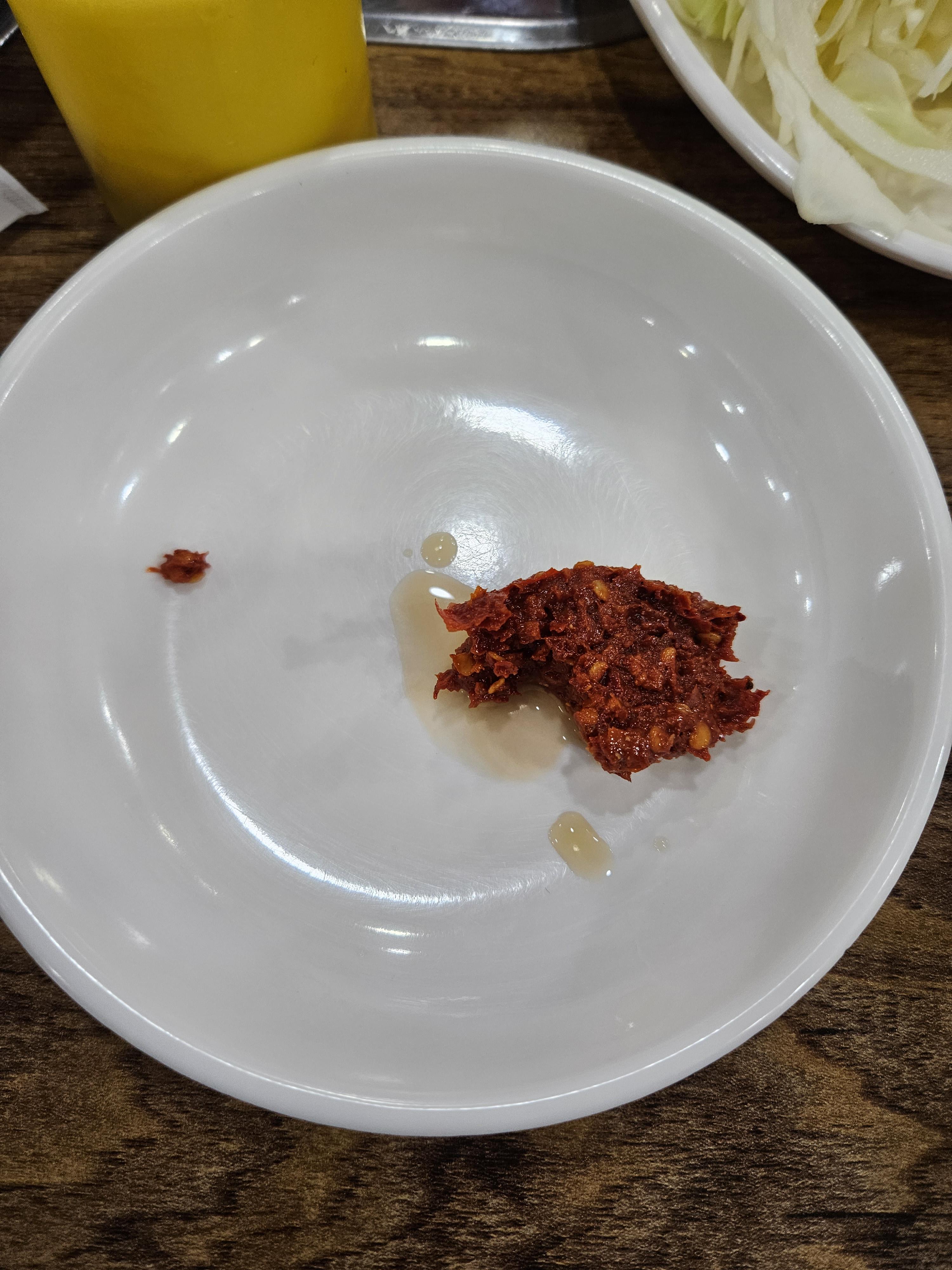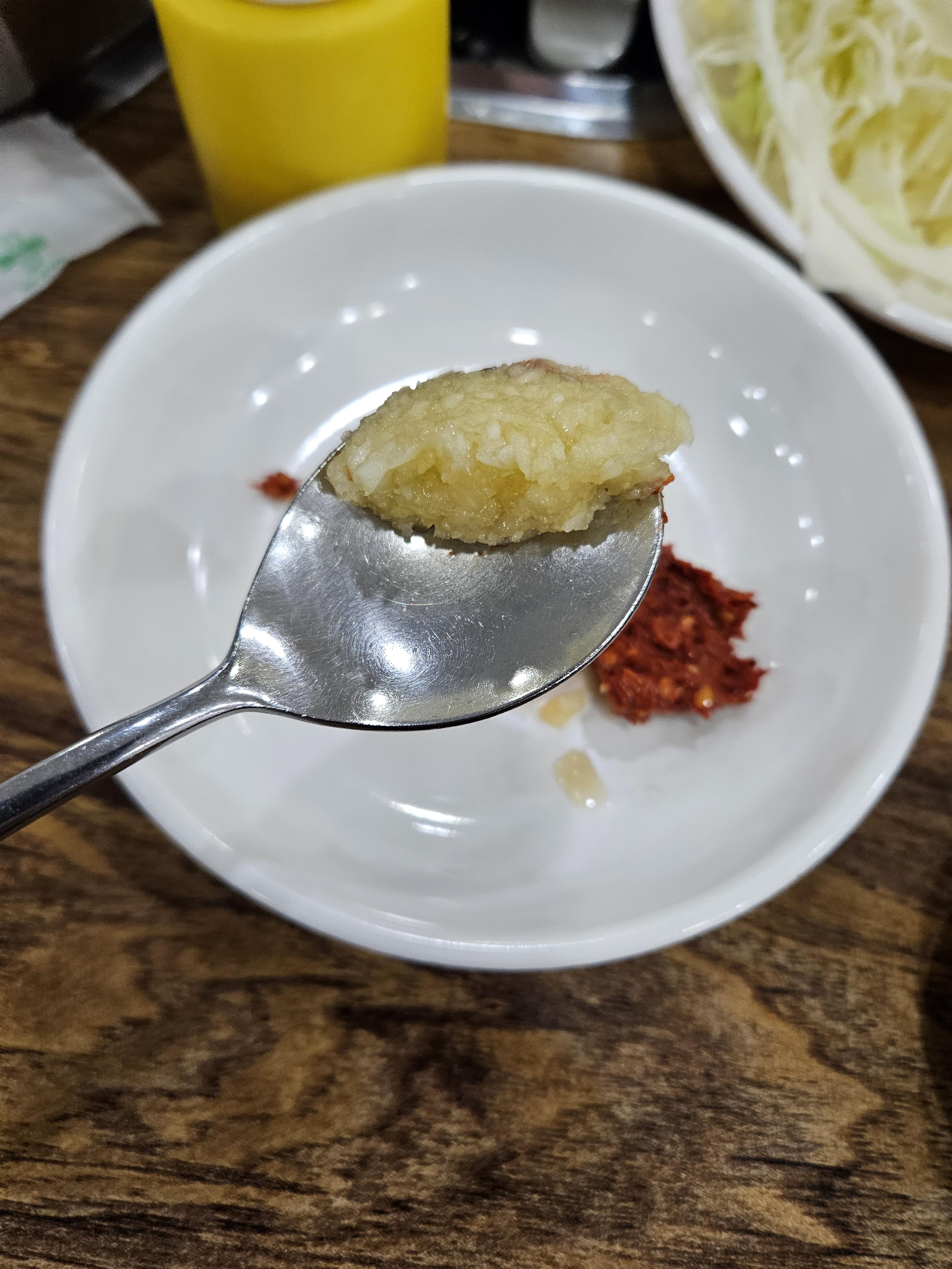 위에 있는 순서가 정석 방법인데 처음에 어떻게 해야 하는지 모르고 다데기 반스푼, 마늘 반스푼 그리고 양배추 넣고 간장소스를 부어서 먹었습니다. 저는 매운 걸 좋아해서 다데기를 많이 넣어 먹었는데 각자 입맛에 맞게 소스를 만들면 될 것 같습니다. 그리고 생각보다 간장소스가 안 짜더라고요. 그래서 저는 좀 더 소스를 부어서 먹었답니다.