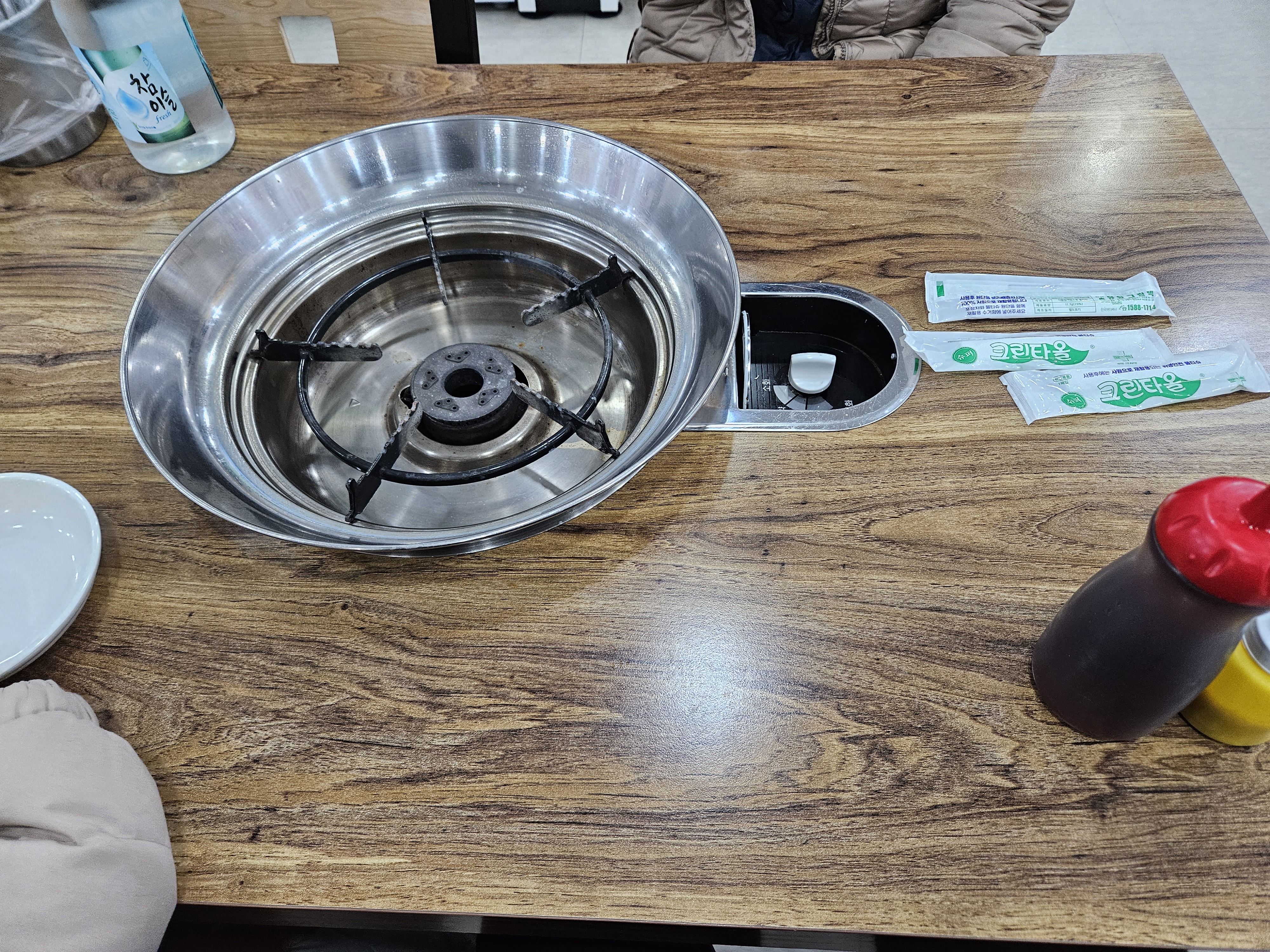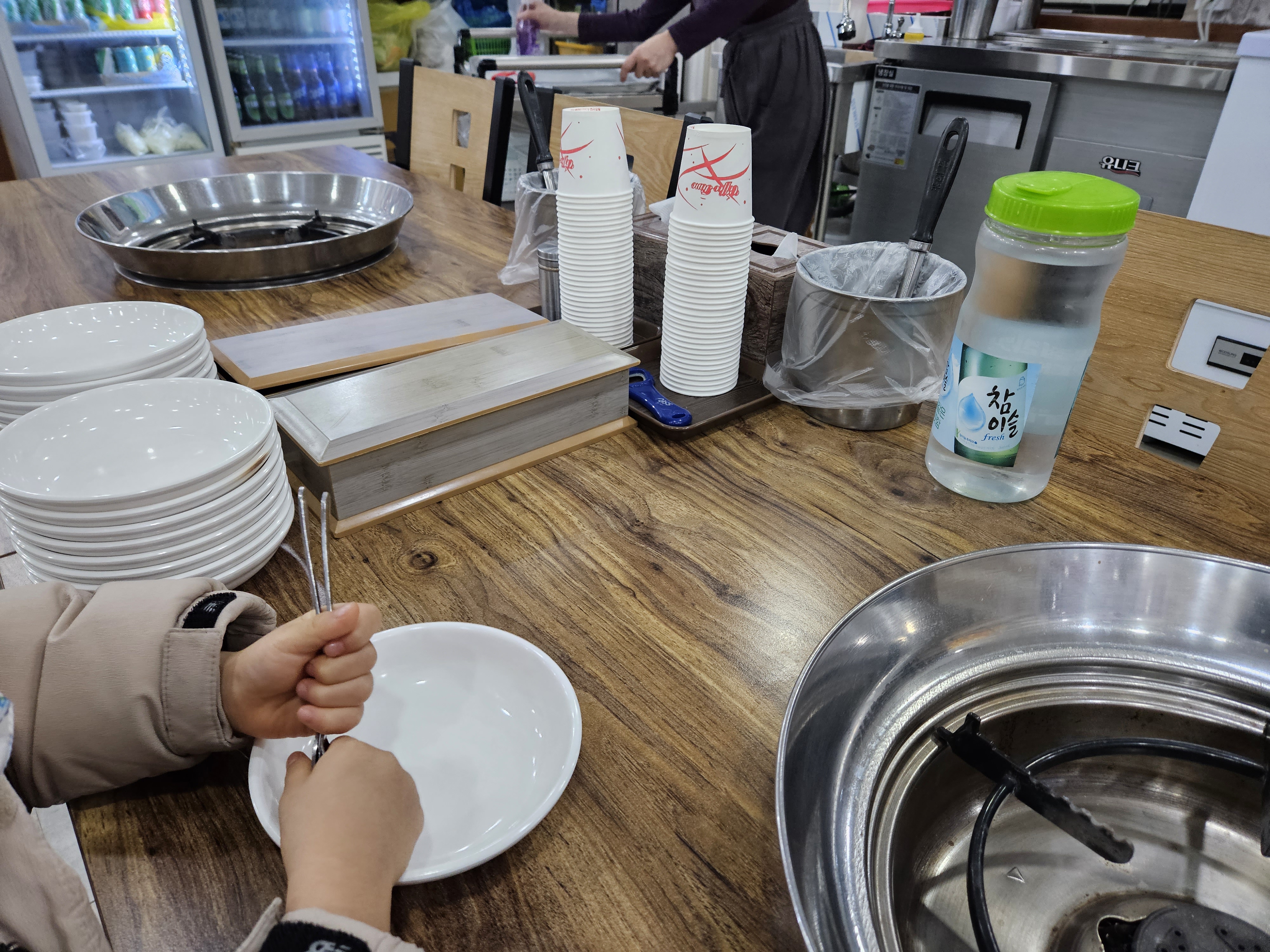앞접시, 종이컵 그리고 수저세트는 각테이블마다 배치되어 있는데 아직 어린 아들이 접시 가지고 장난치고 수저통 가지고 장난을 쳐서 진이 쫌 빠졌습니다.