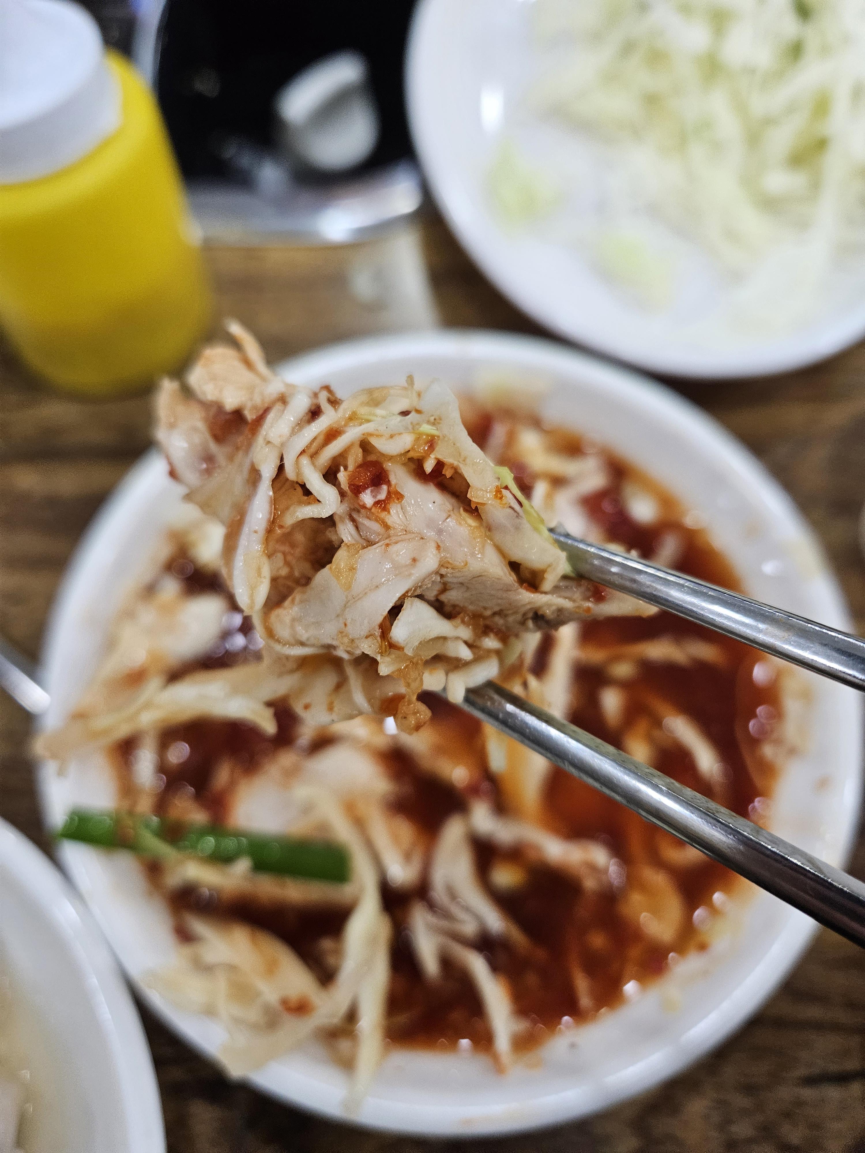 아들 먹을 걸 미리 세팅해 놓고 저도 한번 먹어보았는데요. 닭고기에 육수가 제대로 배여서 맛있었고 닭 한 마리가 나오기 전 만든 소스랑 같이 먹으면 배추의 아삭함과 닭고기의 쫄깃함이 조화를 이뤄 정말 맛있었습니다.