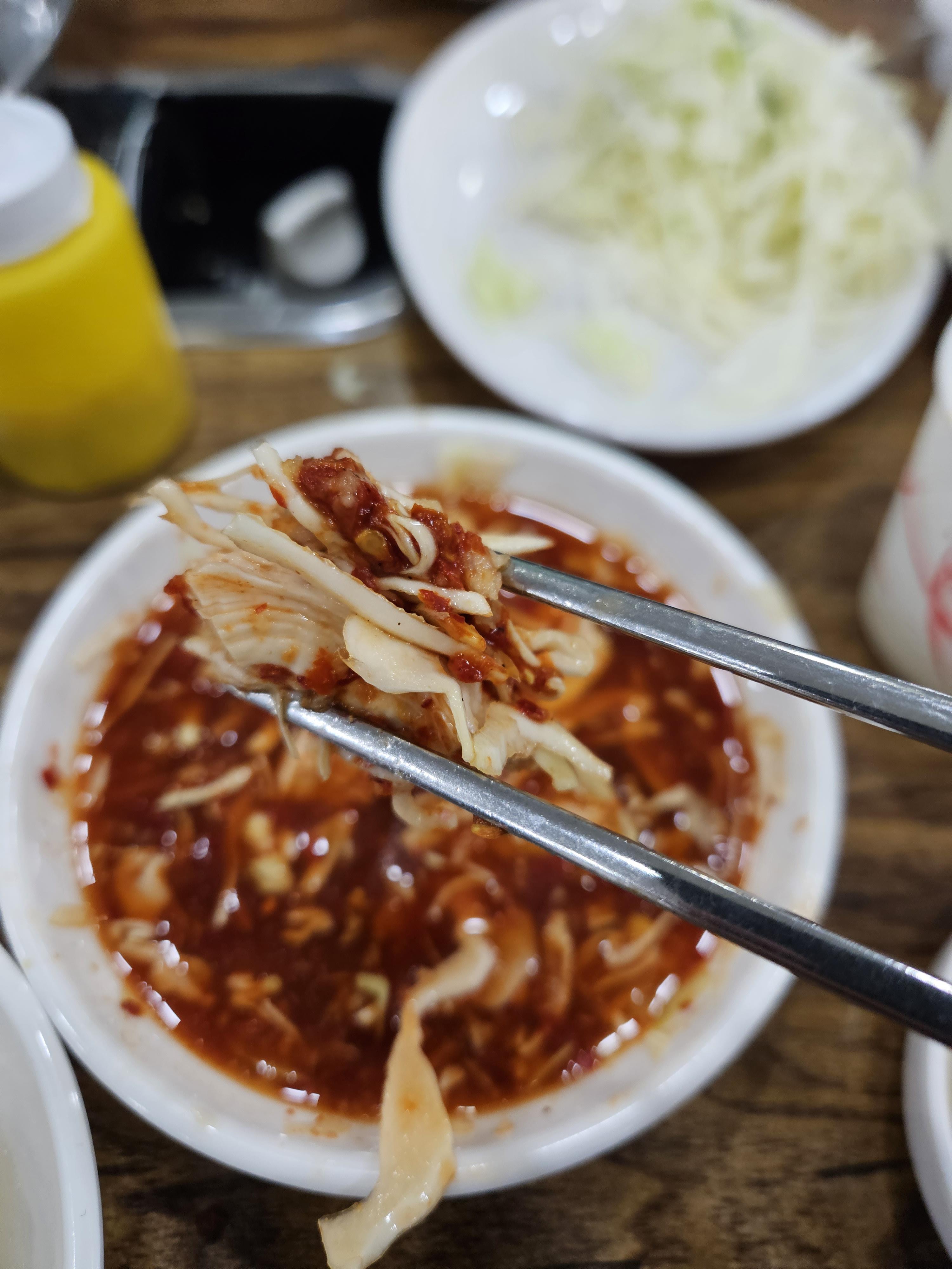 - 마지막으로 양배추를 버무려 고기와 함께 먹는다.