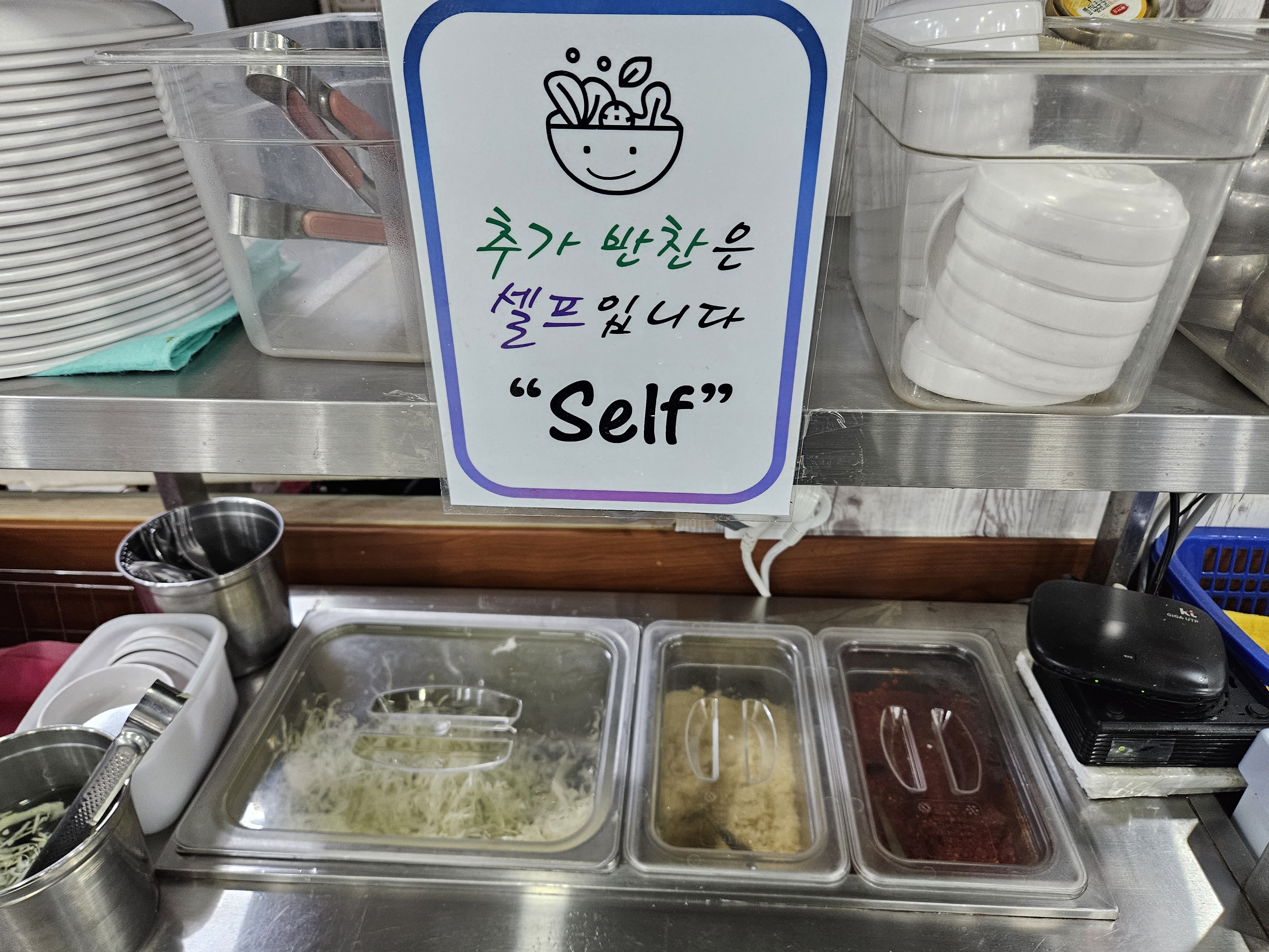 그리고 동치미국물 및 소스재료가 부족하면 셀프바에서 추가로 담아올 수 있었습니다.
