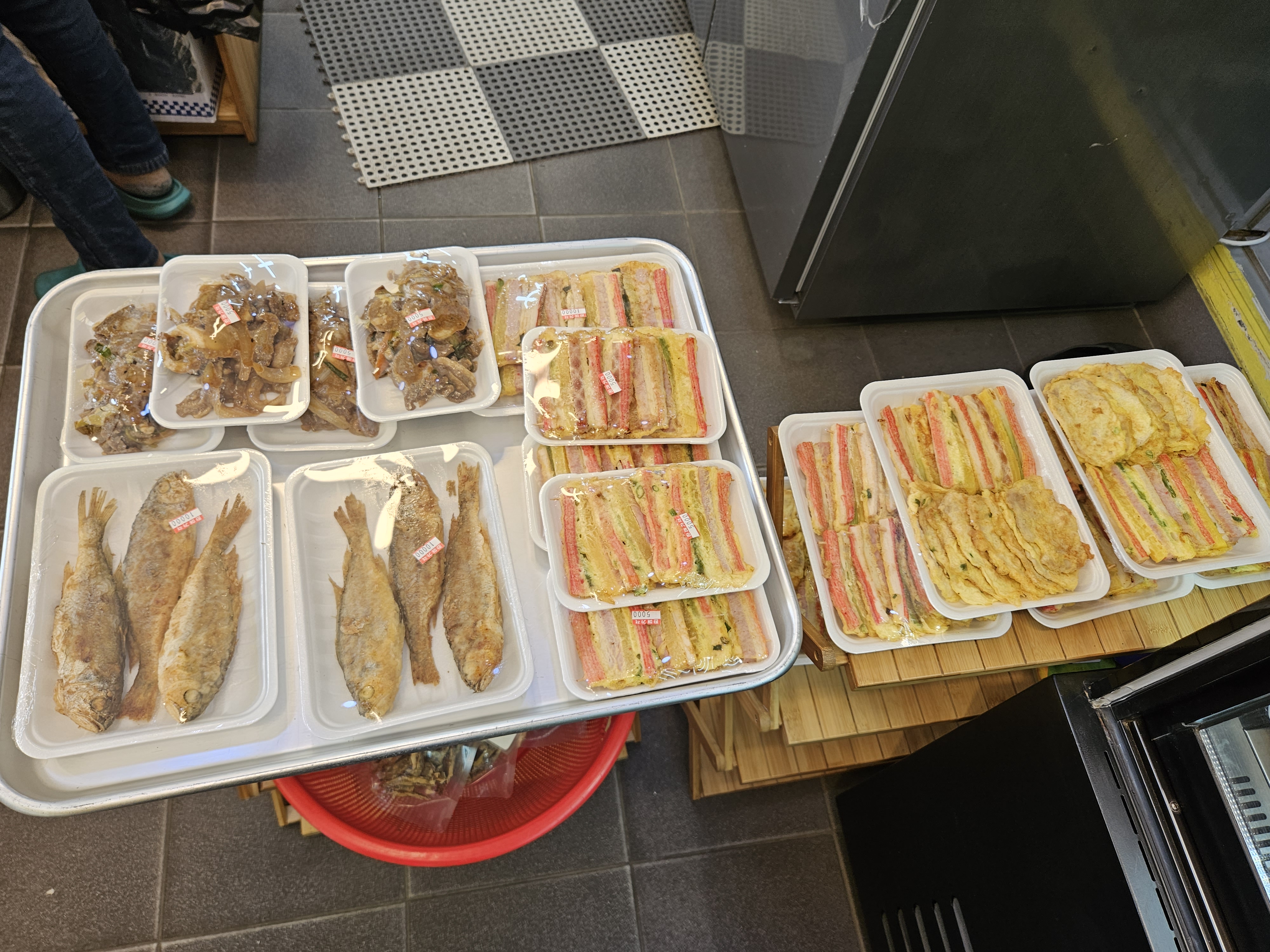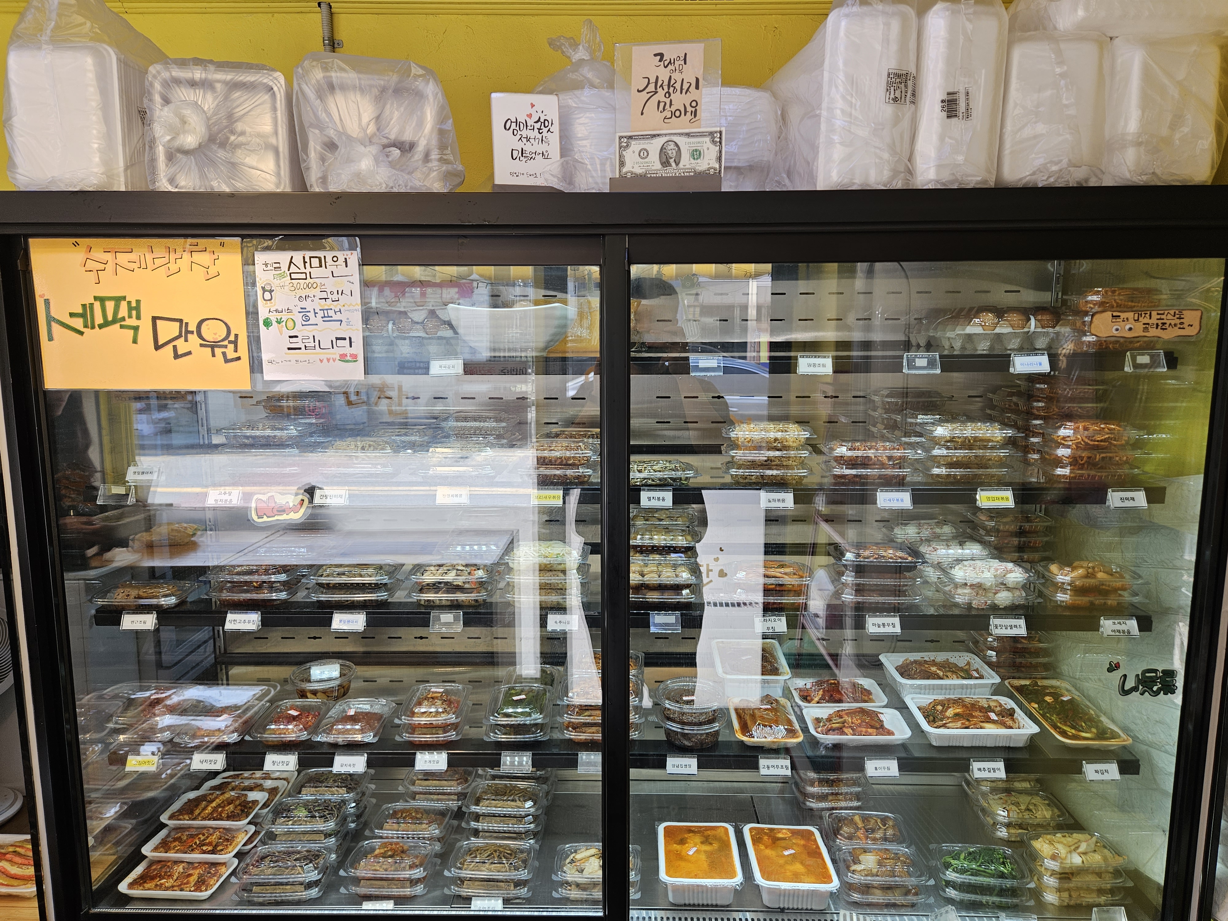엄마밥반찬가게 내부는 제가 와이프랑 방문한 반찬가게 중 제일 작았는데요. 그래도 쇼케이스 냉장고에는 다양한 반찬들이 많이 들어있었고 가격표 없는 기본 반찬 세팩에 만원에 판매를 하더라고요. 그리고 3만 원 이상 구매하면 기본 반찬하나를 서비스로 준다고 해 저희도 3만 원 이상 구매 후 기본 반찬하나를 추가로 받았답니다. 단 카드가 아닌 현금 혹은 계좌 이체를 했을 경우에만 해당되니 참고해 주세요.