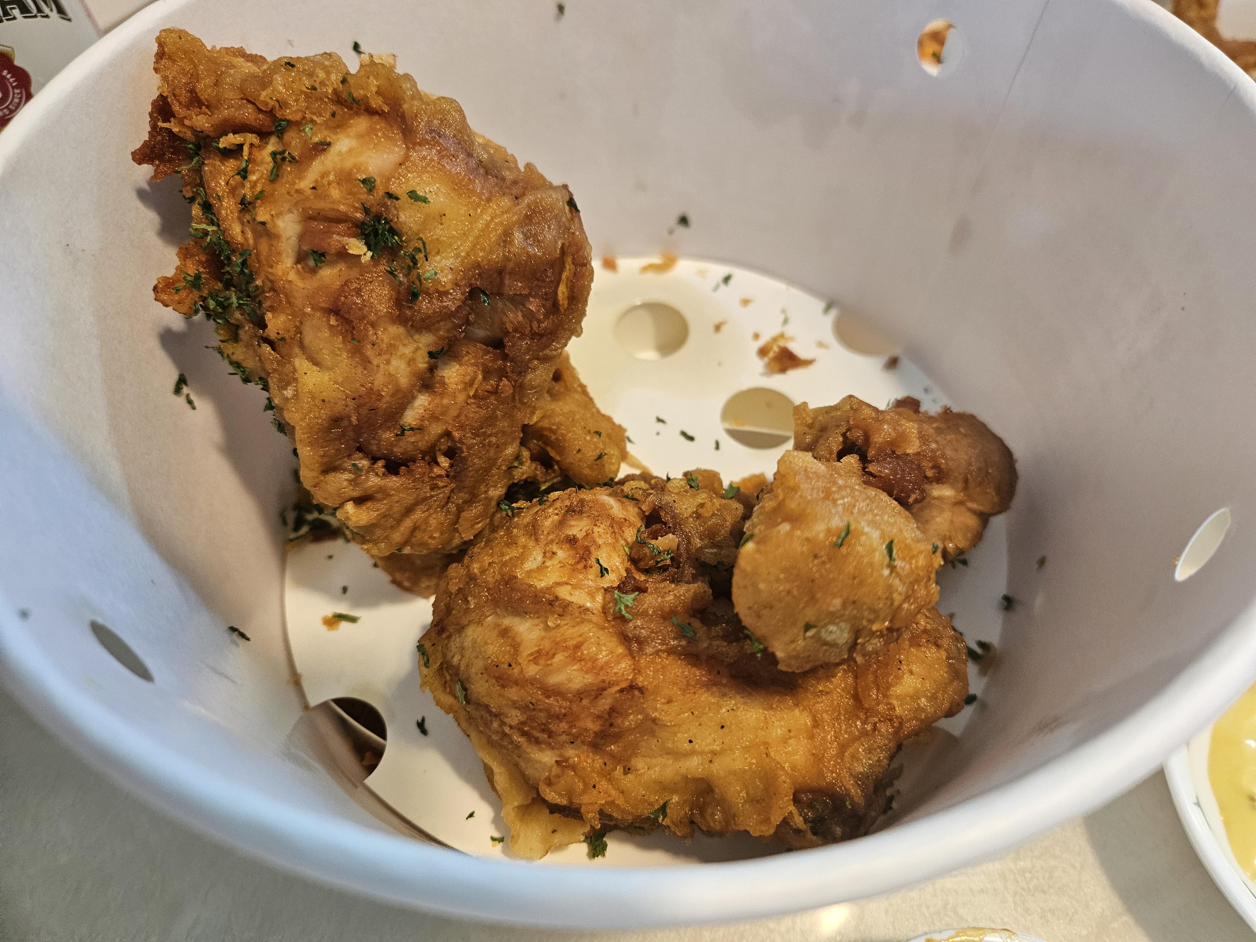 날개 2조각, 닭다리 2조각 목살도 들어있고 퍽퍽 살도 들어있는데 약 만원밖에 안 하고 조각도 하나하나 큼직하더라고요. 거기에 치킨 안에는 허니머스터드소스까지 들어있었습니다.