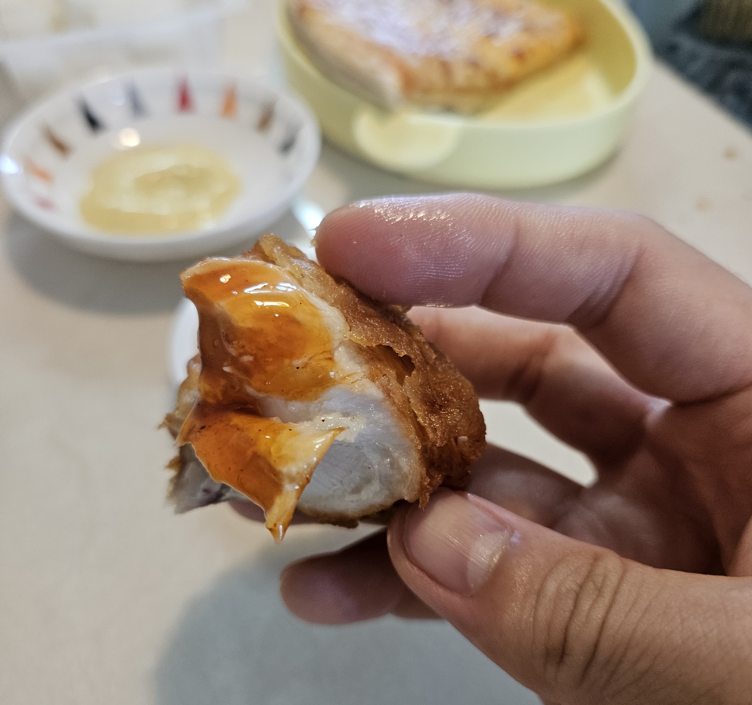 머스터드소스도 찍어먹어 보았는데 개인적으로 그냥 먹는 게 더 맛있었고 굳이 찍어먹는다면 개인적으로 추가로 구매한 치킨양념소스가 달달하니 맛있더라고요.