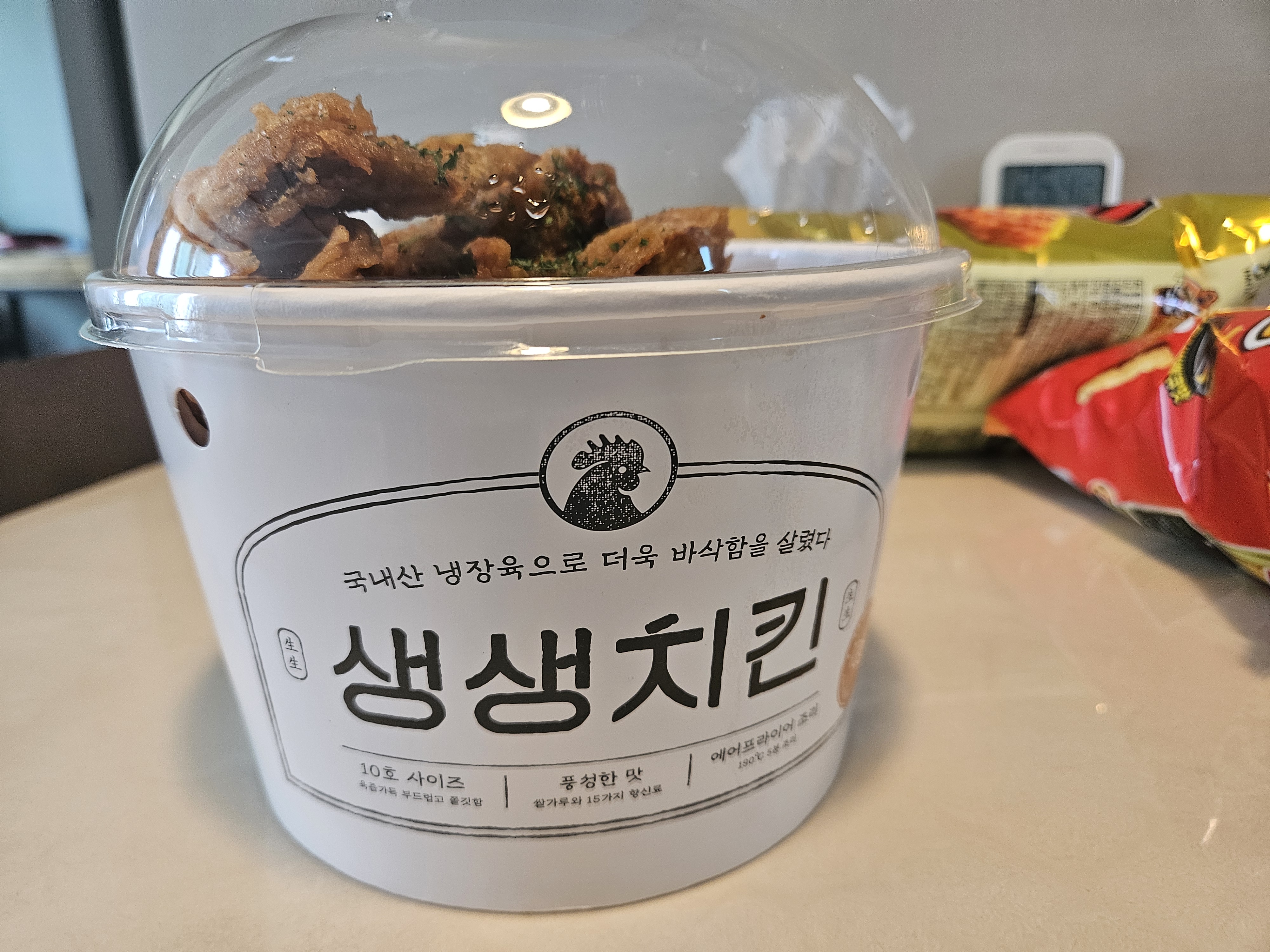 아들이 점심으로 피자, 치킨을 먹고 싶다고 해 구매하게 된 생생치킨. 결제하자마자 아들이 먹고 싶다면서 날개 한 조각을 꺼내 차 안에서 먹으면서 왔는데요.